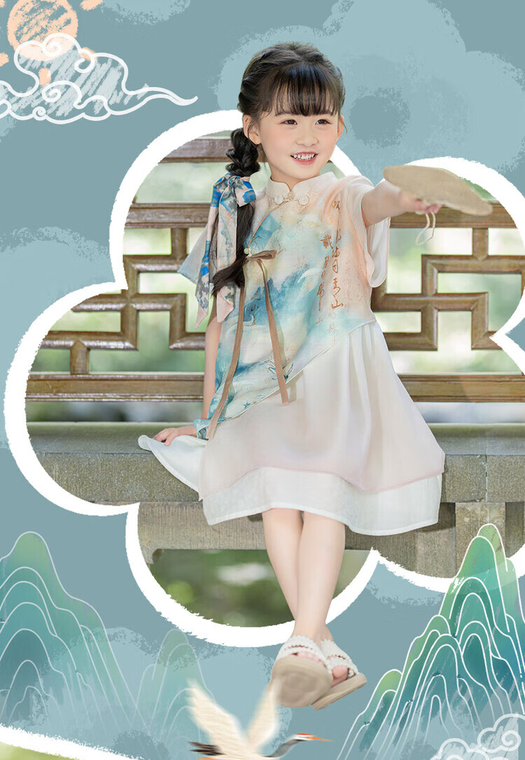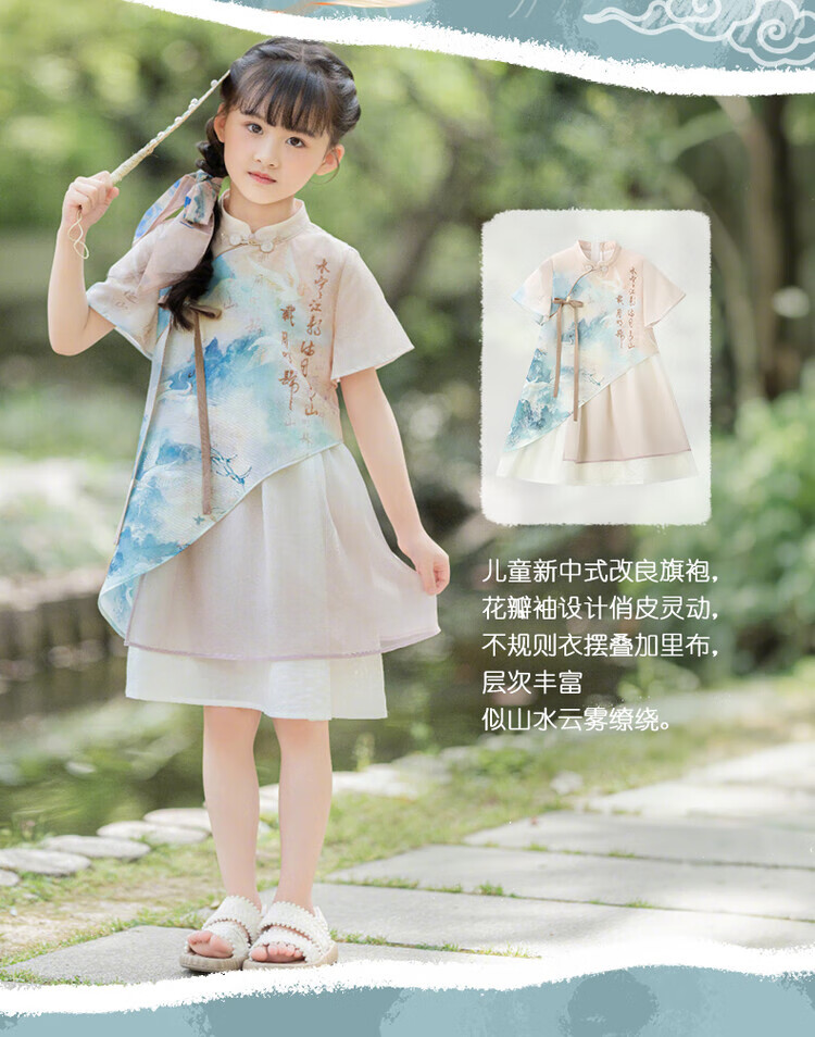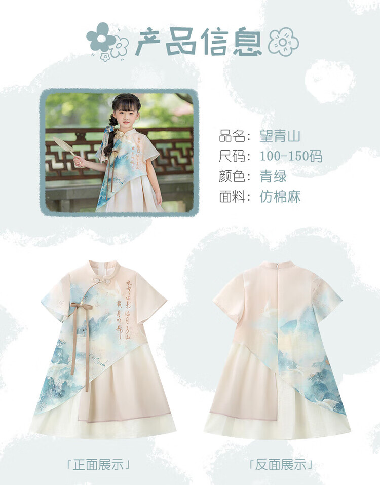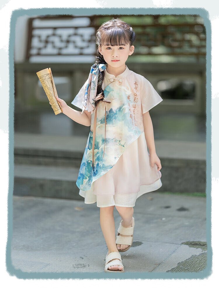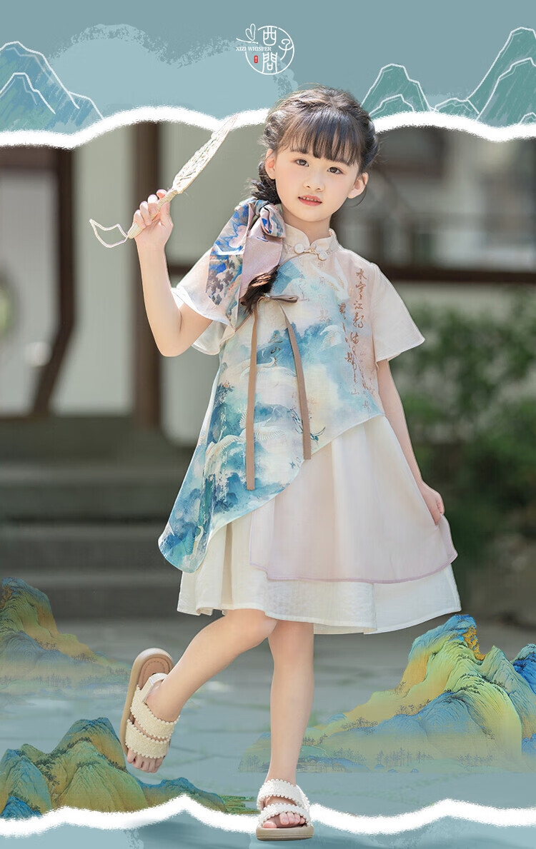西子问【望青山】夏季清凉儿童中国风童装女童汉服新中式女童连衣裙旗袍 望青山 100