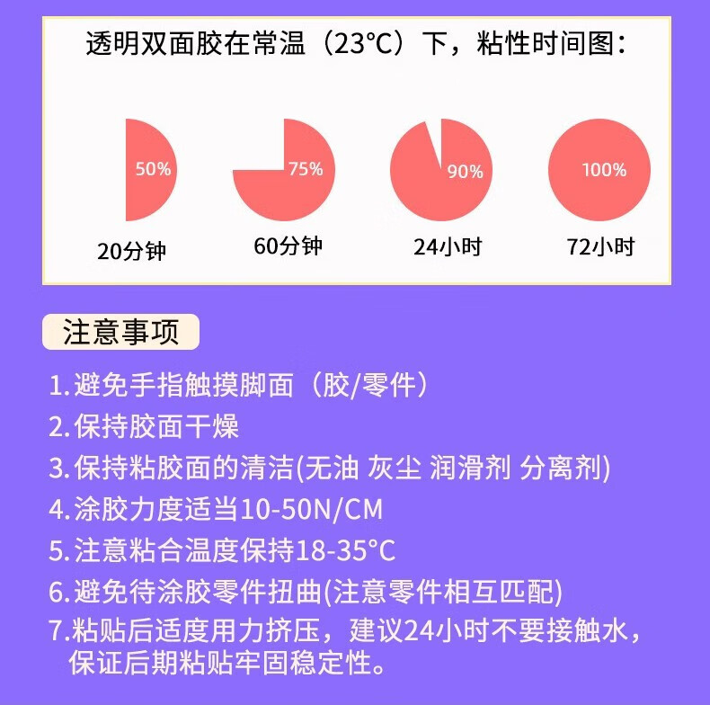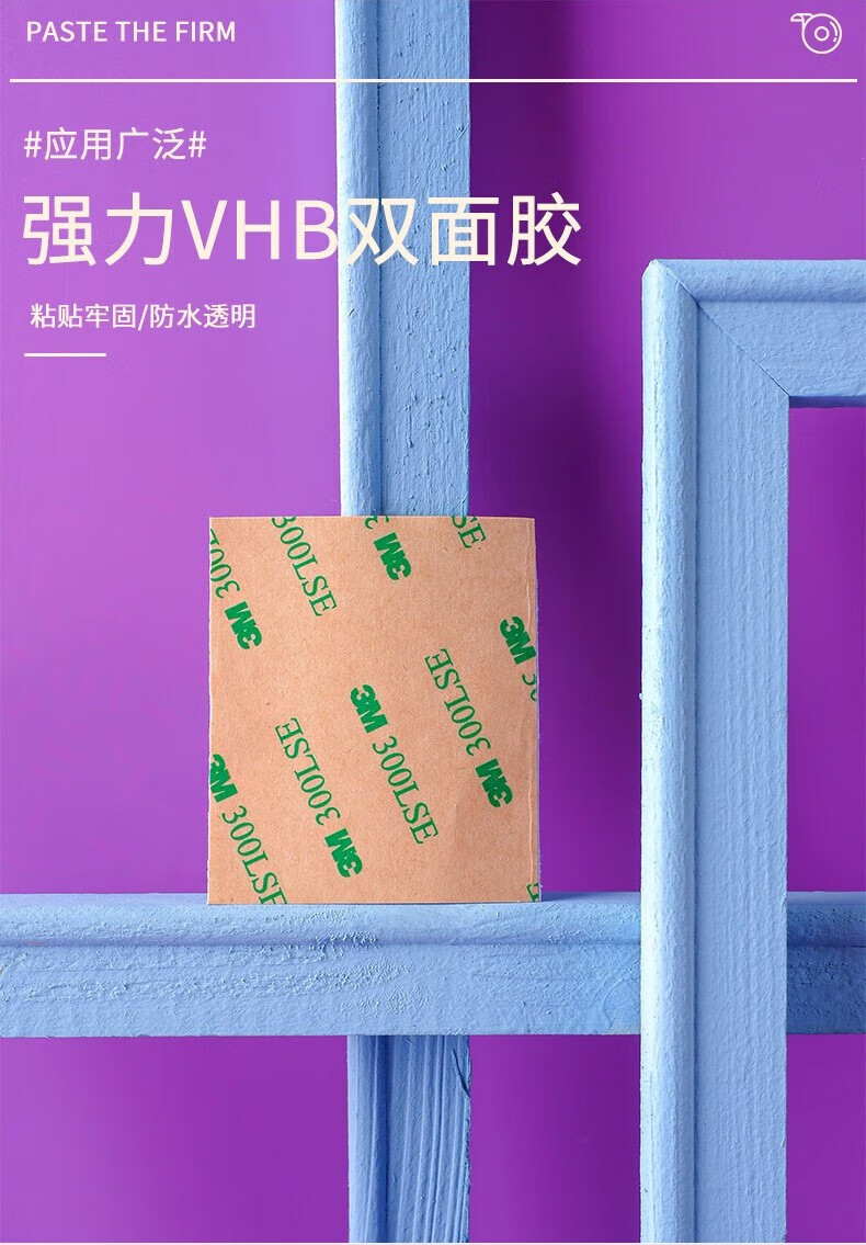 3M9495LE透明双面胶 强力超薄PET耐高温胶带汽车家居撕下无痕胶贴片 方形80mm*80mm【10片装】