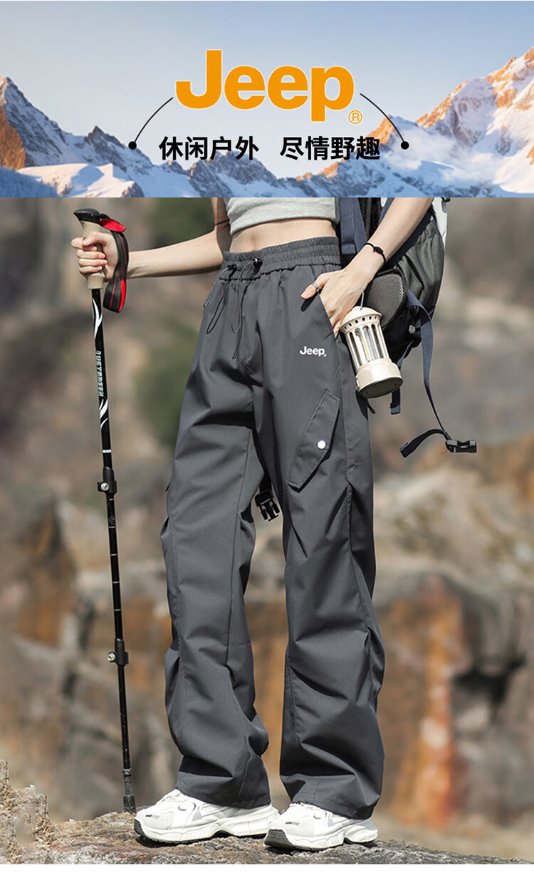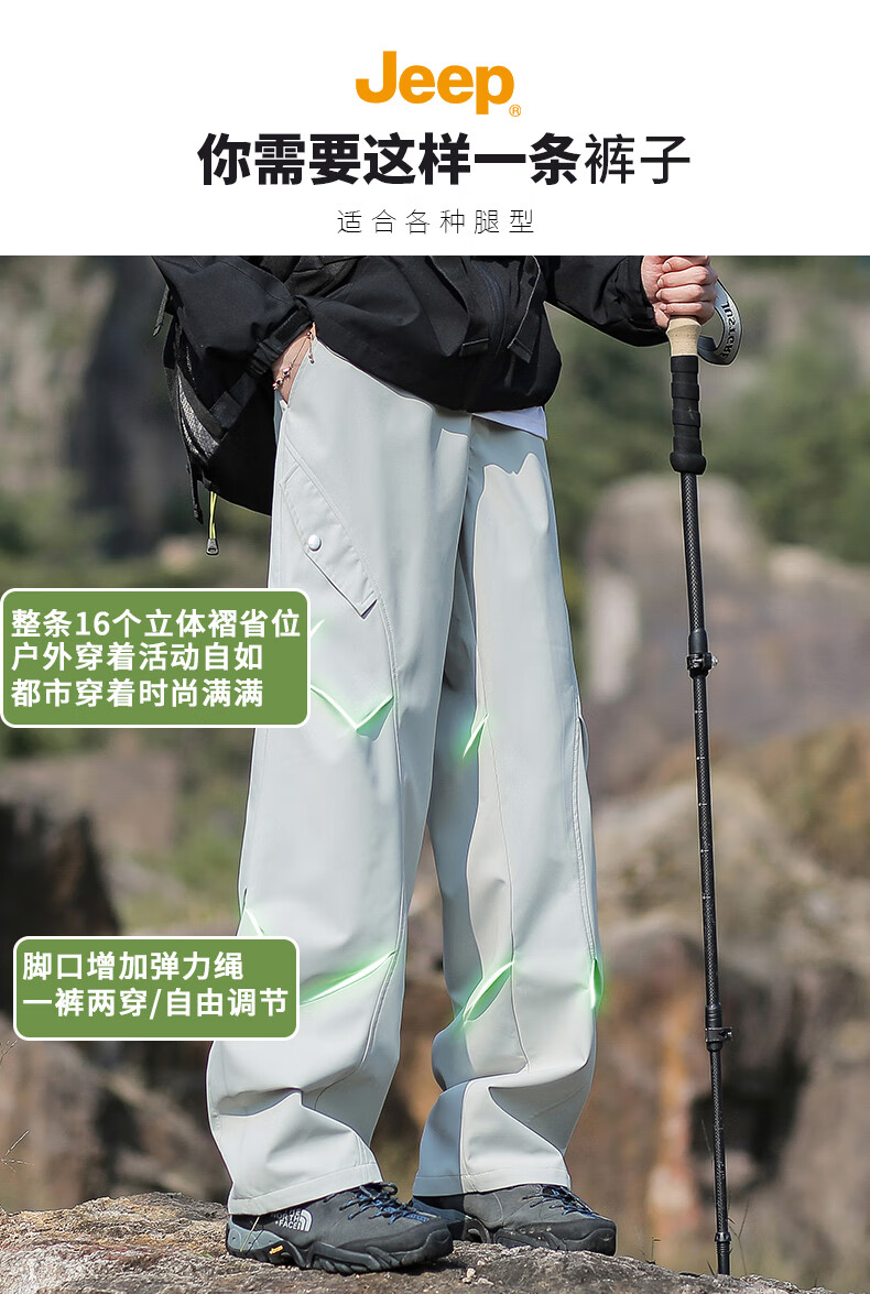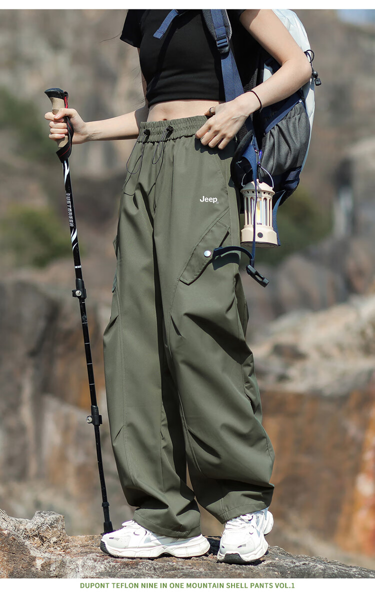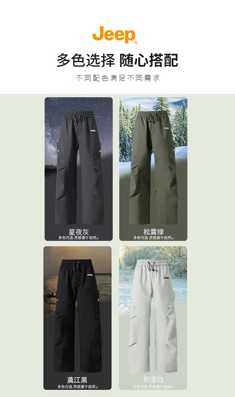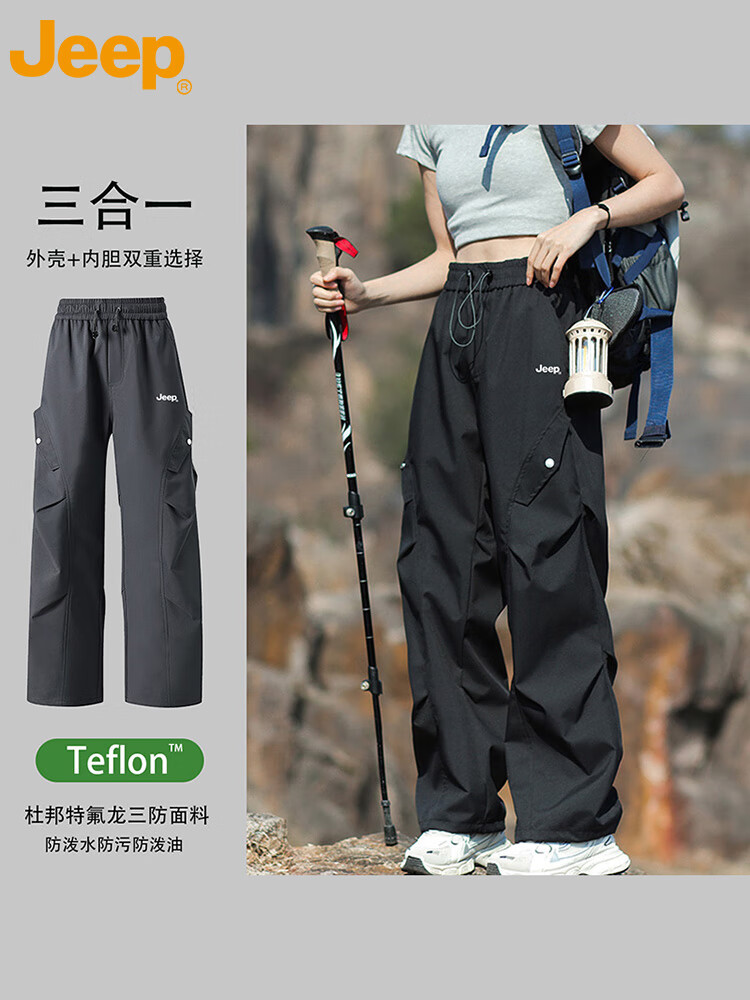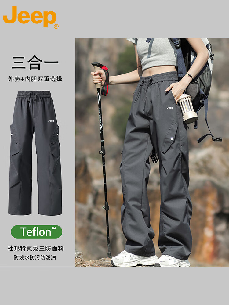 JEEP休闲裤男女秋冬宽松工装裤子三合一特氟龙男裤 松露绿-单裤 XL