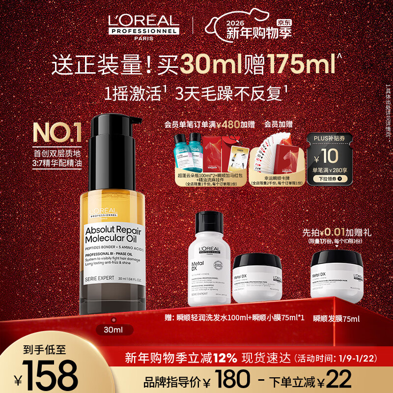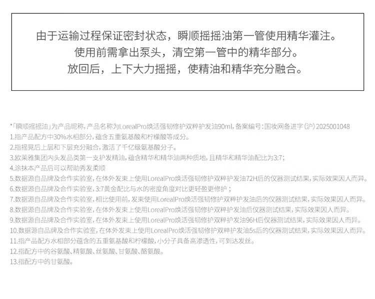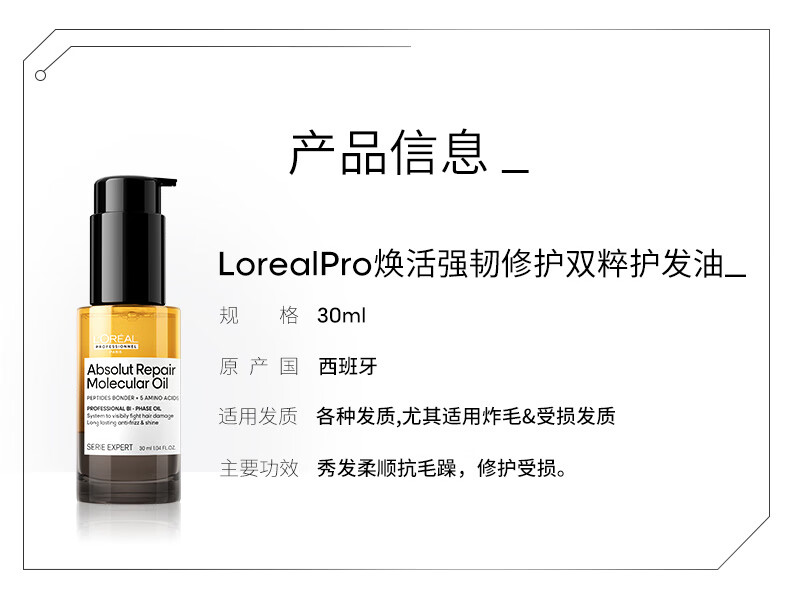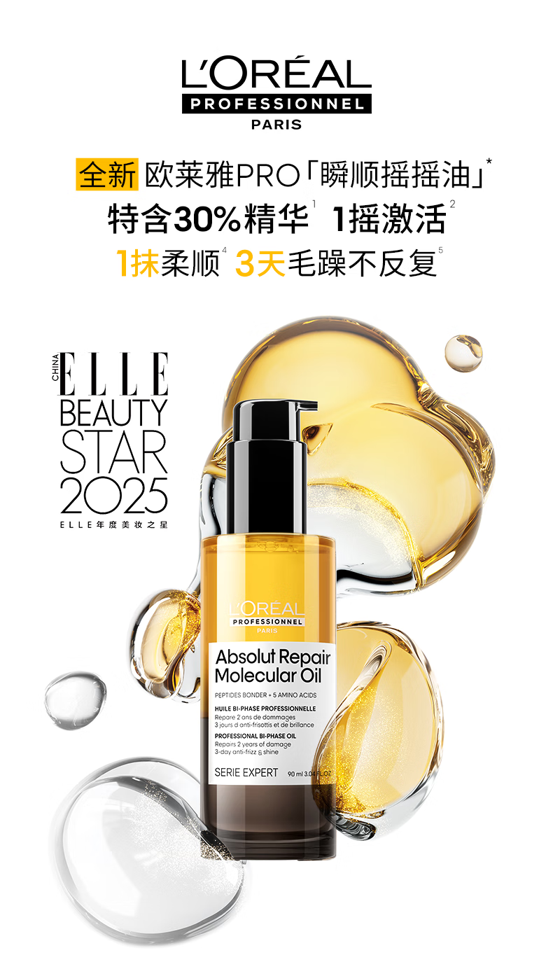 欧莱雅PRO【肖战推荐】瞬顺摇摇油30ml柔顺修护干枯毛躁护发精油热门商品