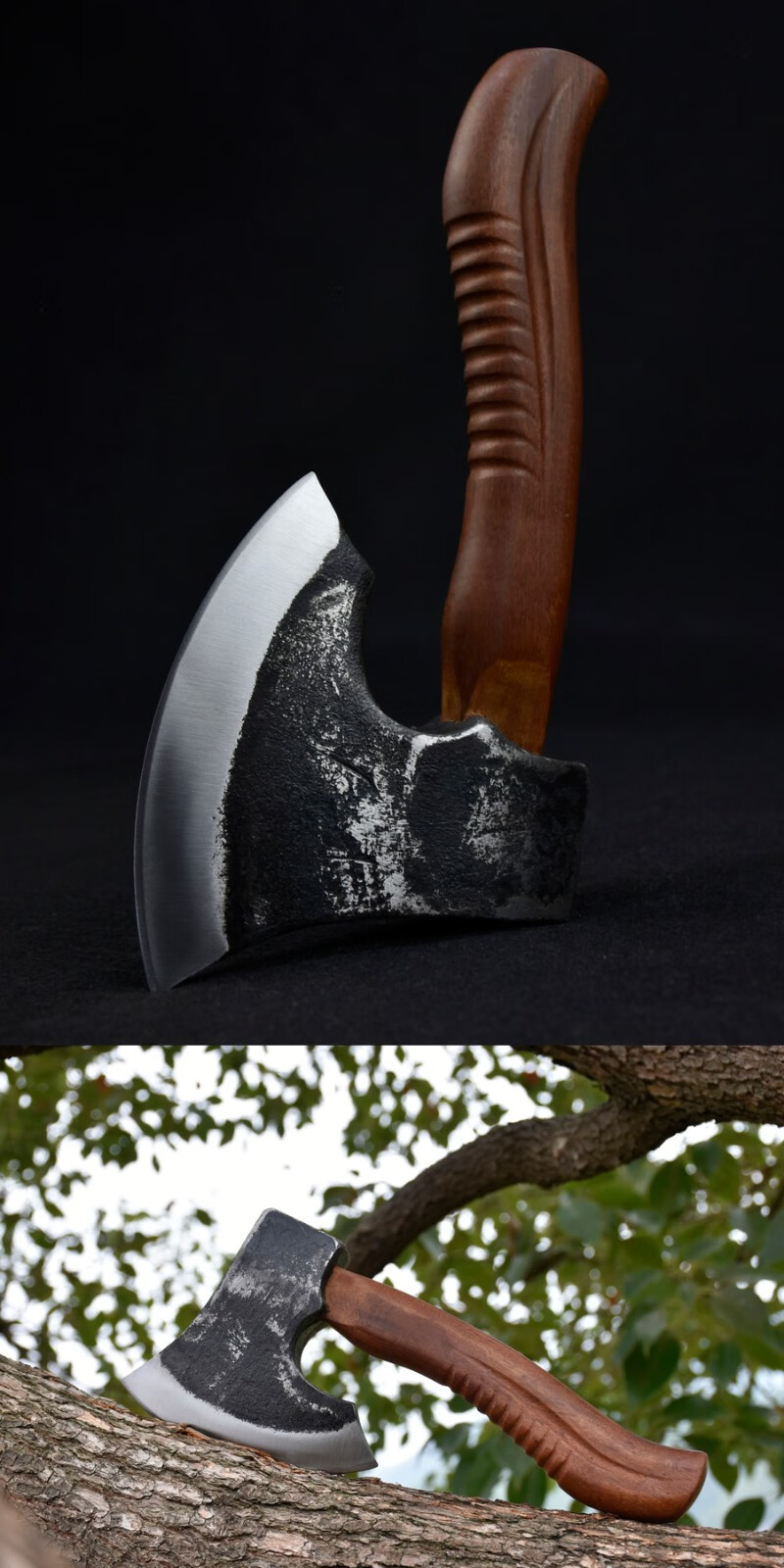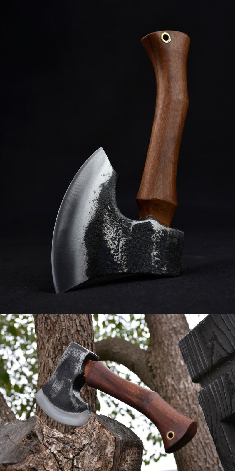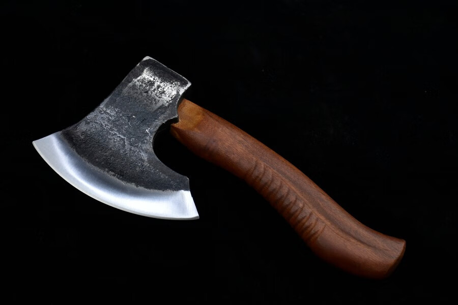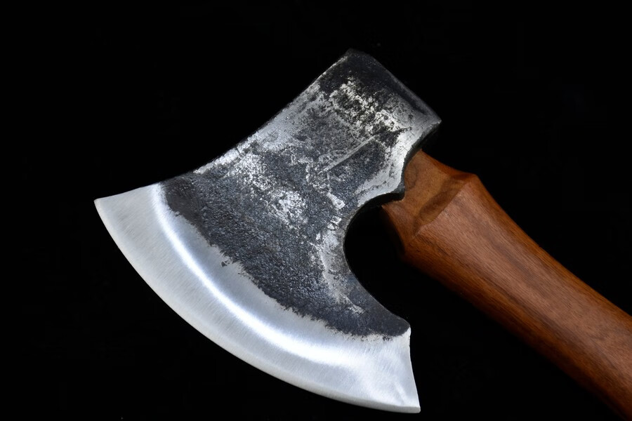龙泉采岑手工锻打菜刀斧头型斩骨刀斩牛骨头排骨厨师专用砍骨斧锋利易磨 03152 维京战斧A款