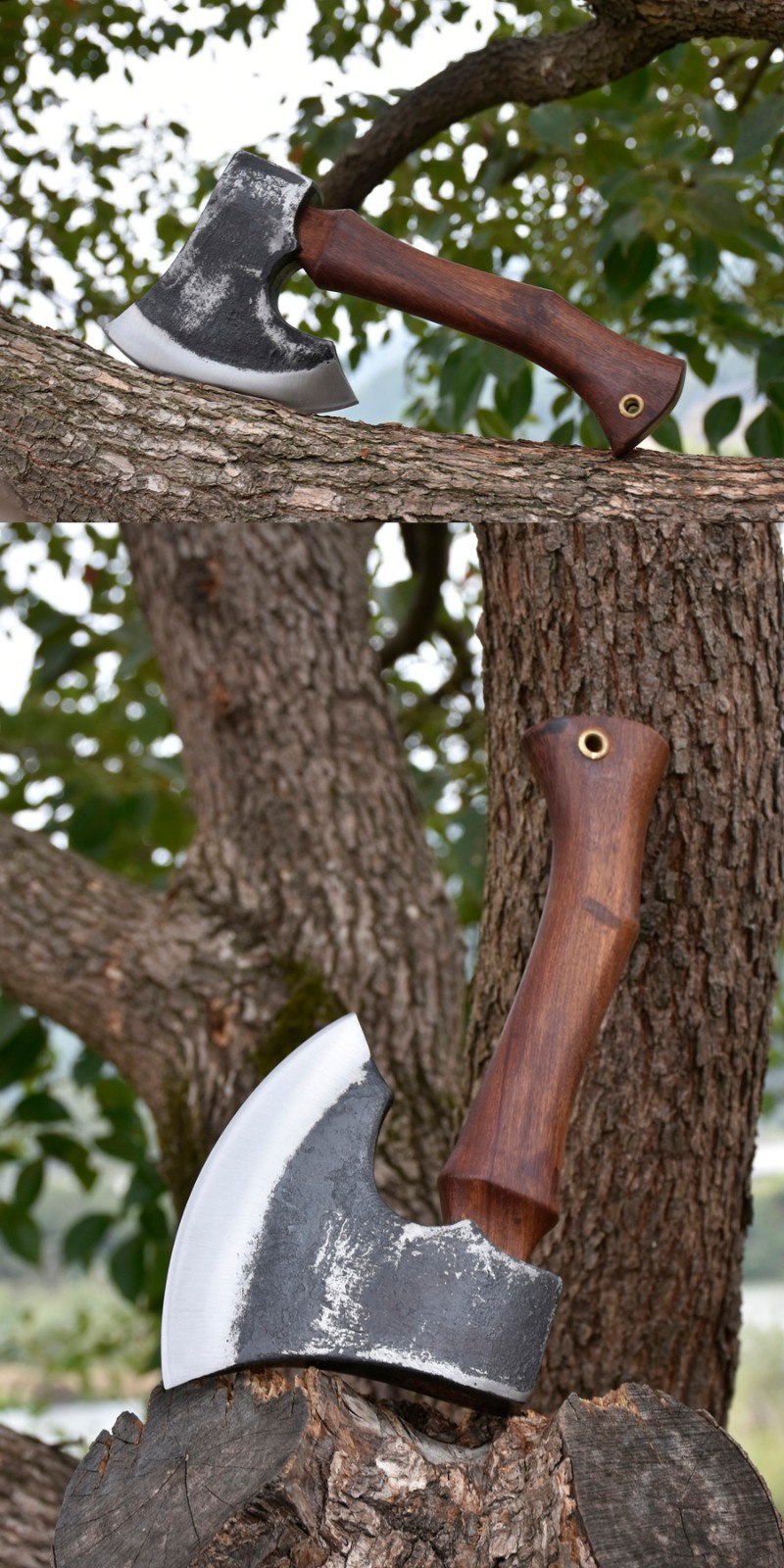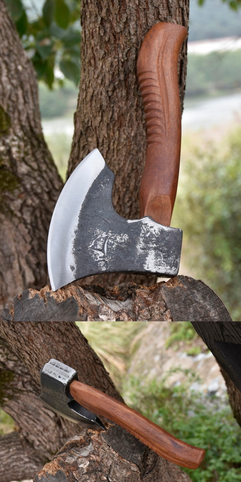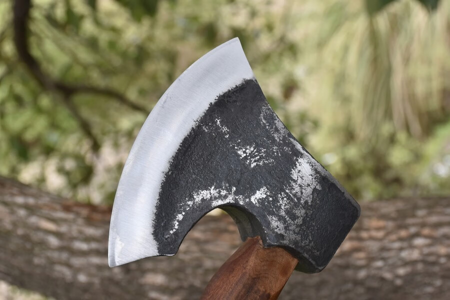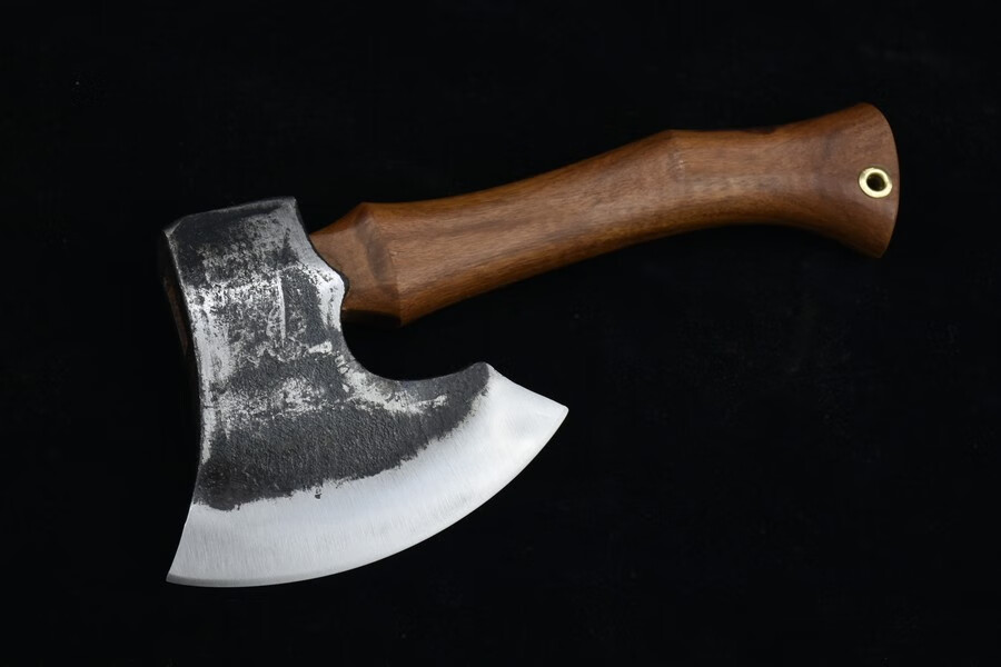 龙泉采岑手工锻打菜刀斧头型斩骨刀斩牛骨头排骨厨师专用砍骨斧锋利易磨 03152 维京战斧A款