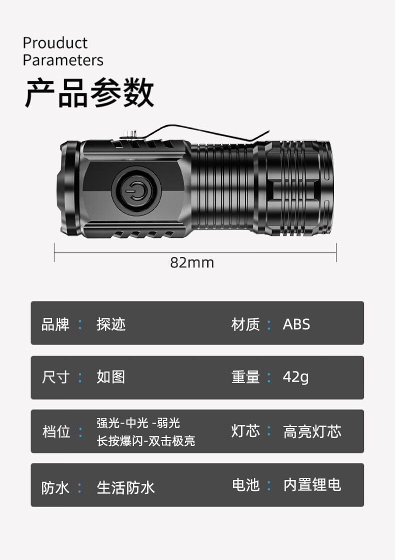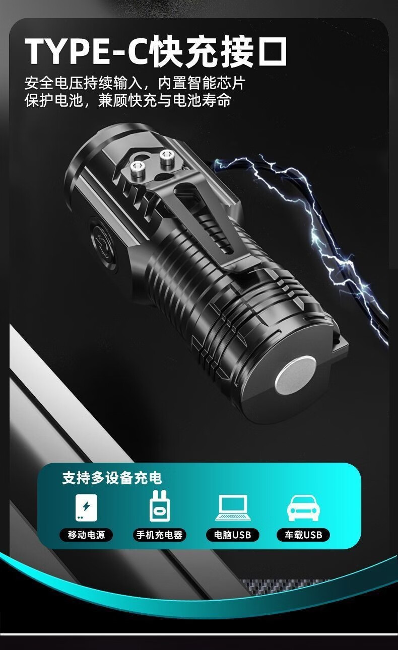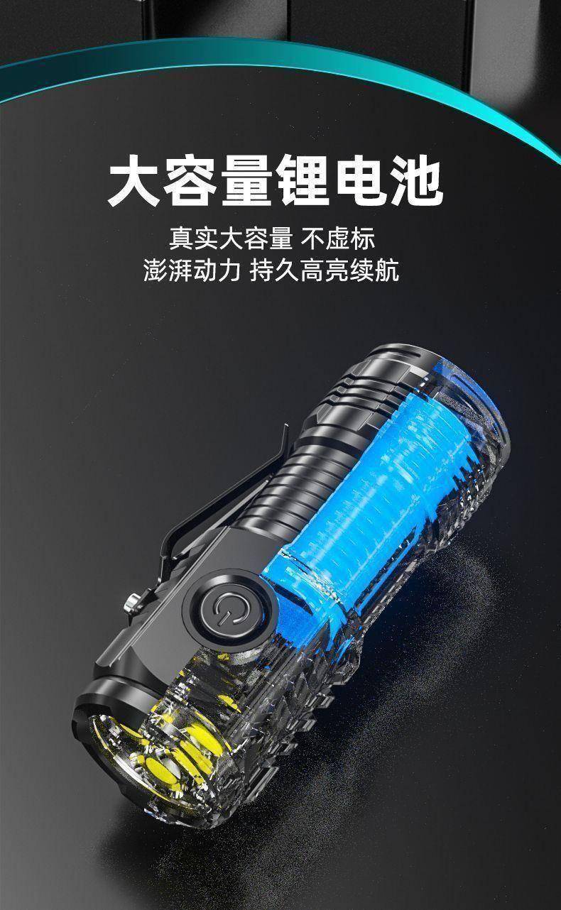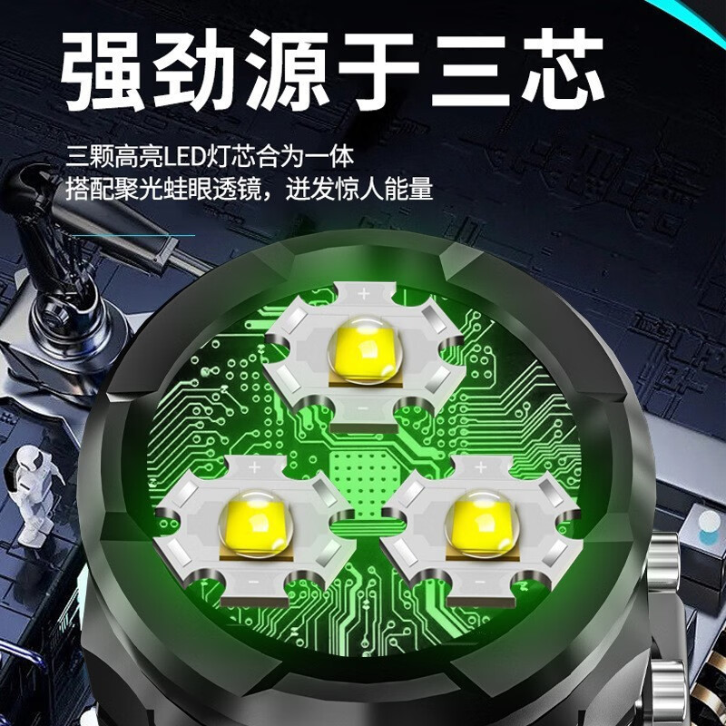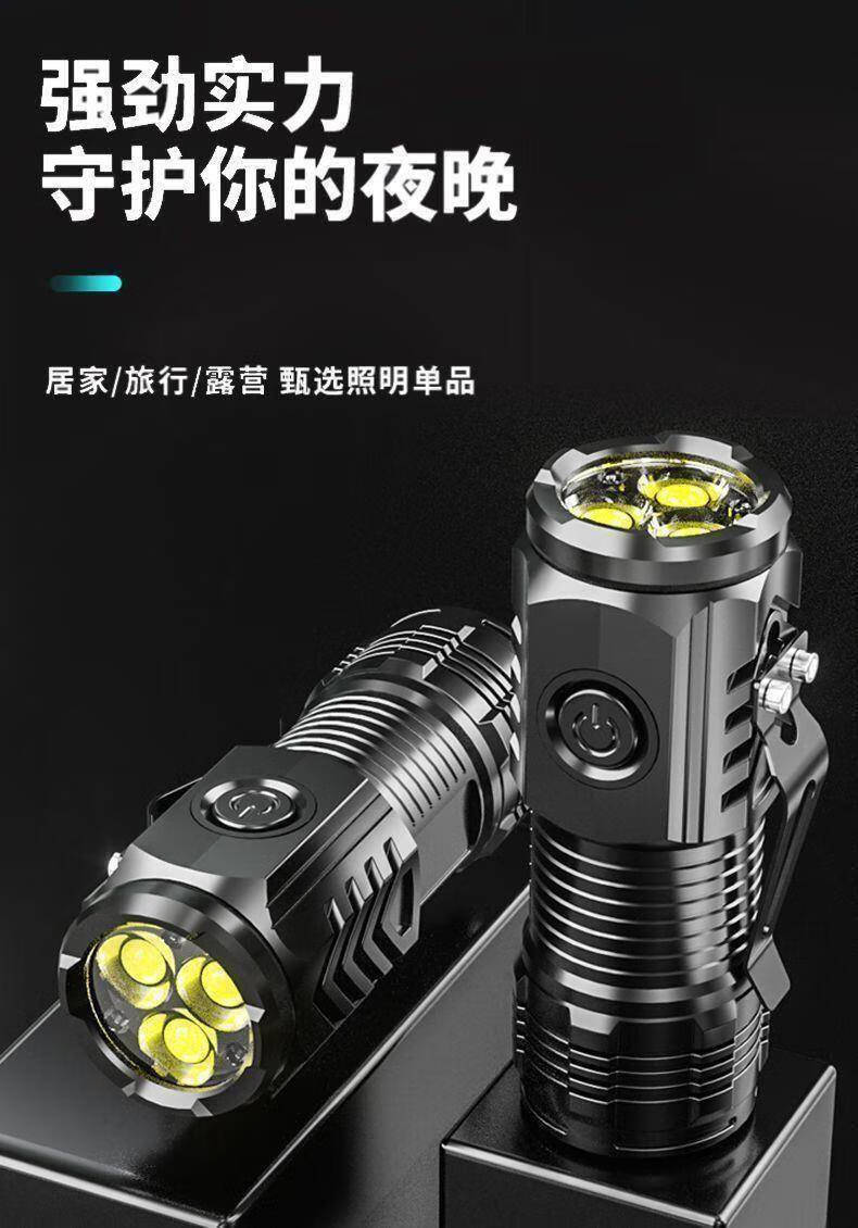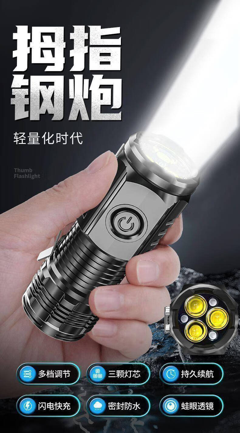 一分钱迷你LED强光手电筒可充电三芯户外超亮工作灯新人专用0.01 三眼小怪兽 五档位快充【黑色】1个