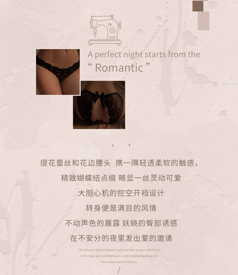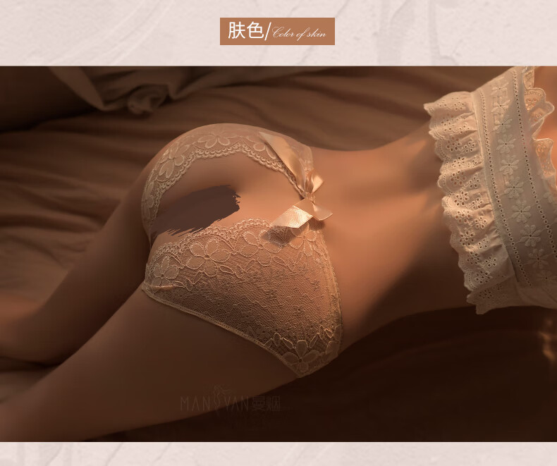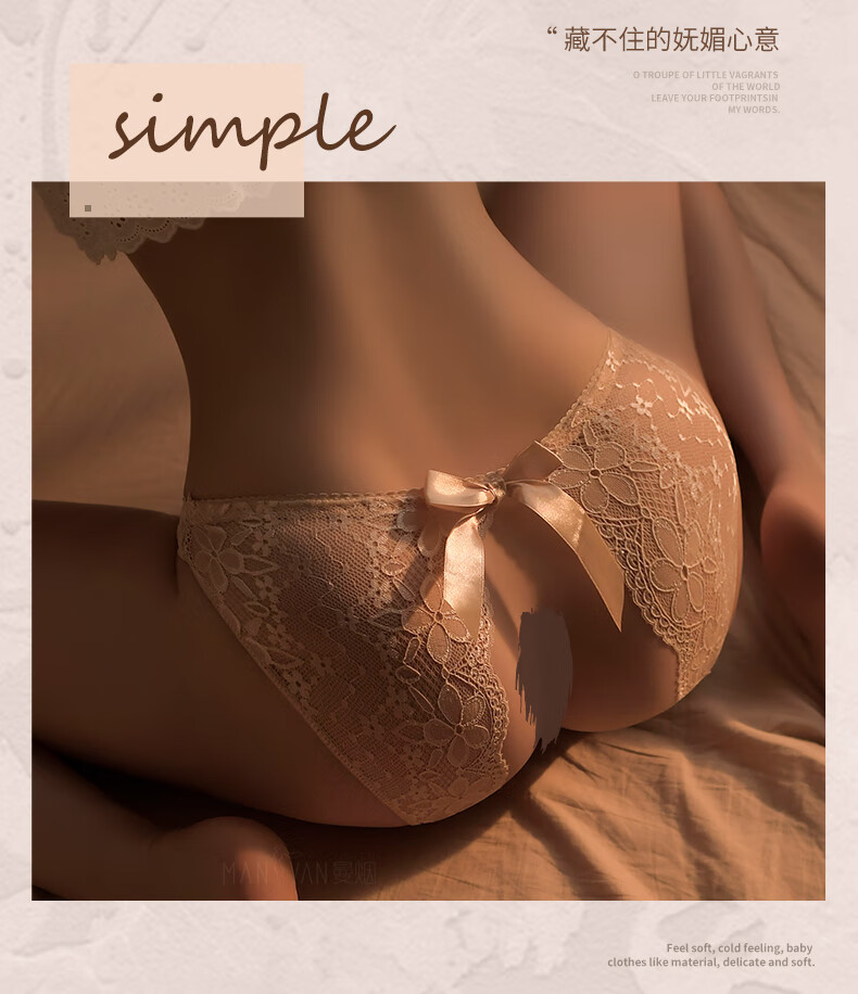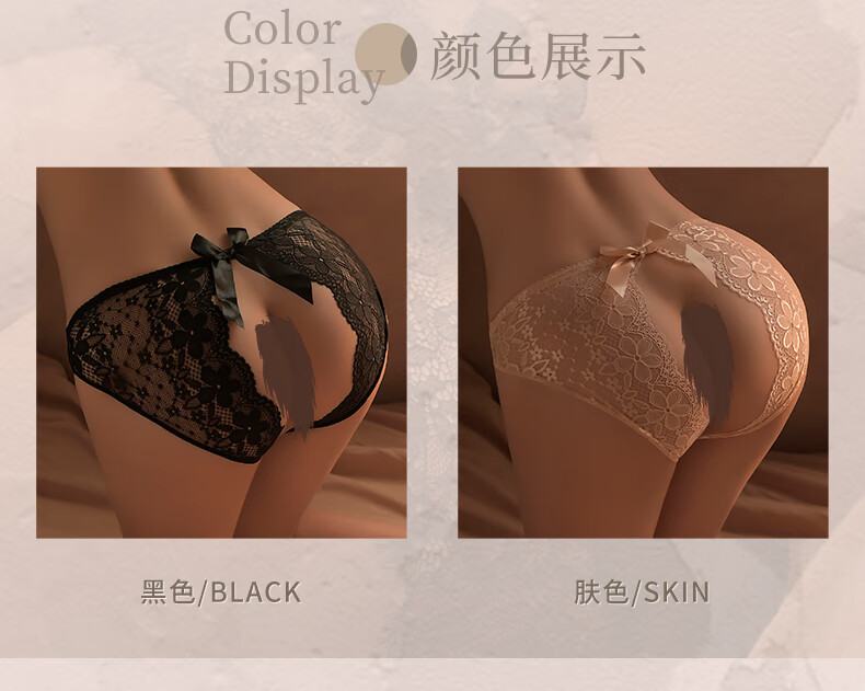 曼烟 情趣内衣性感免脱丁字裤三角裤房事蕾丝开阴裆蝴蝶结内裤黑 1133