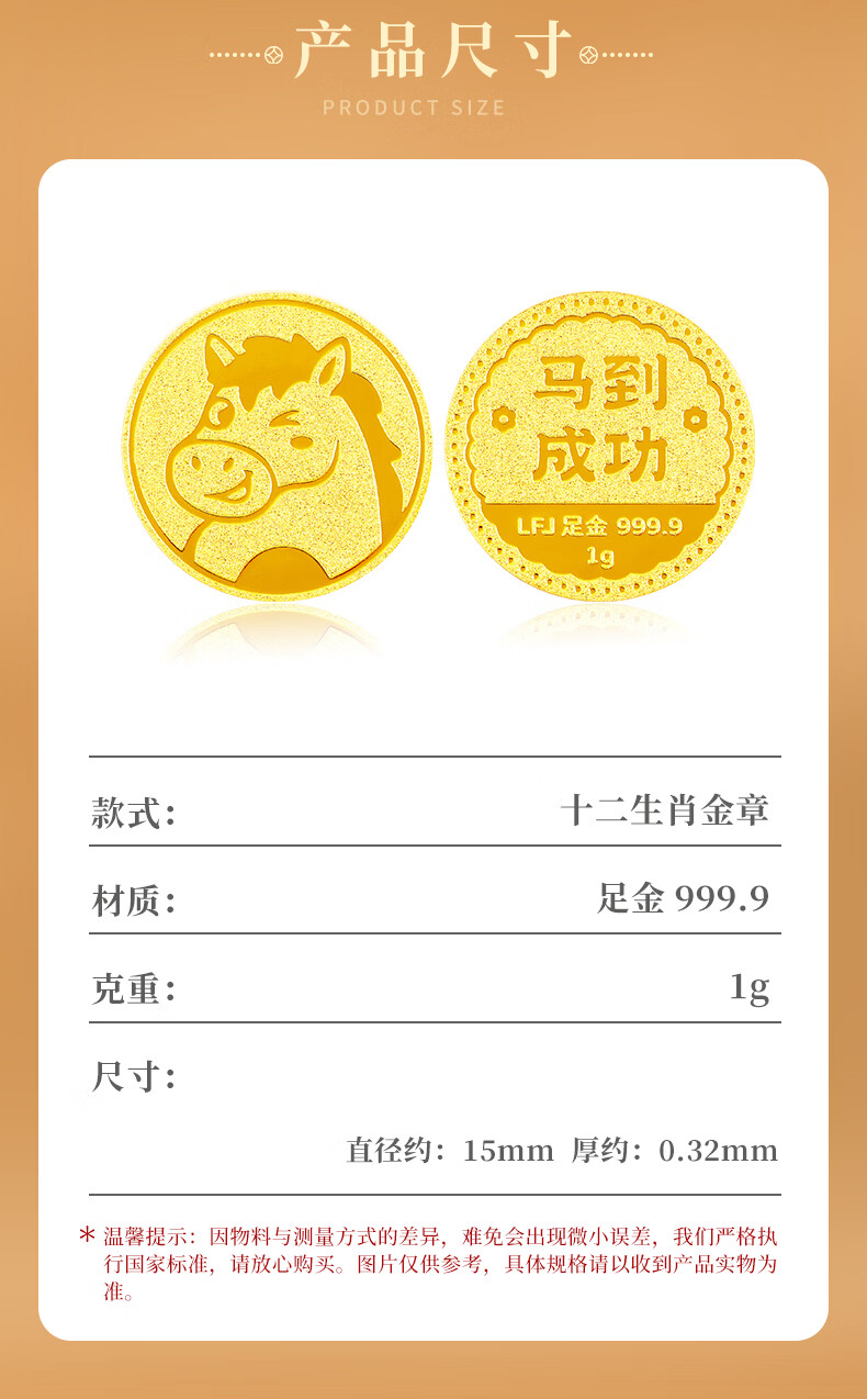 领丰金12生肖金条黄金收藏足金9999送朋友送小孩节日礼物送人送老公老婆 马【马到成功】 1g