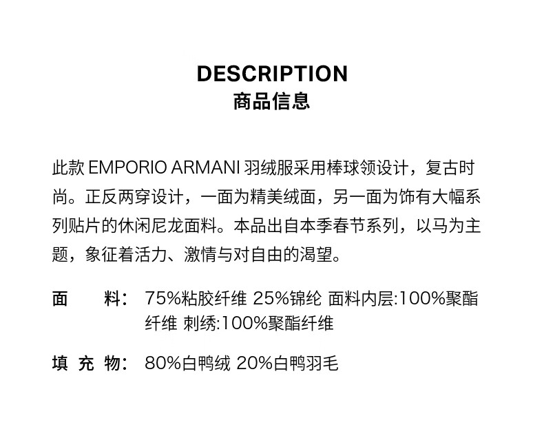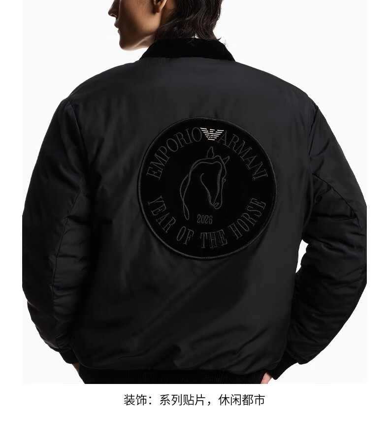 EMPORIO ARMANI/阿玛尼官方旗舰【新年礼物】新款马年限定男士双面穿羽绒服春季 UC001-黑色 46 (S) (推荐:120-135斤)