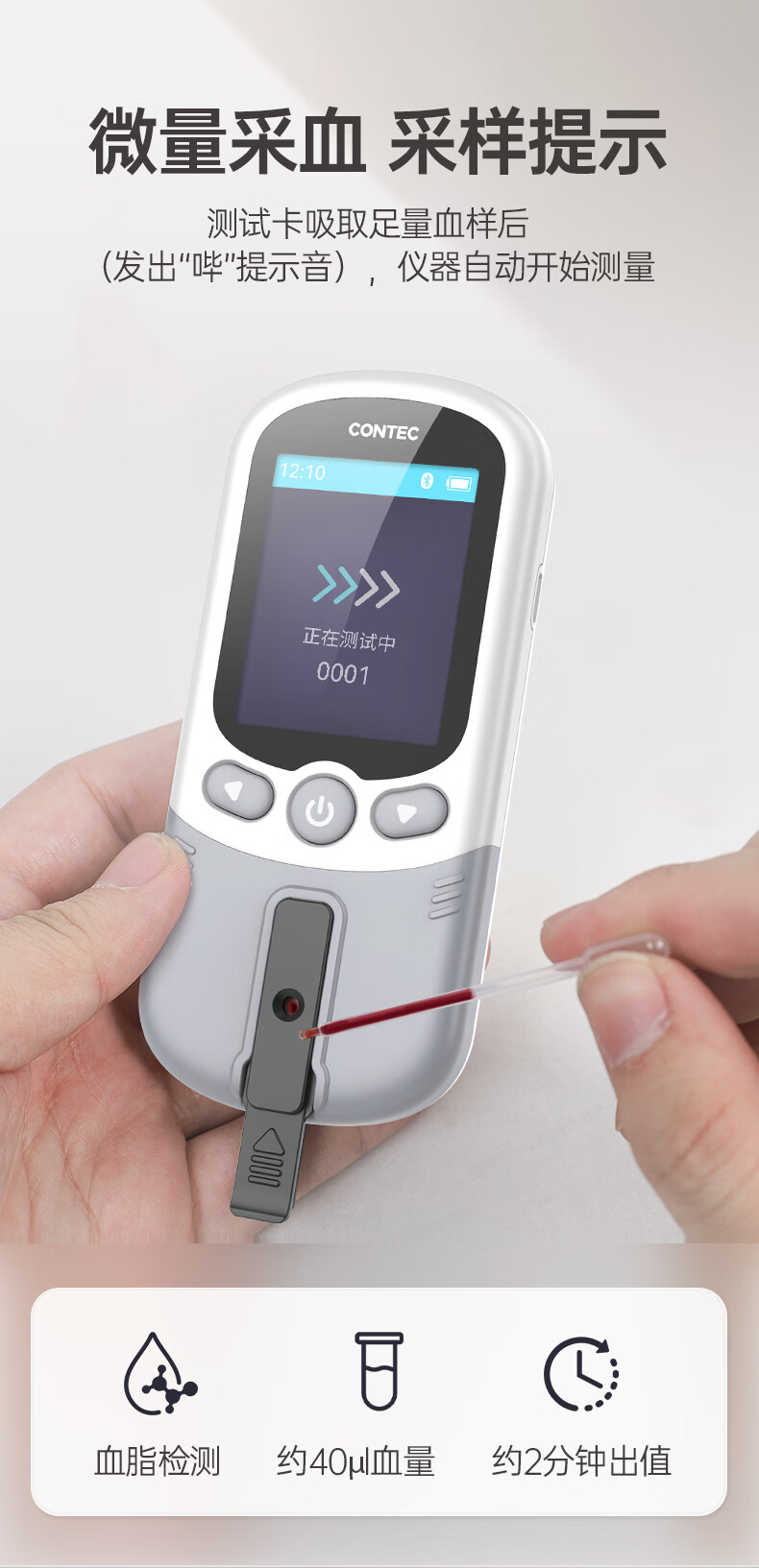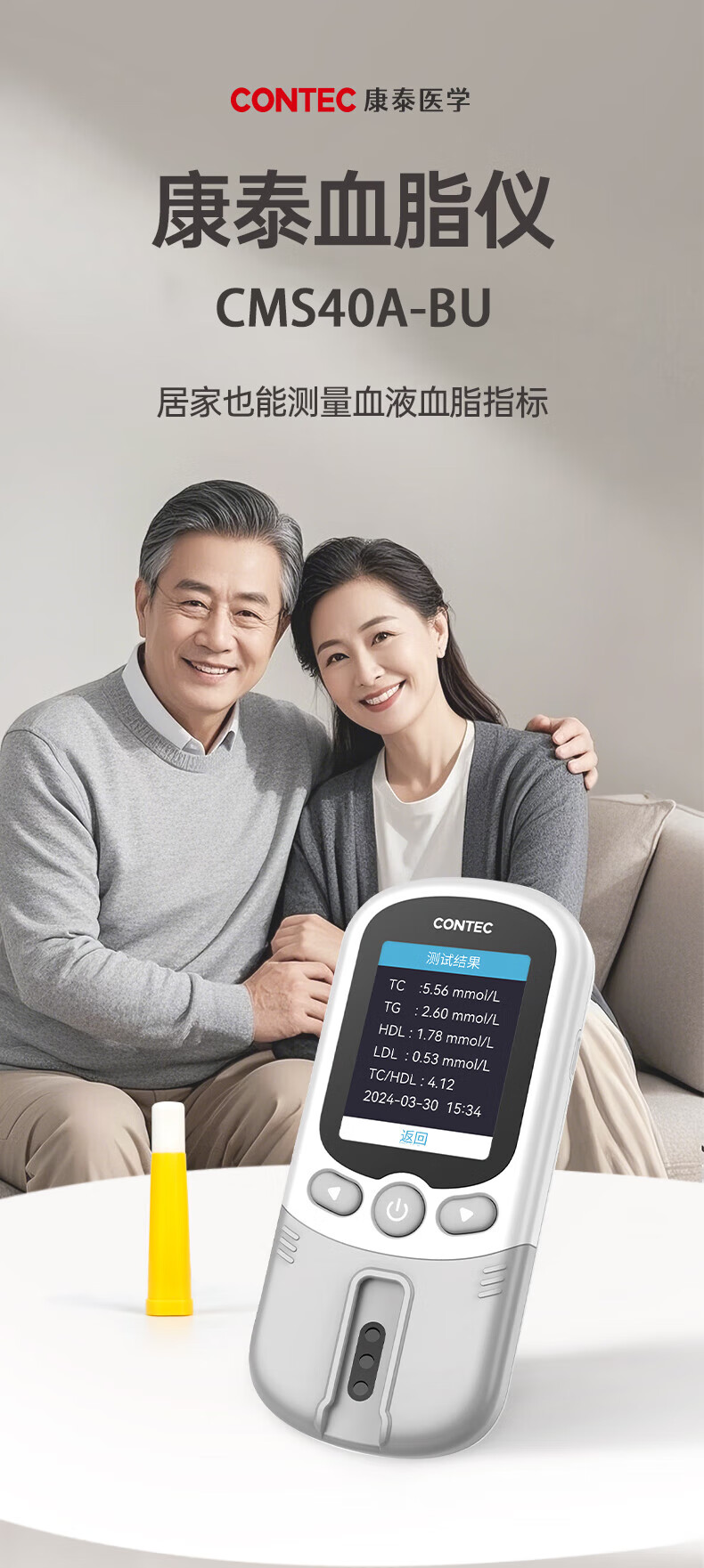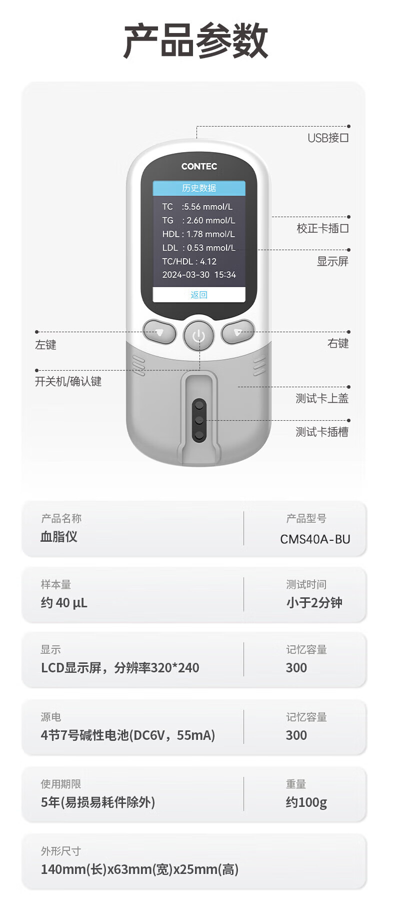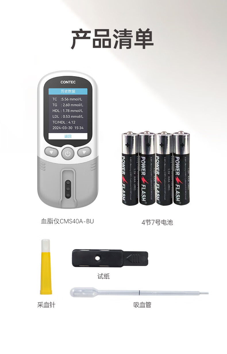 CONTEC康泰医用血脂仪家用测胆固醇甘油三酯五项40A-BU检测仪高精准