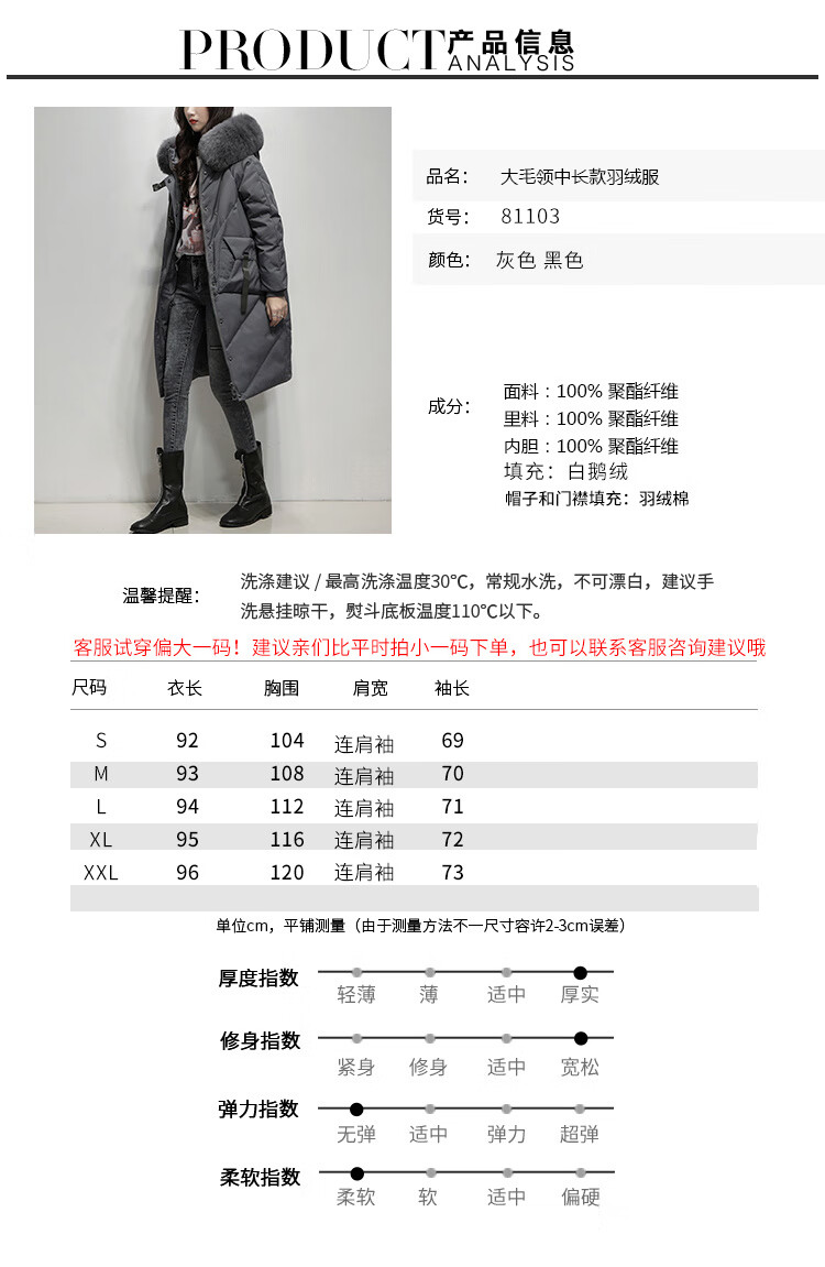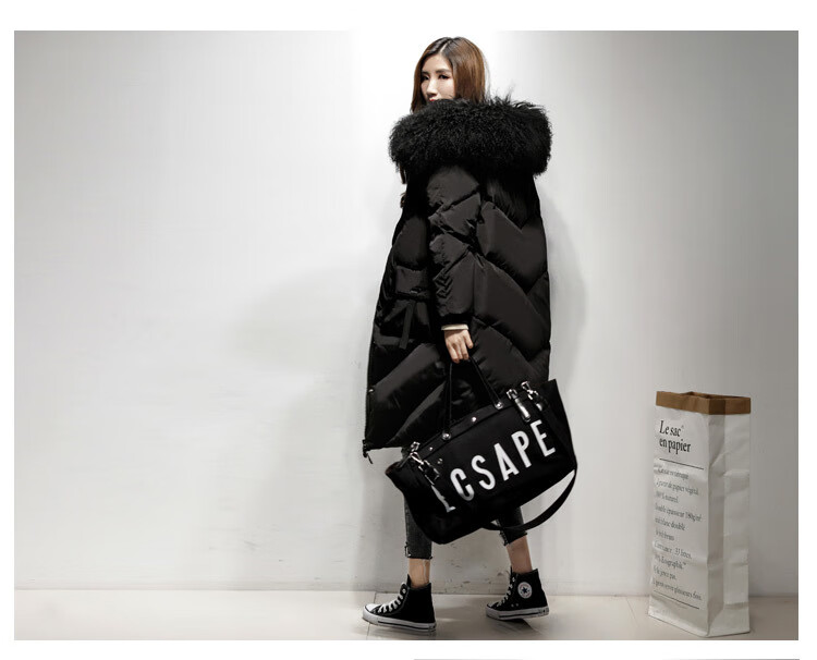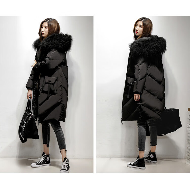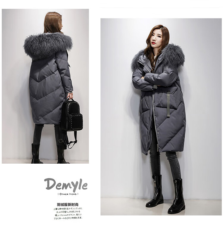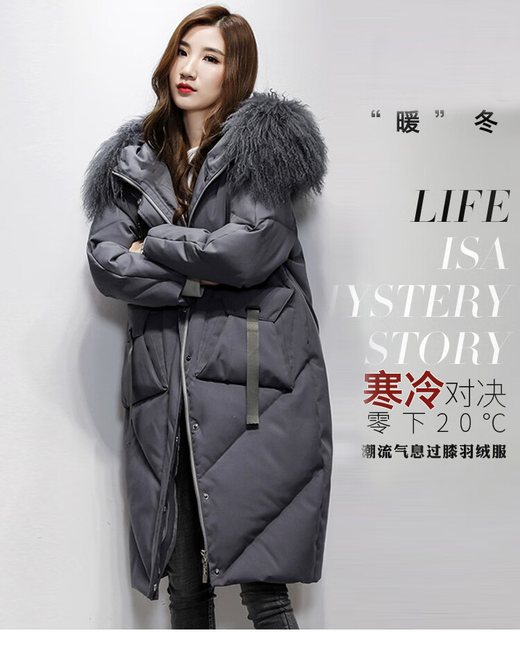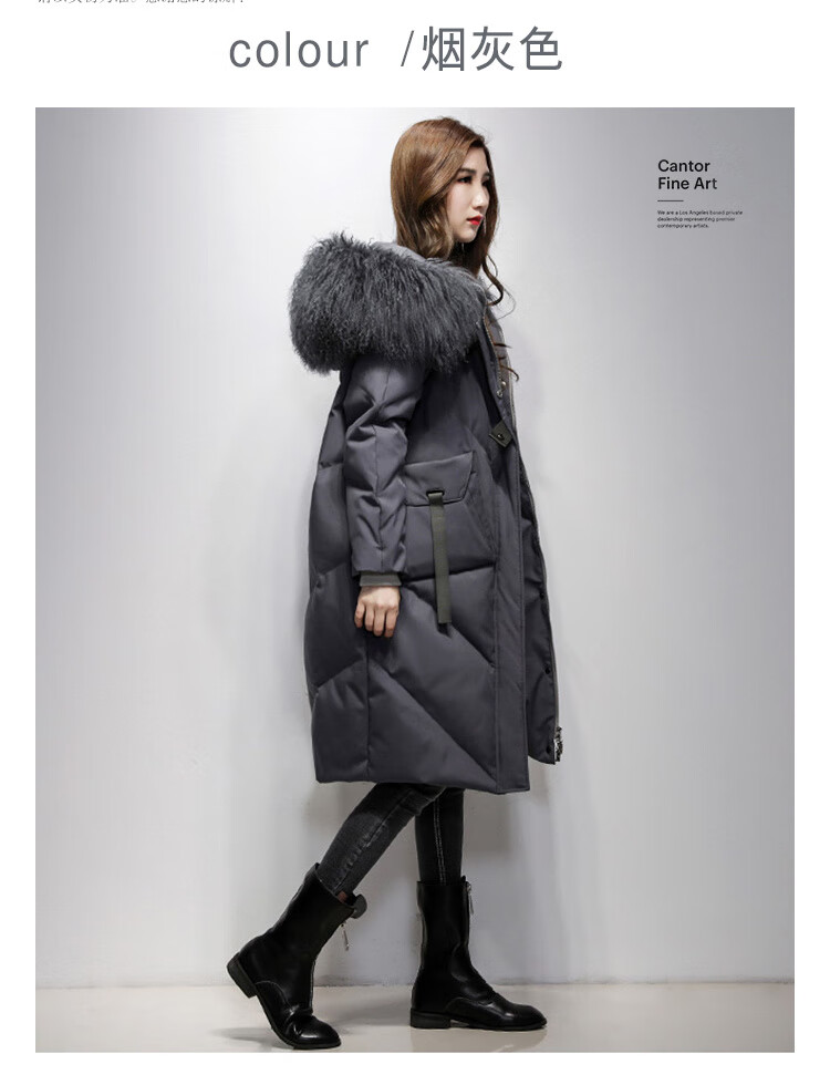 鸢诺2025新款白鹅绒真毛领中长款羽绒服女长过膝宽松显瘦时尚加厚 灰色 滩羊毛 S