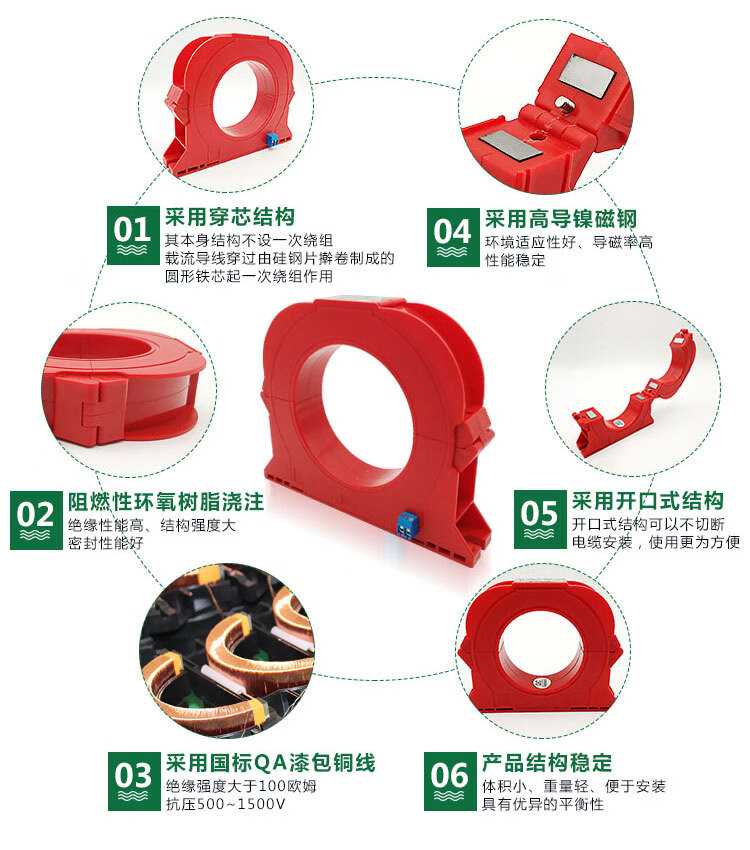 厚德开口式电流互感器100-6000/5厚德HDELEM零序2000/1剩余电流开合式 100/5 孔径30mm