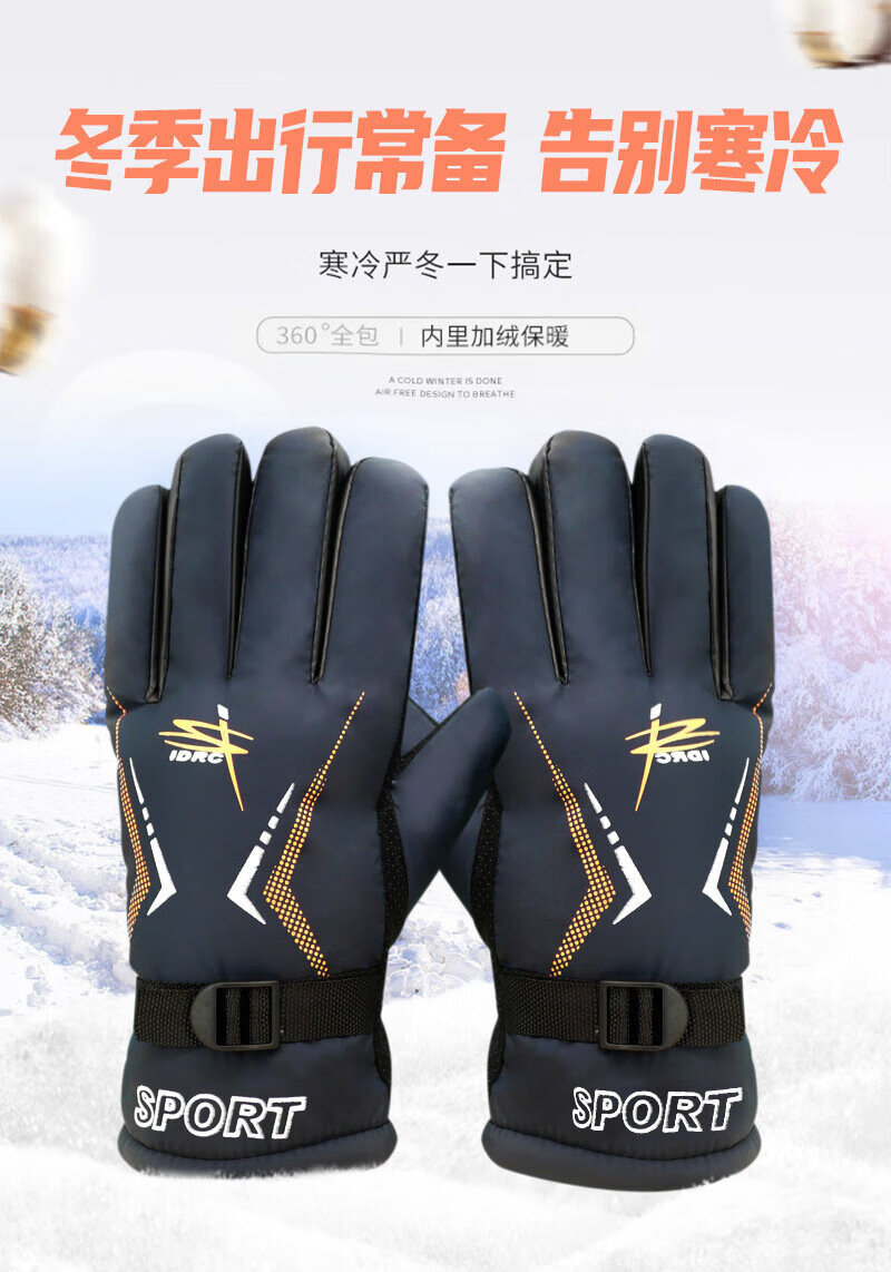 集衫坊手套冬天骑车男加绒加厚户外防风防水保暖骑行摩托车手套挡水女士 蓝色加绒加厚