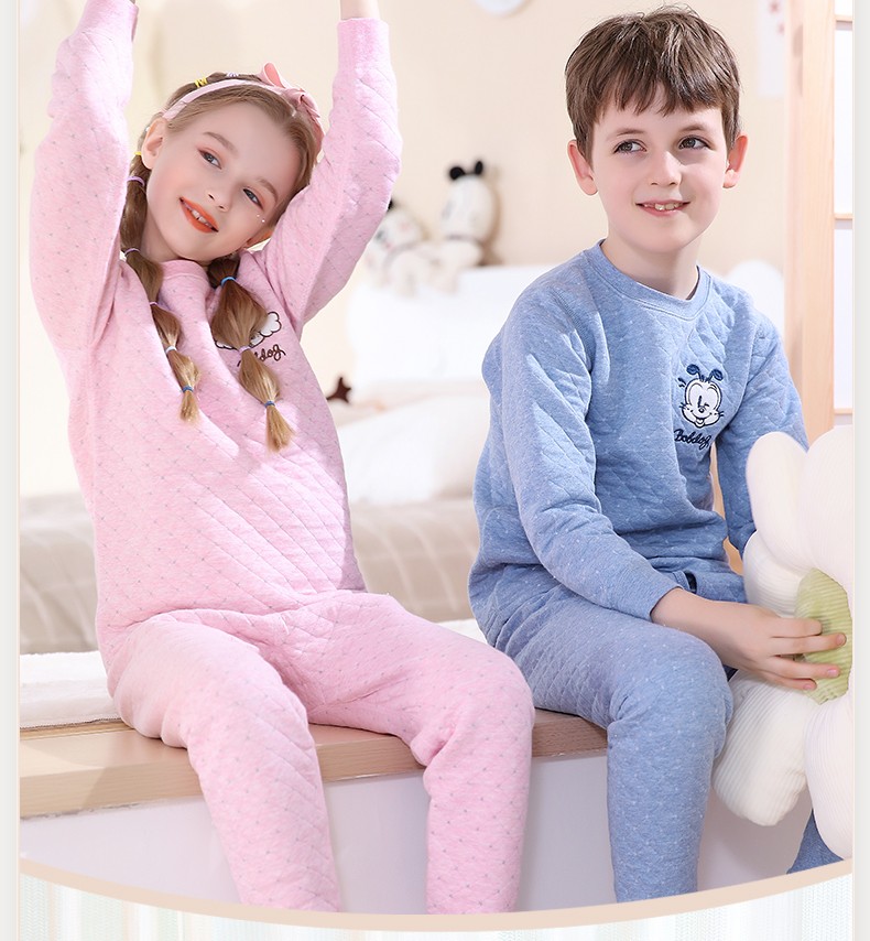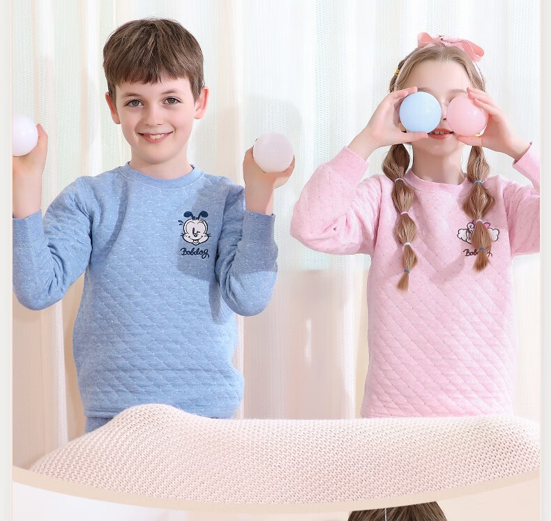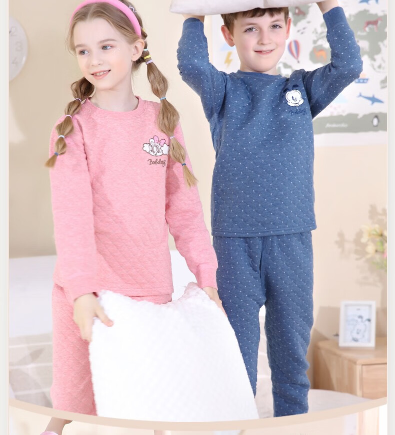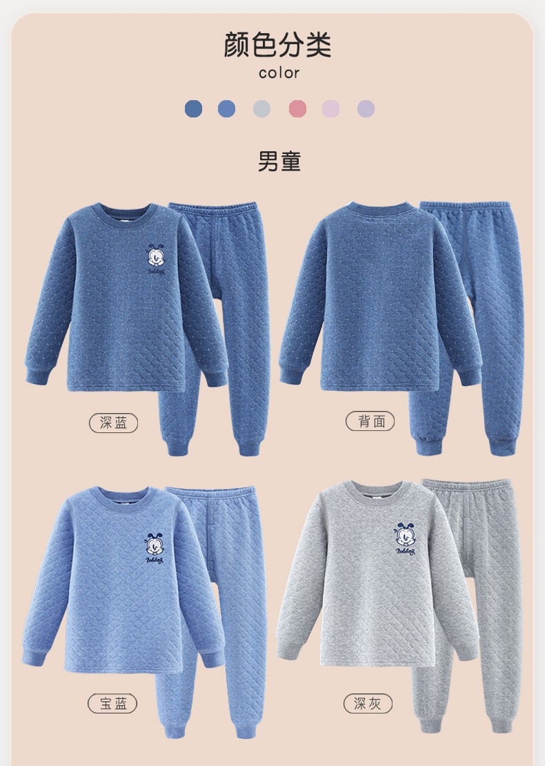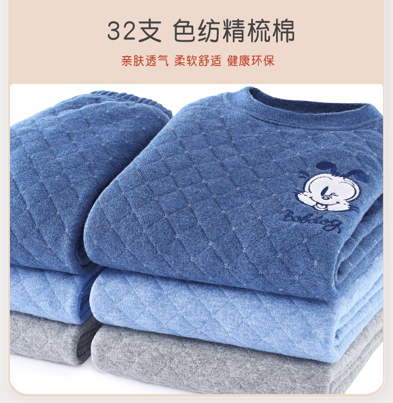多妙屋儿童保暖内衣套装秋冬加厚纯棉男童秋衣秋裤全棉女童宝宝 男童宝蓝 7633 150 参考身高140-150