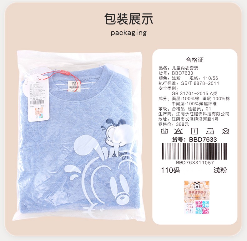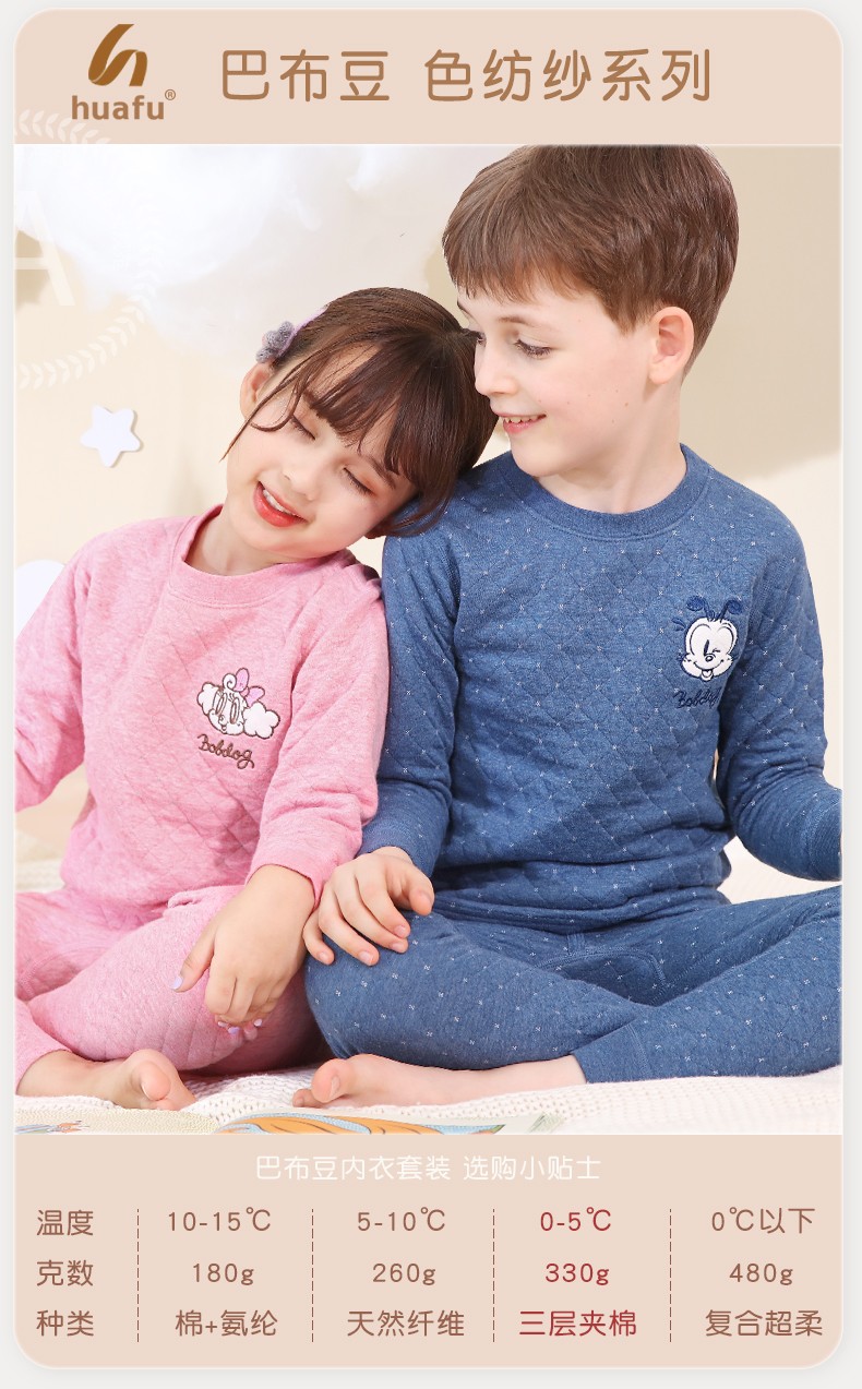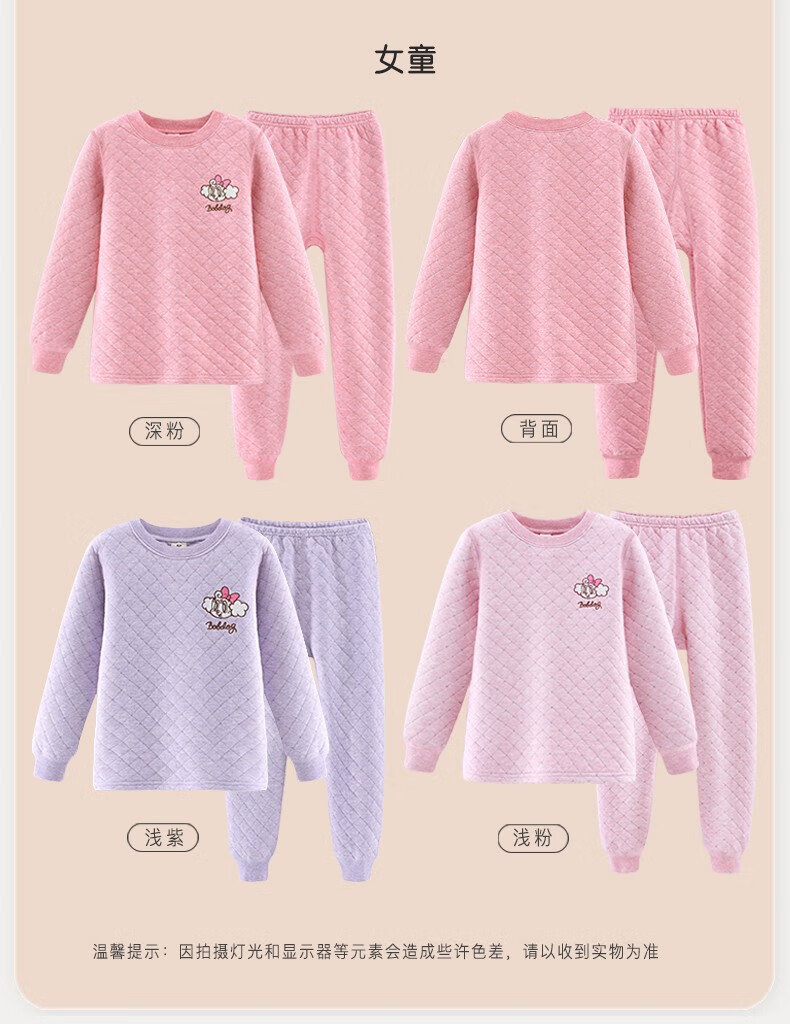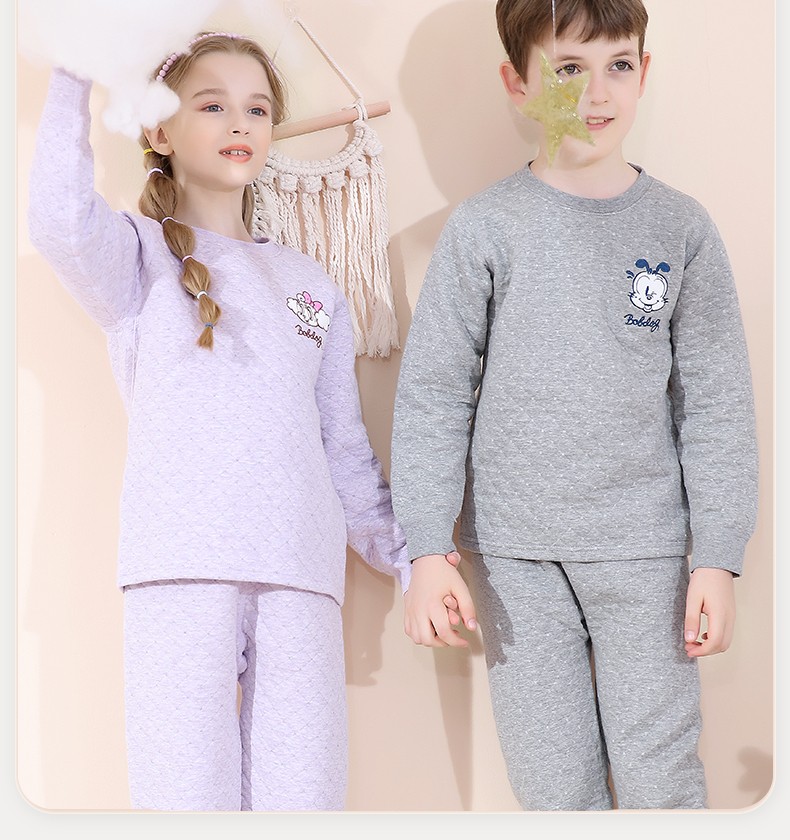 多妙屋儿童保暖内衣套装秋冬加厚纯棉男童秋衣秋裤全棉女童宝宝 男童宝蓝 7633 150 参考身高140-150