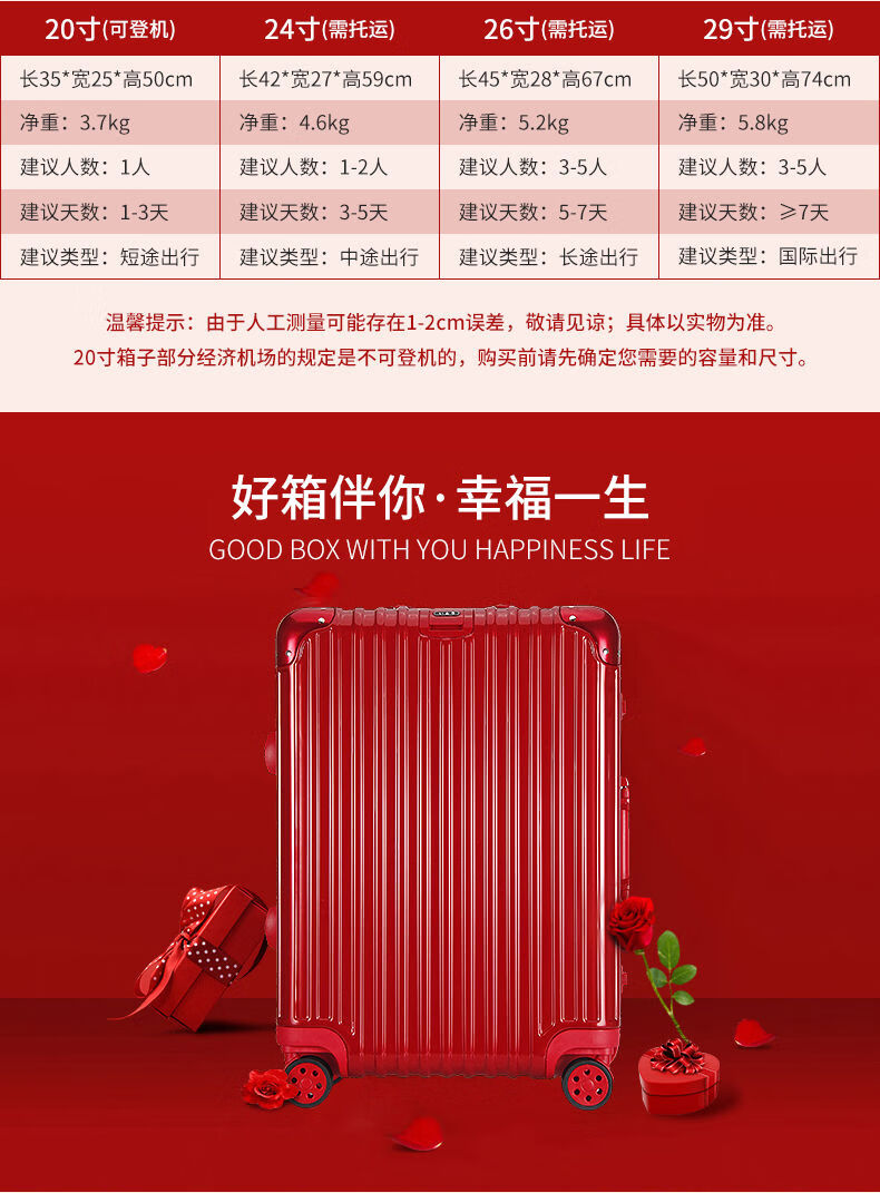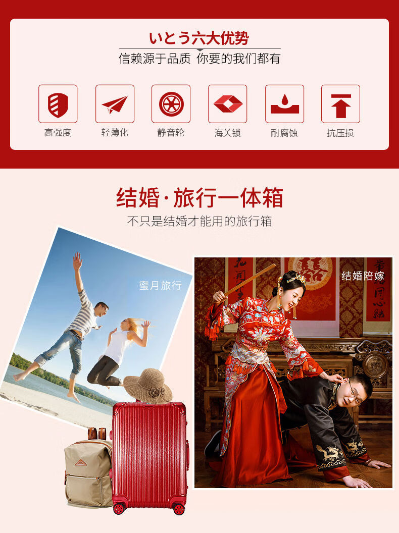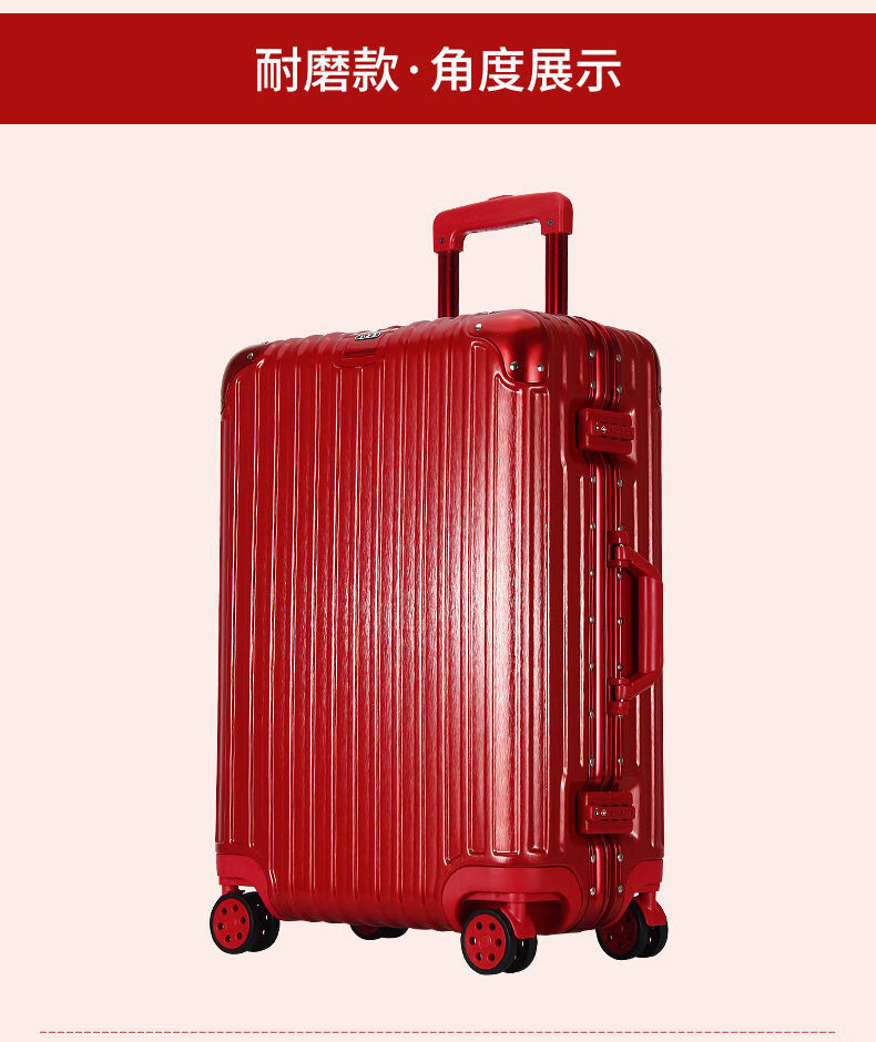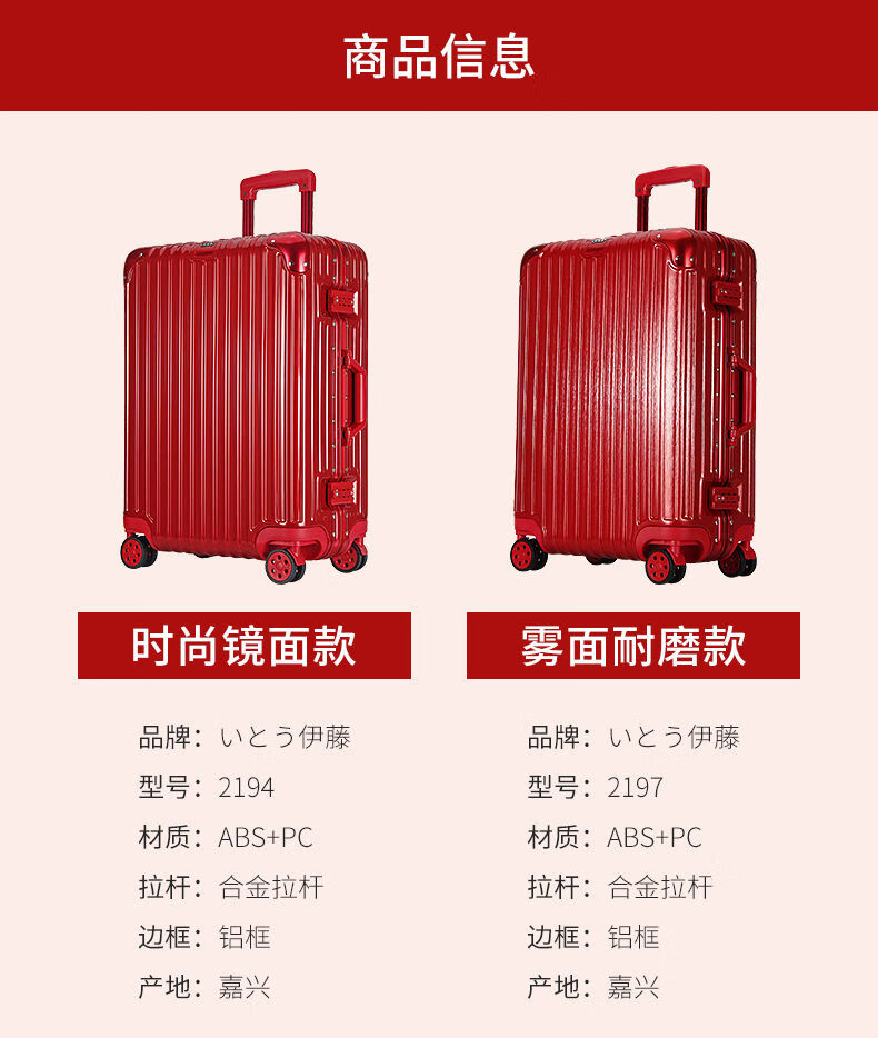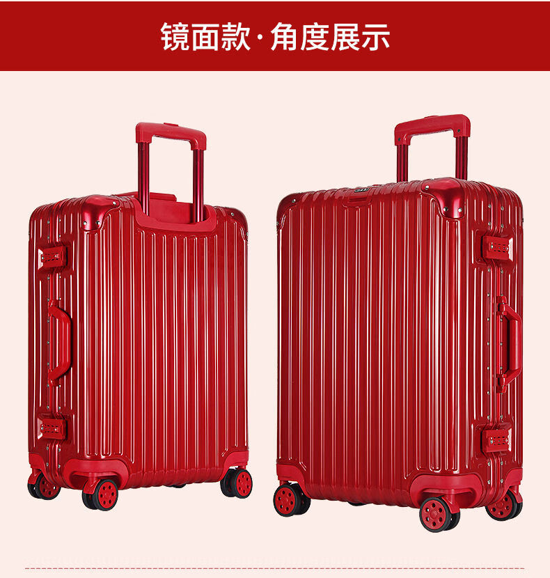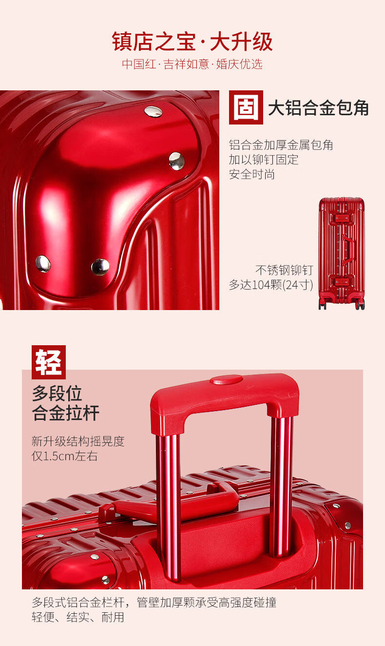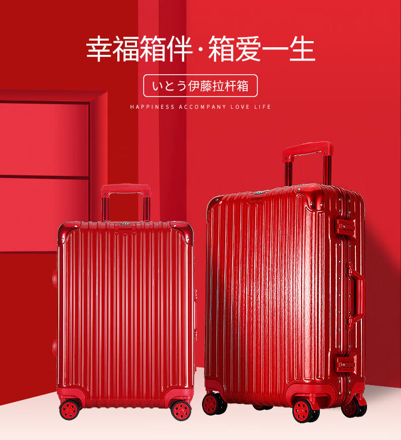 伊藤结婚箱新娘女婚箱铝框拉杆箱压箱底红色行李箱24寸陪嫁箱 镜面红 20寸