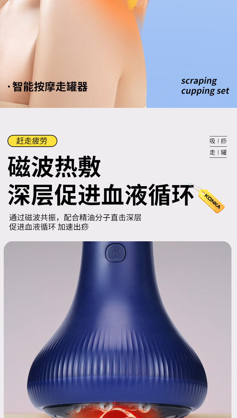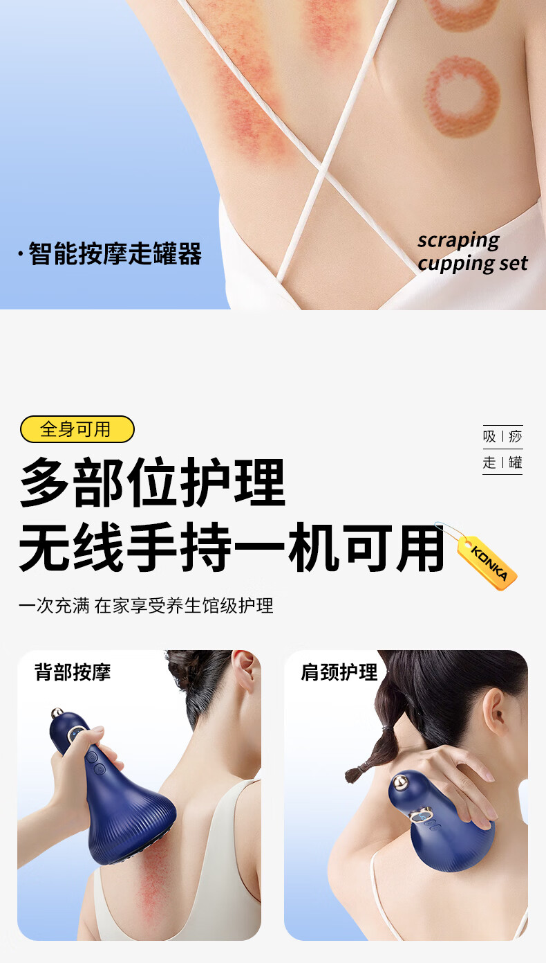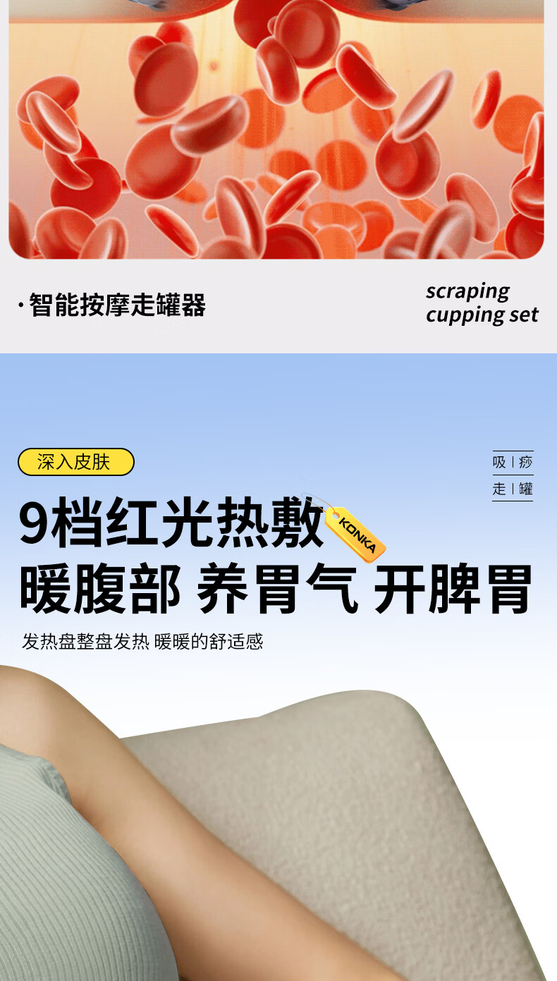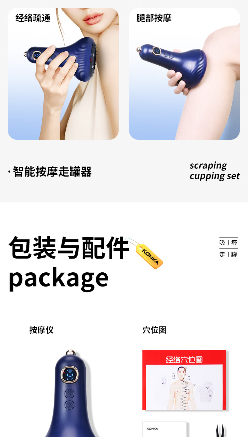 康佳电动刮痧仪拔罐神器肩颈疏通按摩器经络刷全身通用家用腹背部按摩节日送父母礼物 【9档充电款】走罐出痧+4个罐+3瓶精油+穴位图