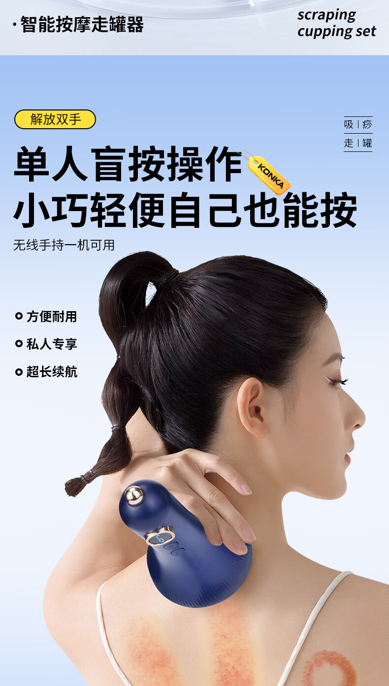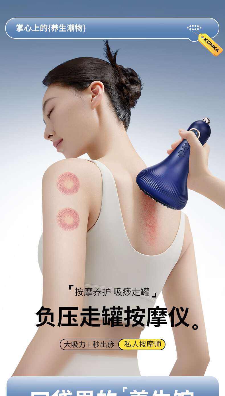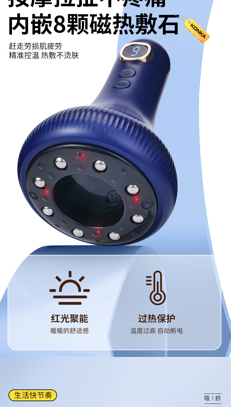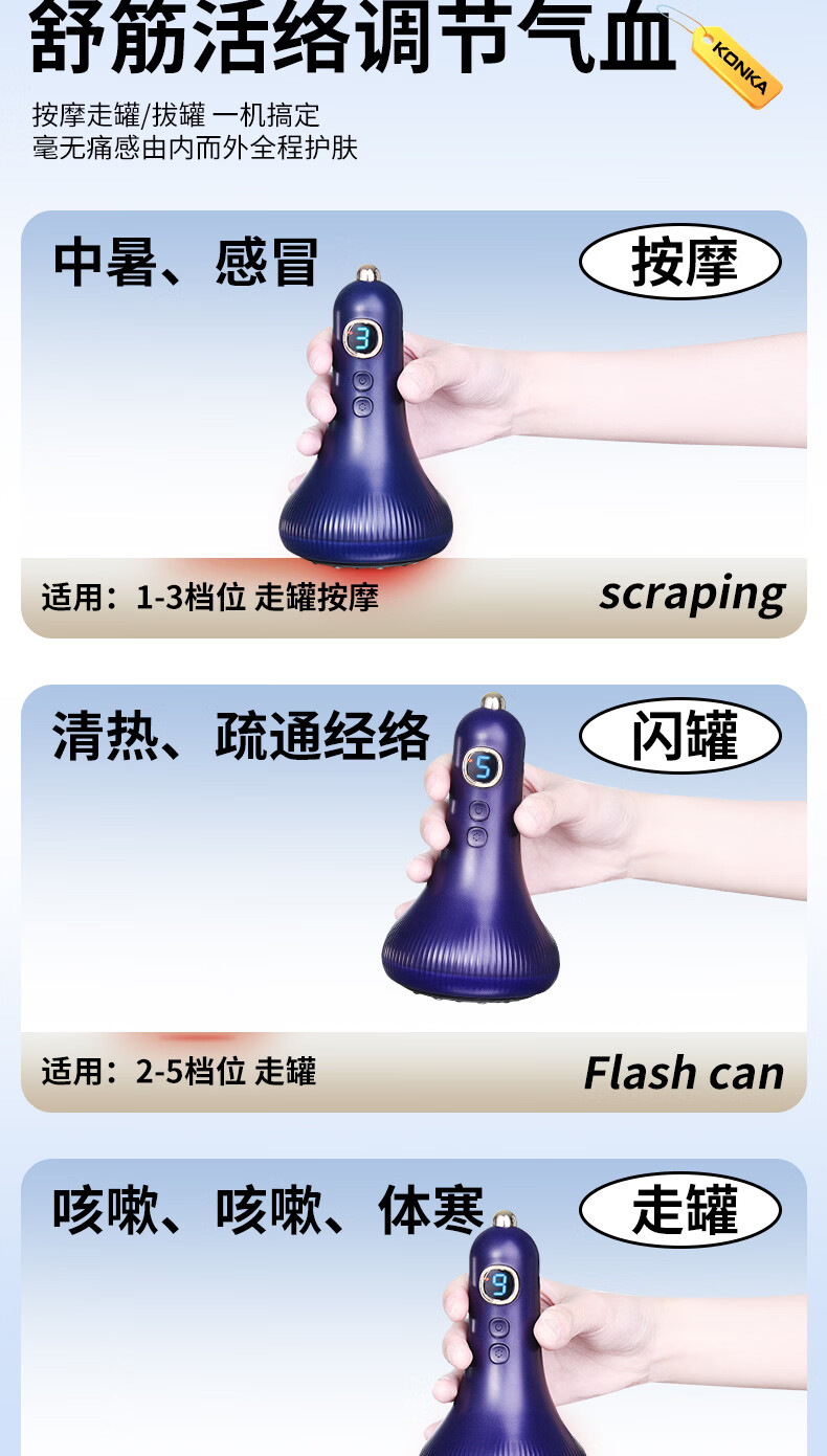 康佳电动刮痧仪拔罐神器肩颈疏通按摩器经络刷全身通用家用腹背部按摩节日送父母礼物 【9档充电款】走罐出痧+4个罐+3瓶精油+穴位图