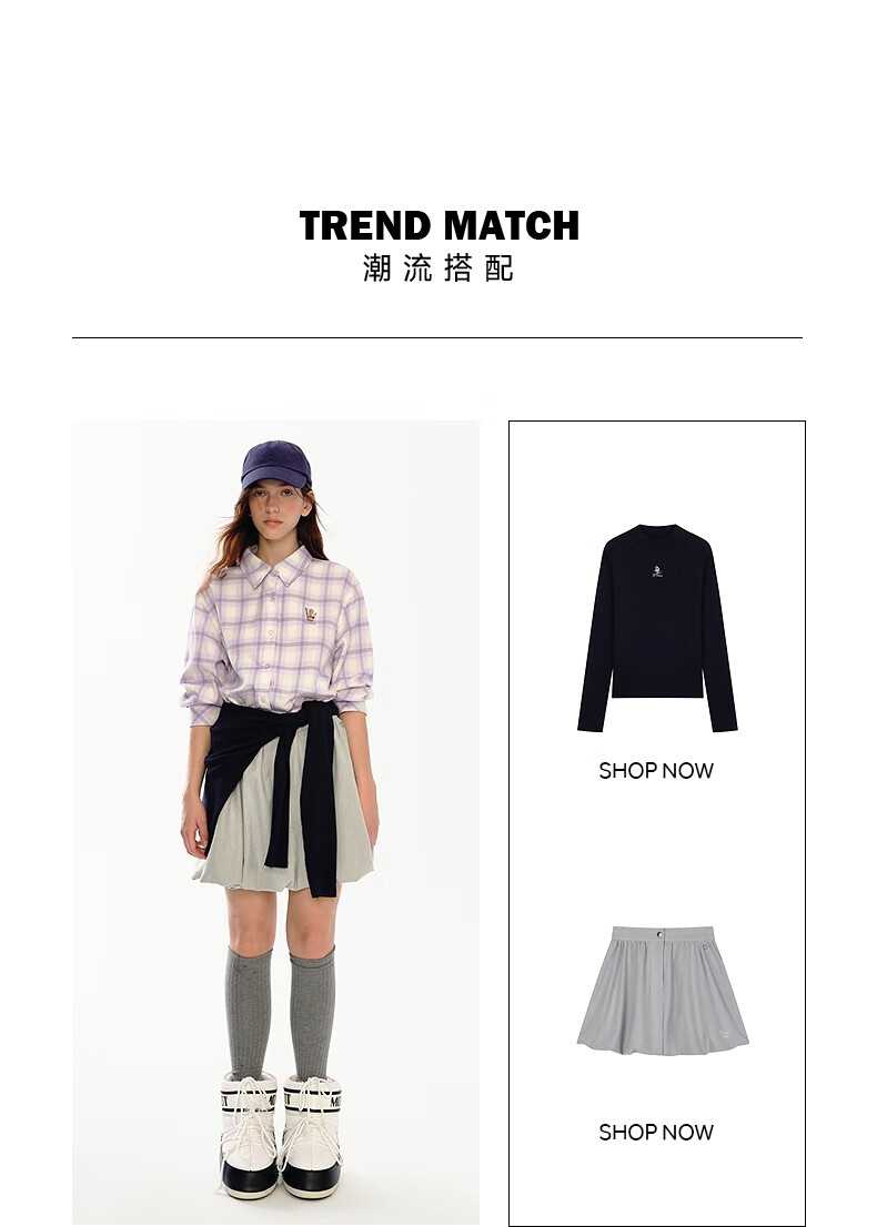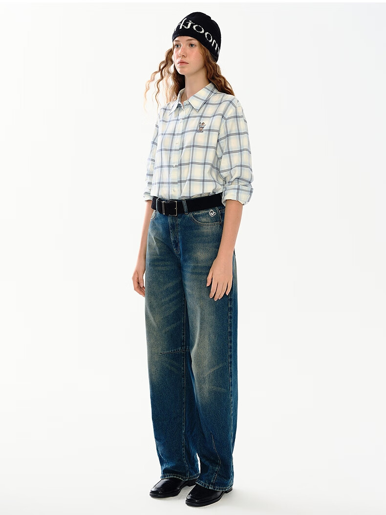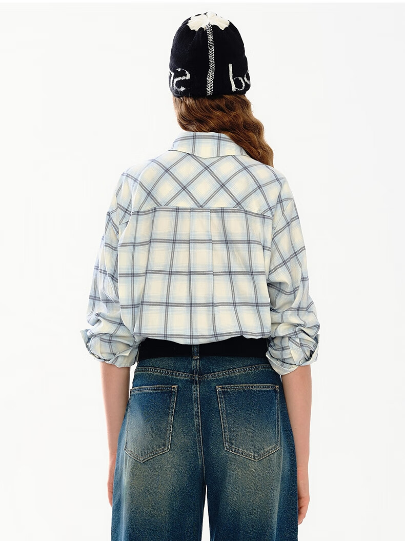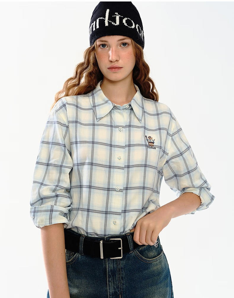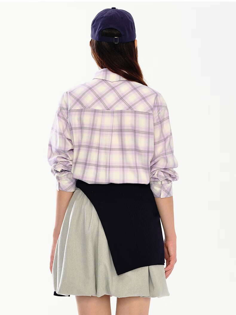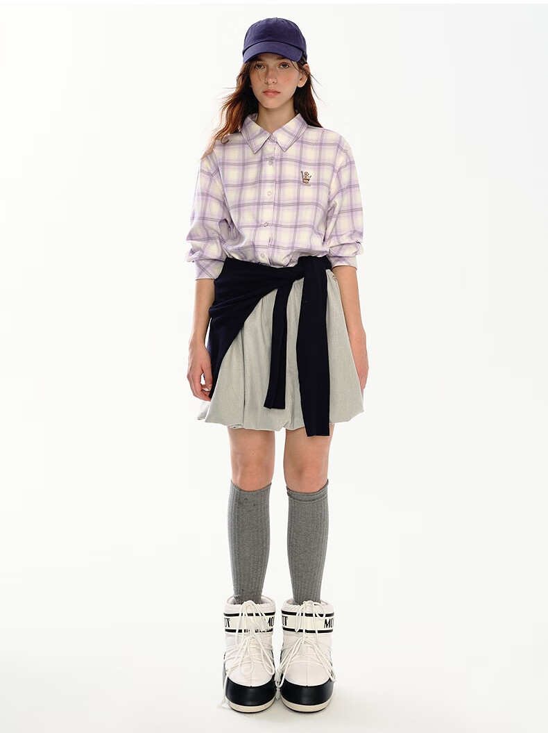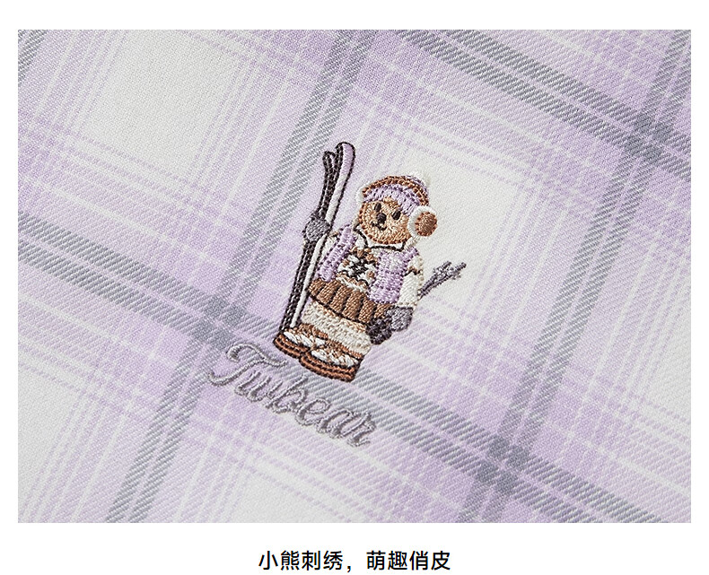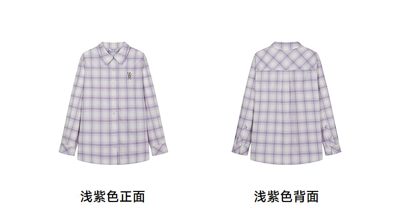 Teenie Weenie小熊女装衬衫2025秋季新款趣味刺绣彩色格纹翻领衬衫 浅紫色 S