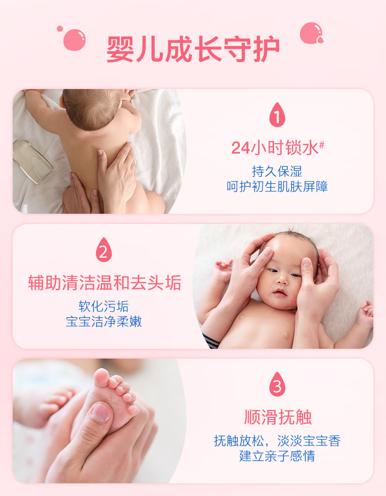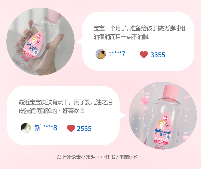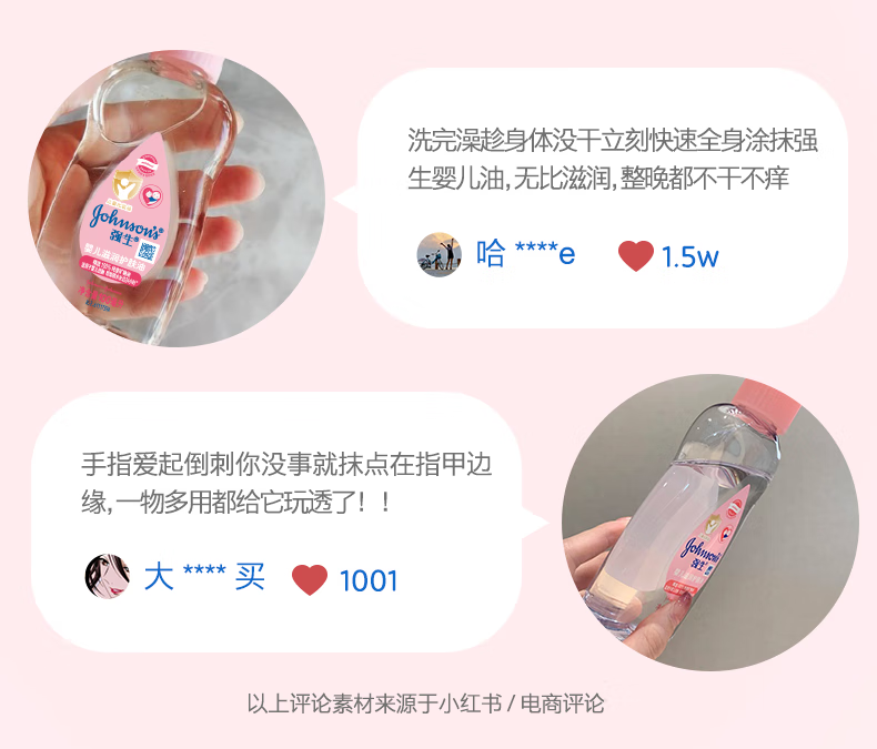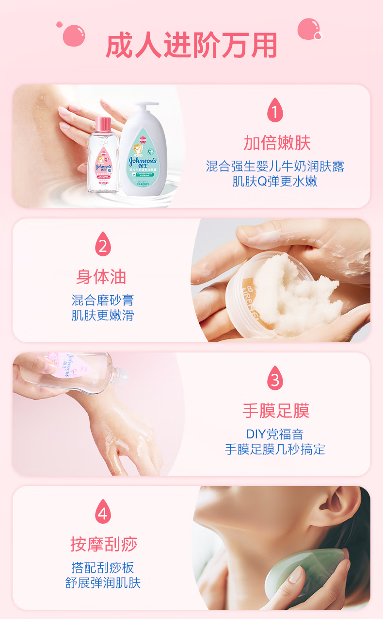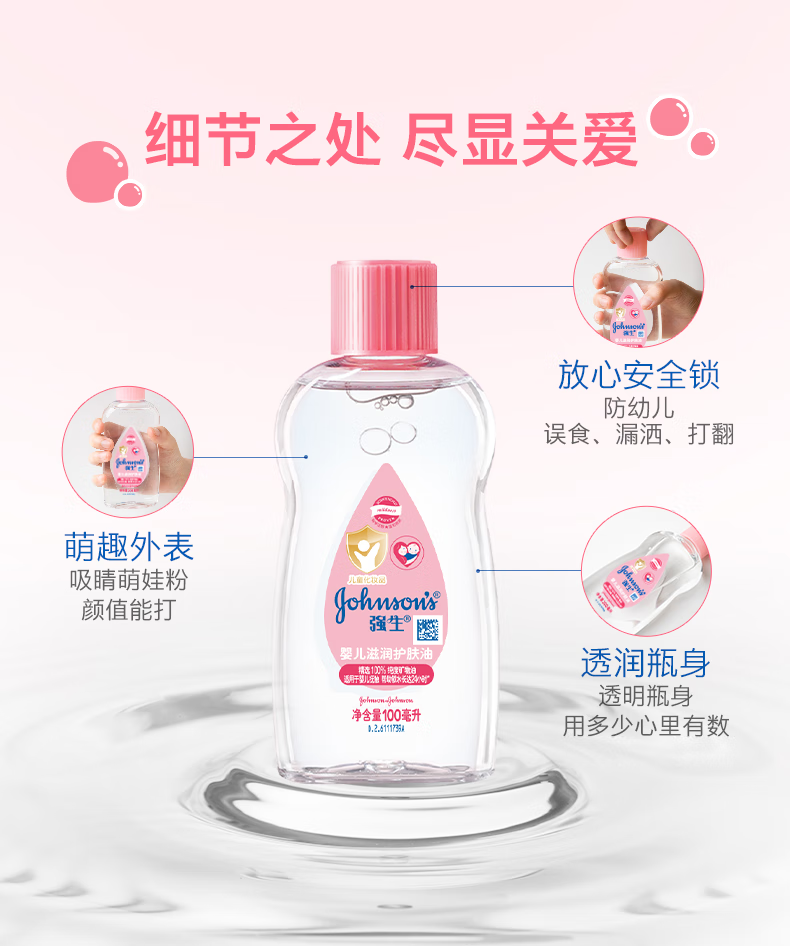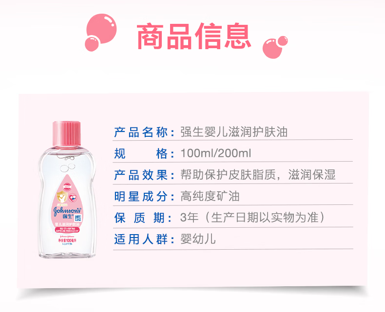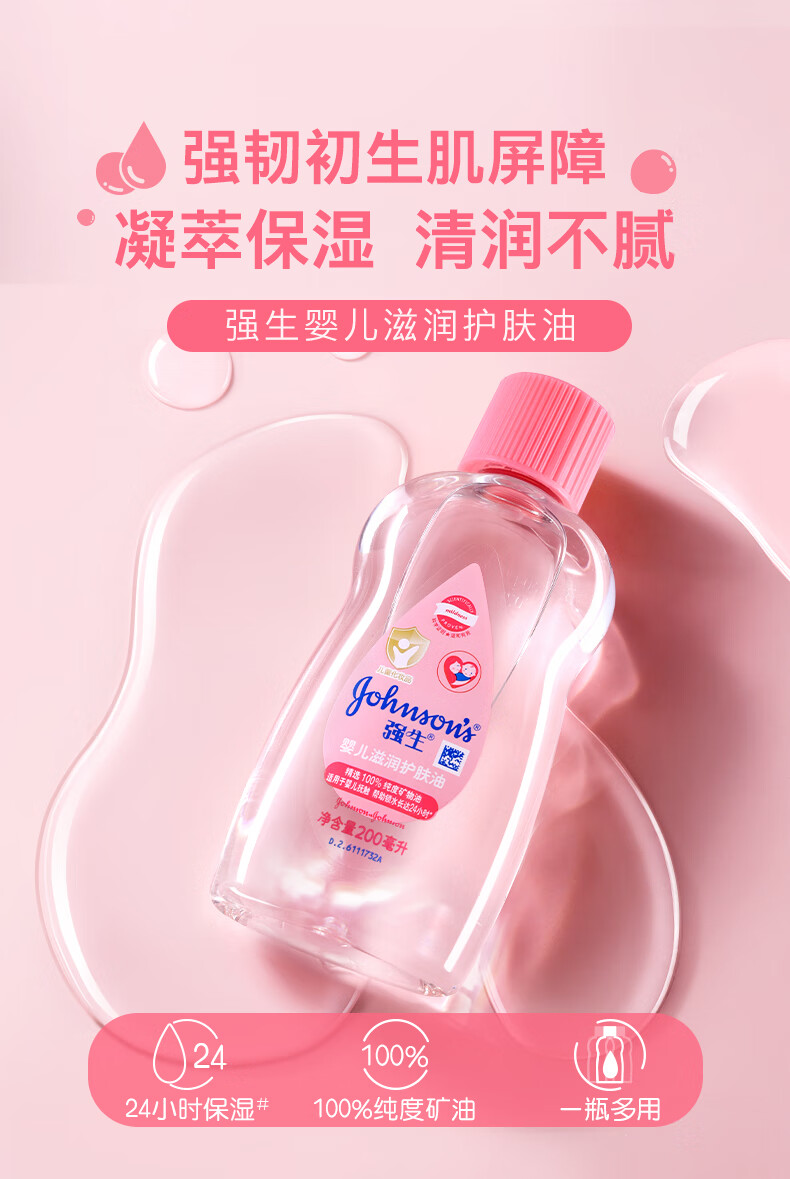 强生(Johnson)婴儿抚触油保湿护肤200m新生儿宝宝身体乳按摩精油护手防干全家用