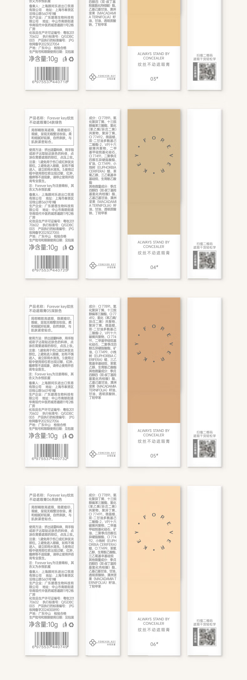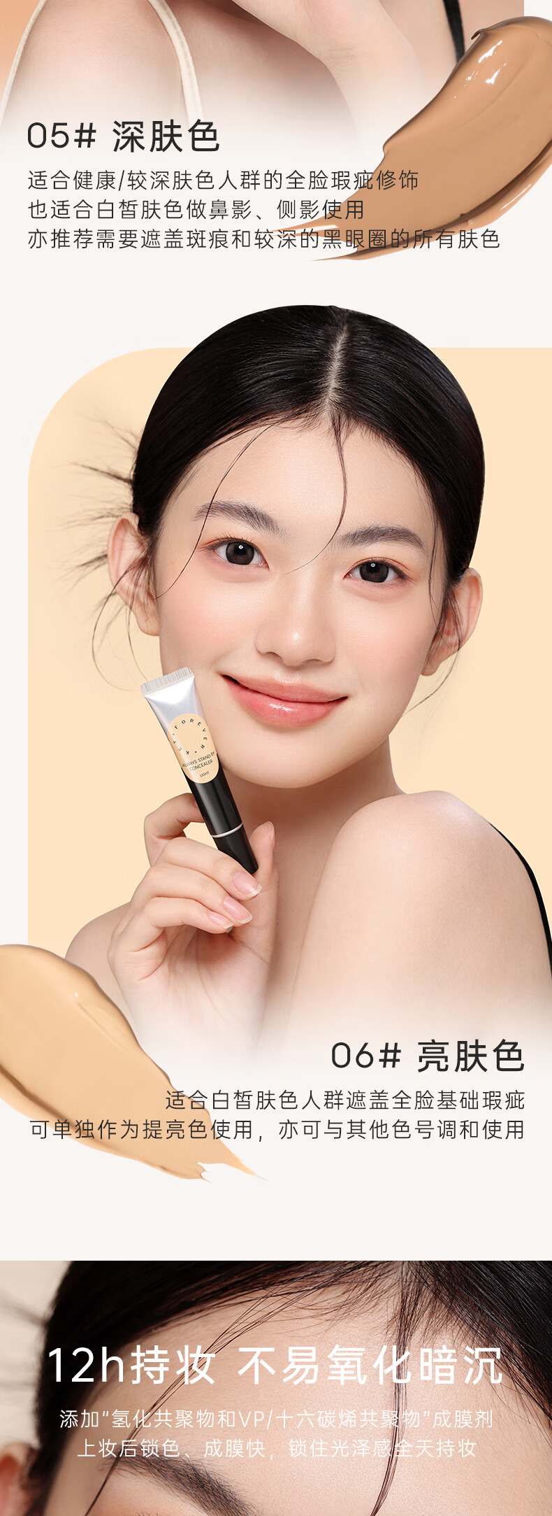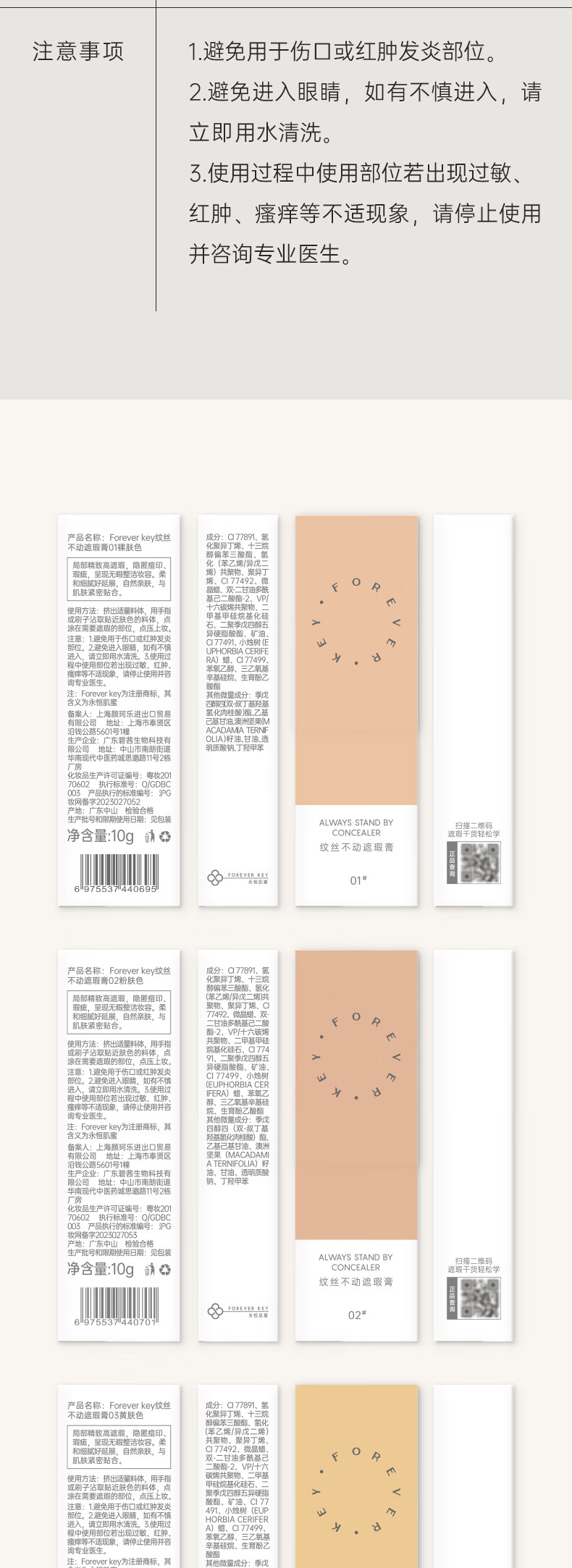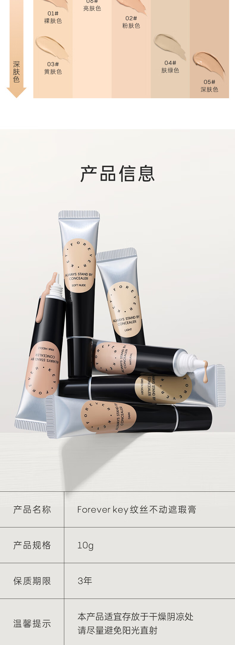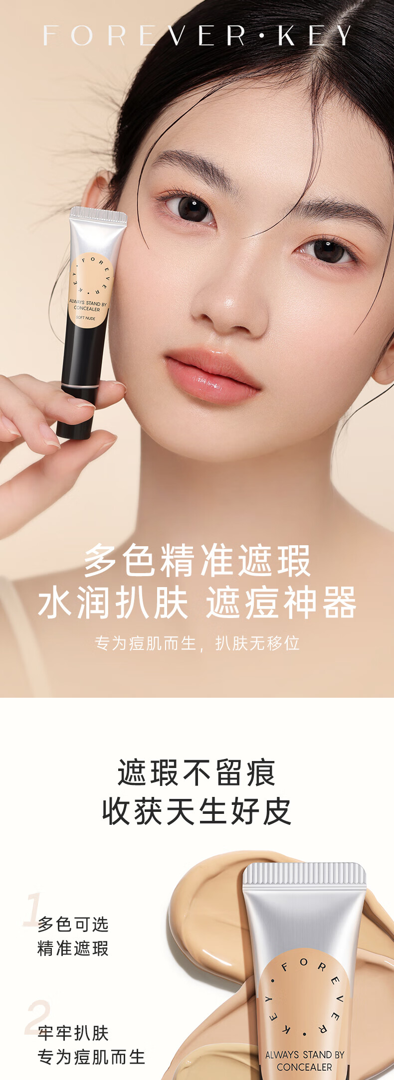 FOREVER·KEY遮瑕膏遮暇液笔遮盖斑点脸部黑眼圈痘印女友新年礼物 01裸肤色