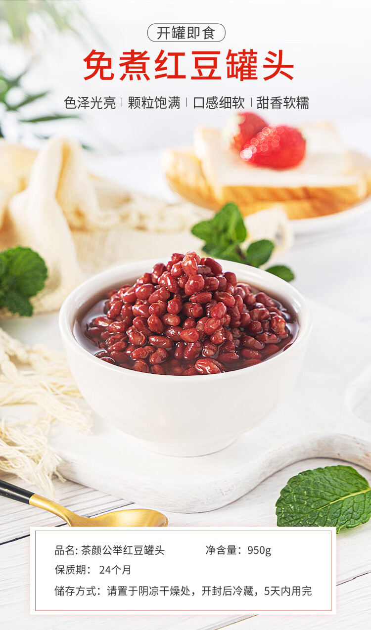茶颜公举熟红豆罐头糖纳蜜即食免煮甜品烘焙糖水蜜奶茶店原料专用 红豆罐头950g*1罐