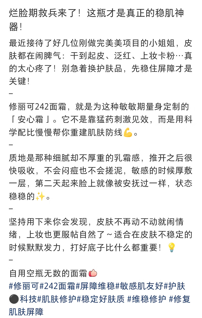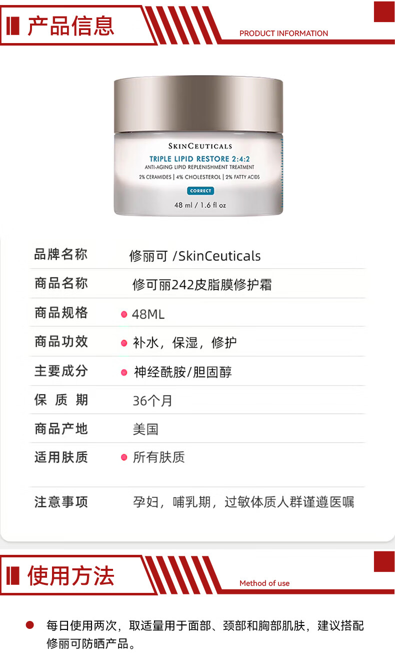 修丽可242面霜 神经酰胺皮脂膜 紧致保湿修护屏障敏感肌 送女友礼物 242面霜48G