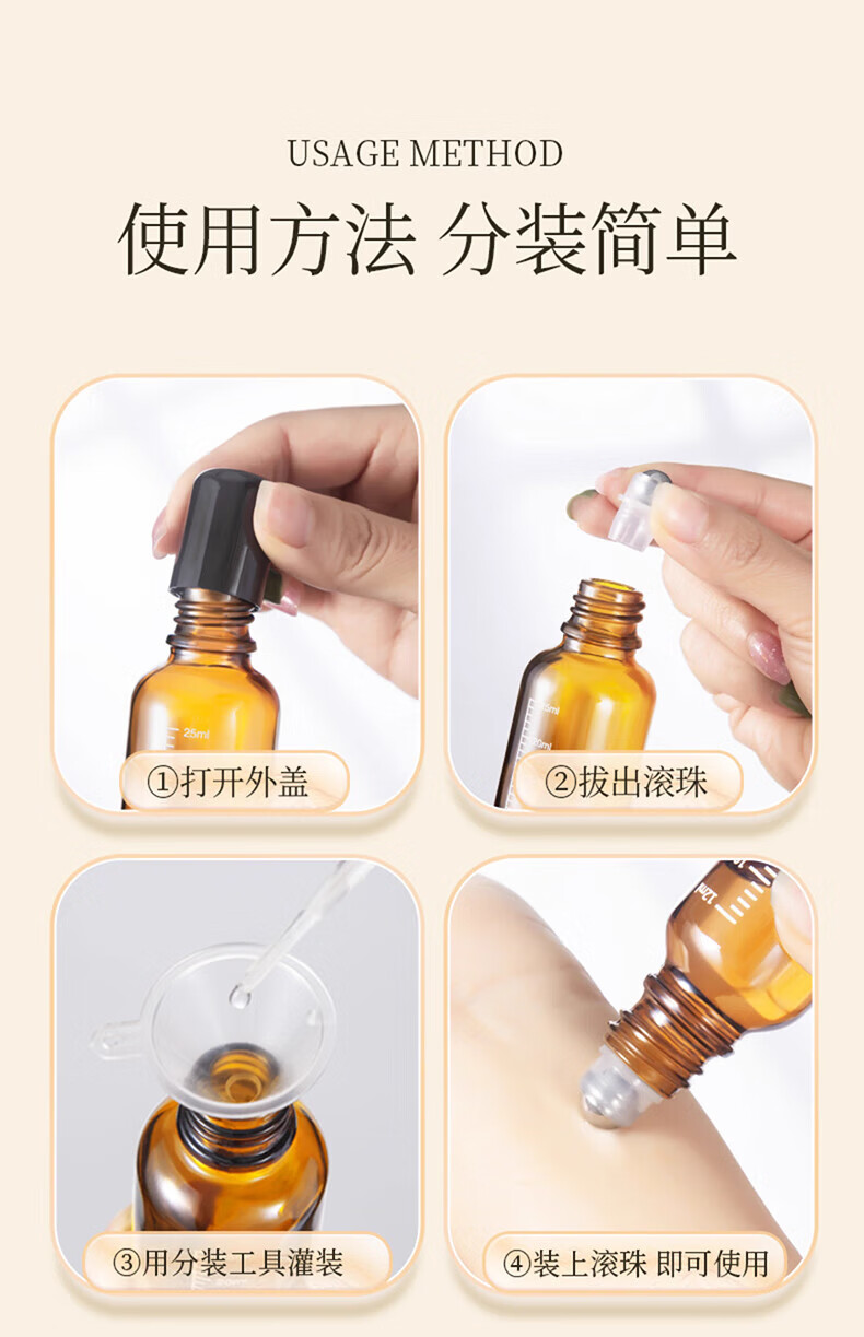 BQI滚珠分装瓶走珠上药器避光精油瓶香水分装瓶玻璃空药酒瓶子