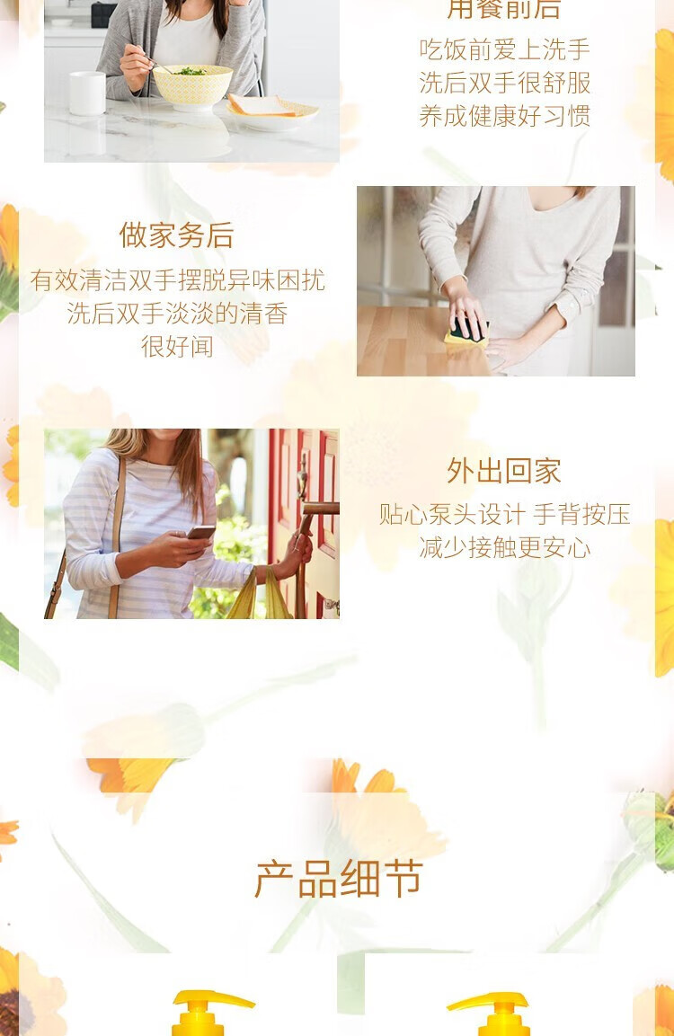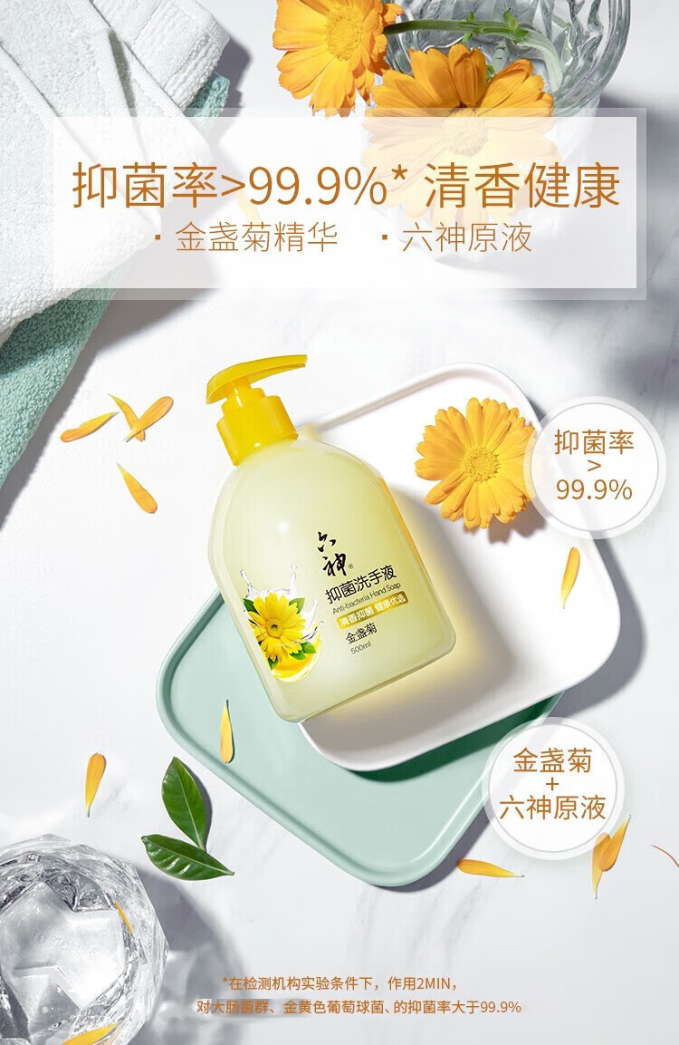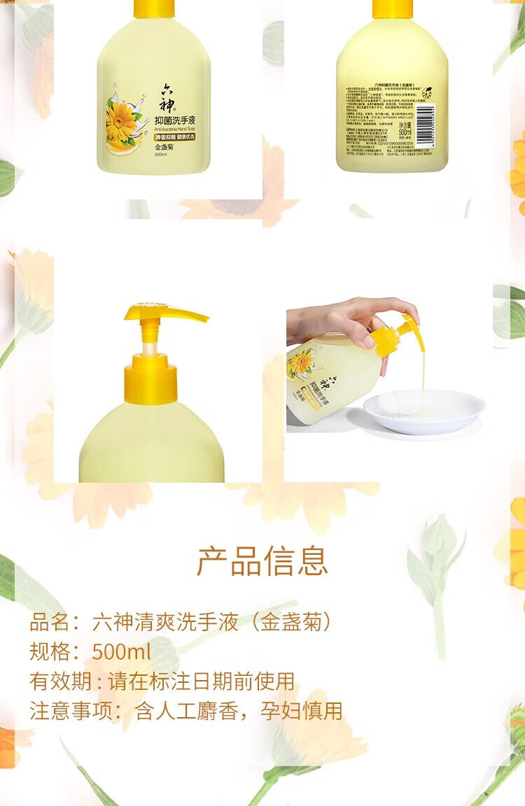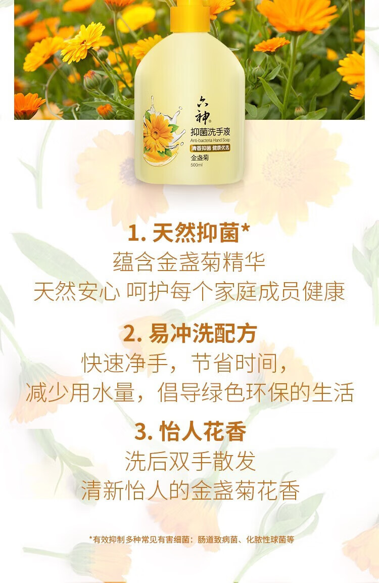 六神洗手液金盏菊抑菌洗手护手500ml(清爽 温和洁净 泡沫均衡 滋润)