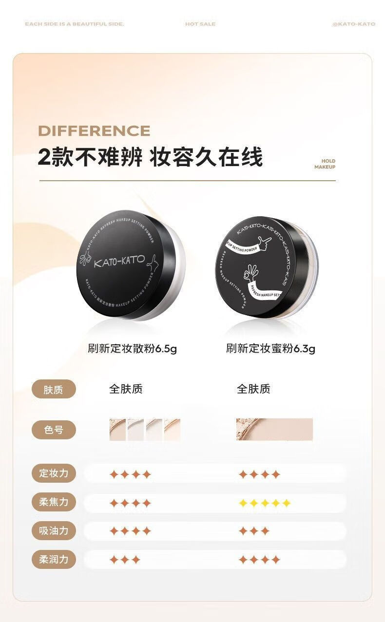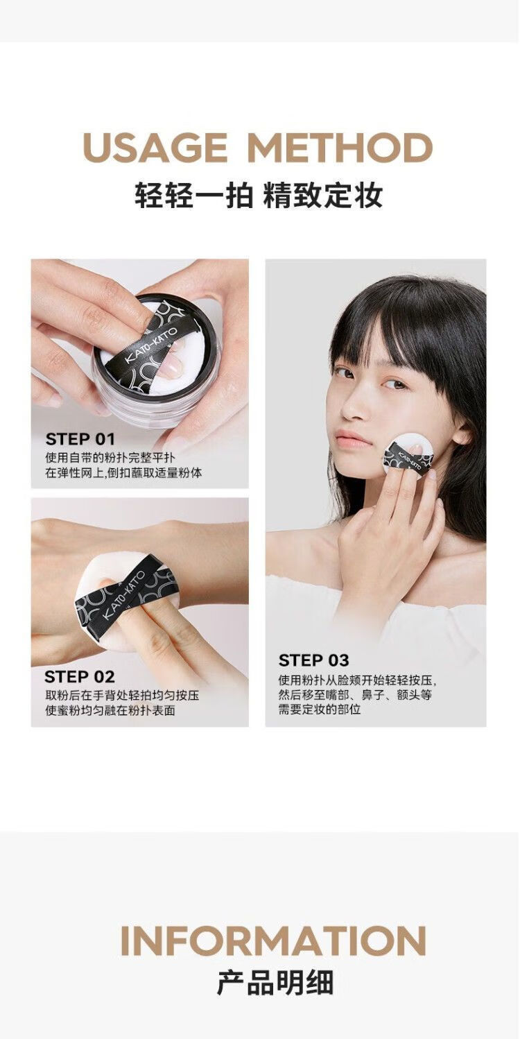 Kato散粉定妆持久不卡粉不脱妆控油轻薄自然磨皮蜜粉学生新款正品 透明色