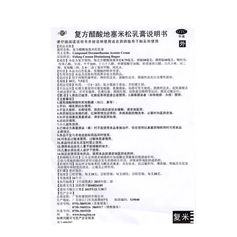 恒健 复方醋酸地塞米松乳膏 皮炎平搔痒神经性皮炎慢性湿疹止痒药 2盒