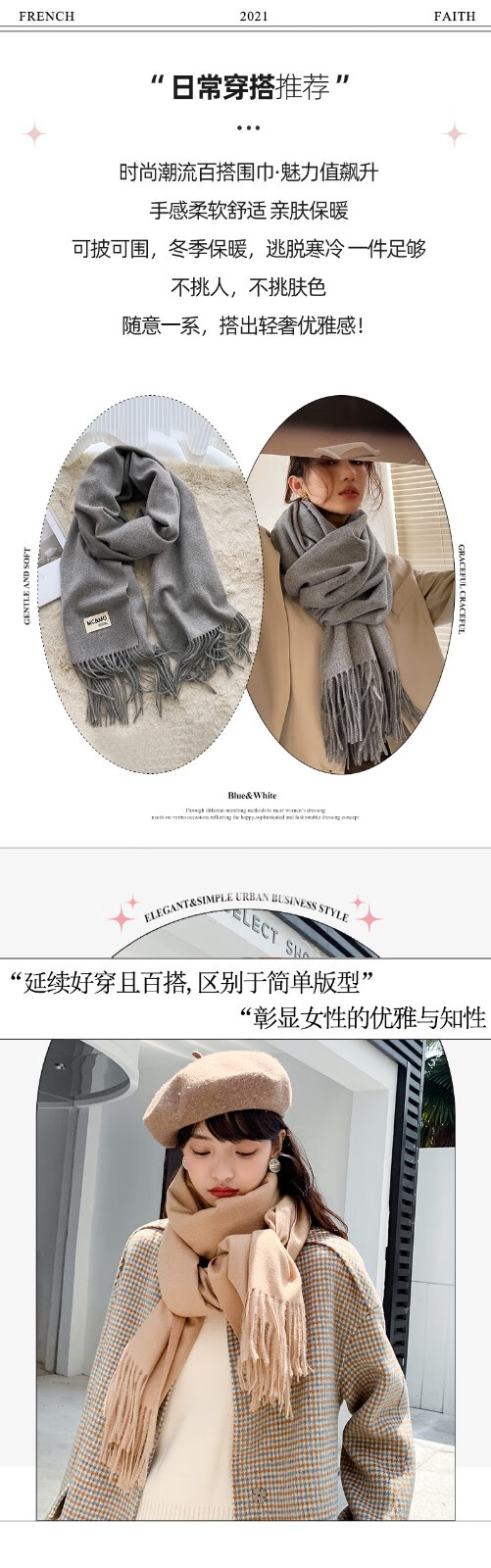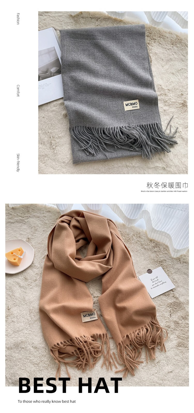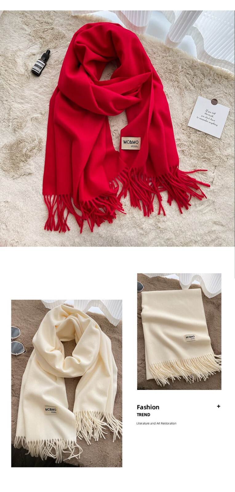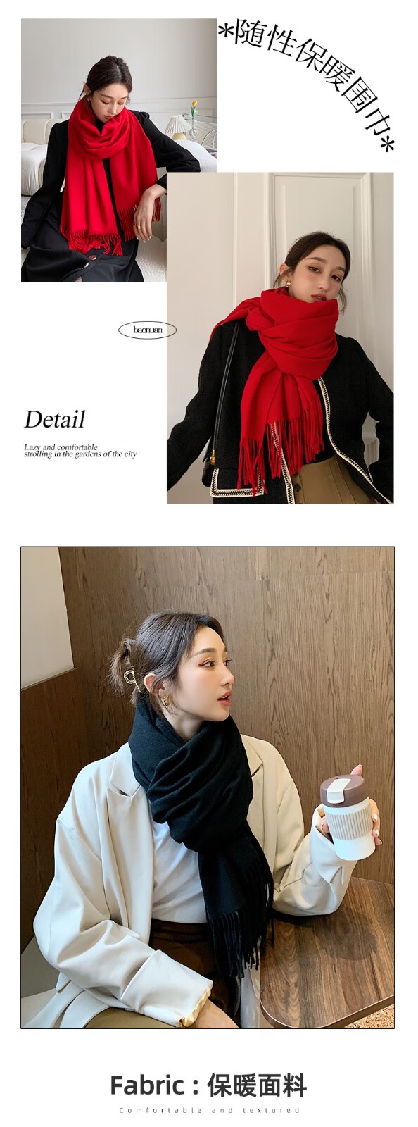 安妮洁欣纯色围巾女冬季新款纯色流苏披肩长款情侣保暖仿羊绒围脖元旦礼物 大红色 200*70cm