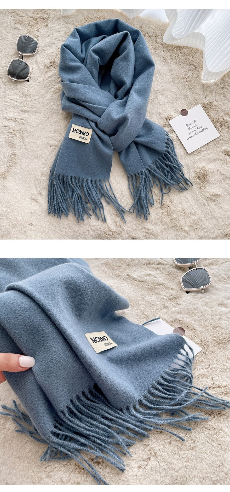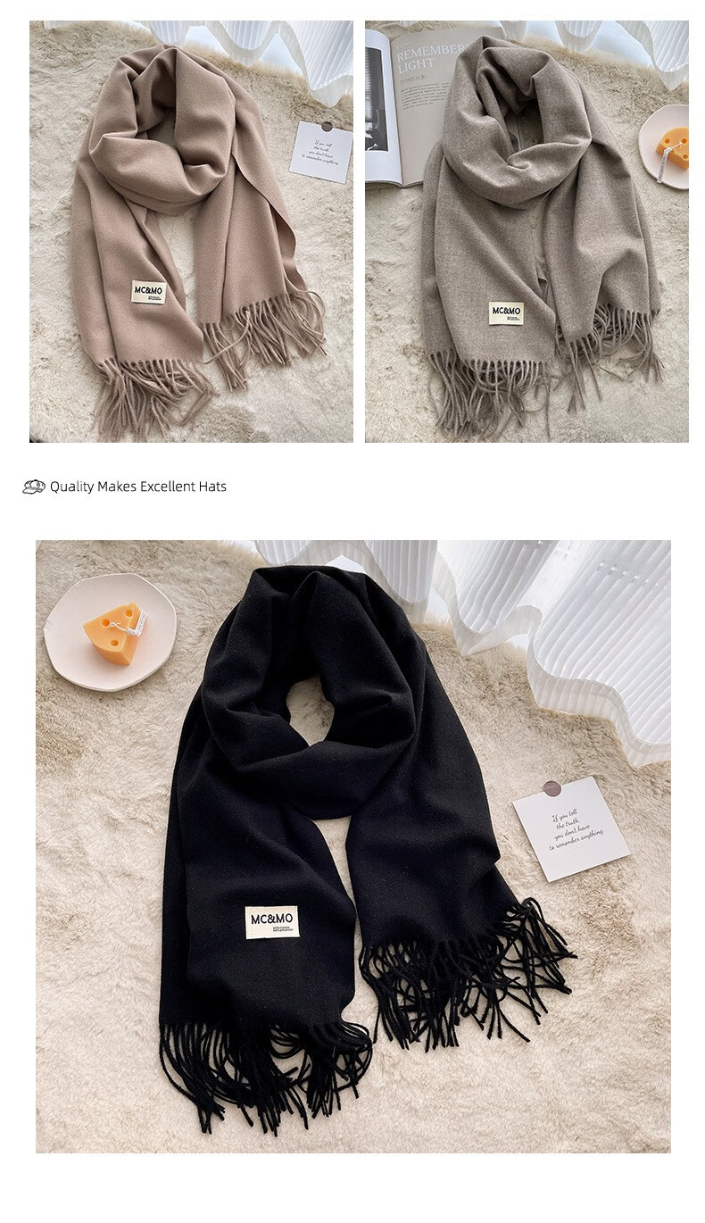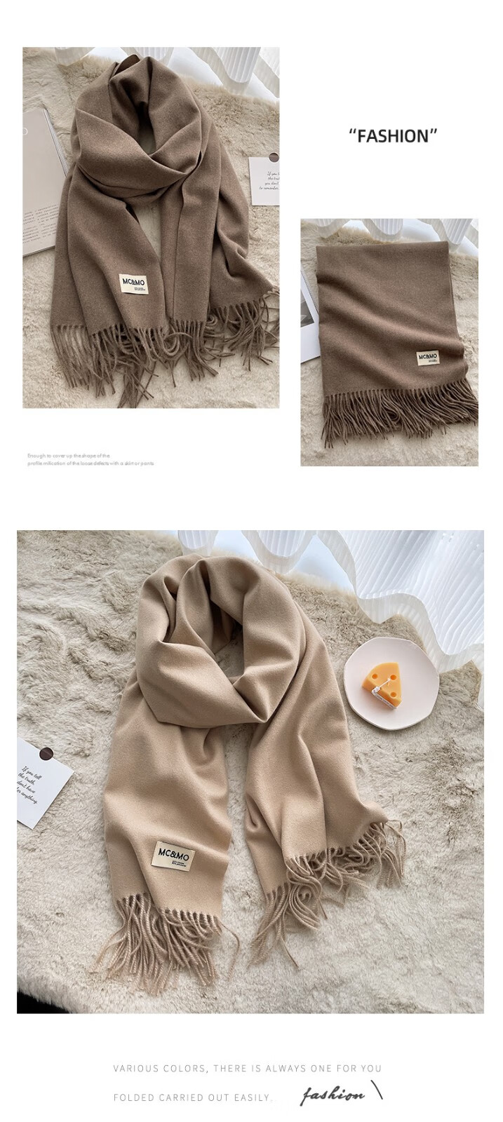 安妮洁欣纯色围巾女冬季新款纯色流苏披肩长款情侣保暖仿羊绒围脖元旦礼物 大红色 200*70cm