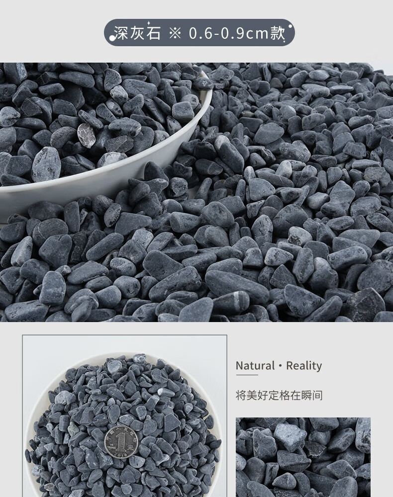 月明星稀50斤深灰色砾石黑色水洗石庭院园林造景花园装饰灰色小碎石子铺地 50斤深灰色砾石0.9-1.2厘米