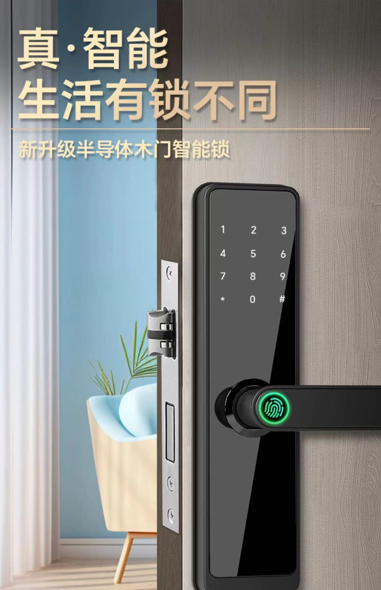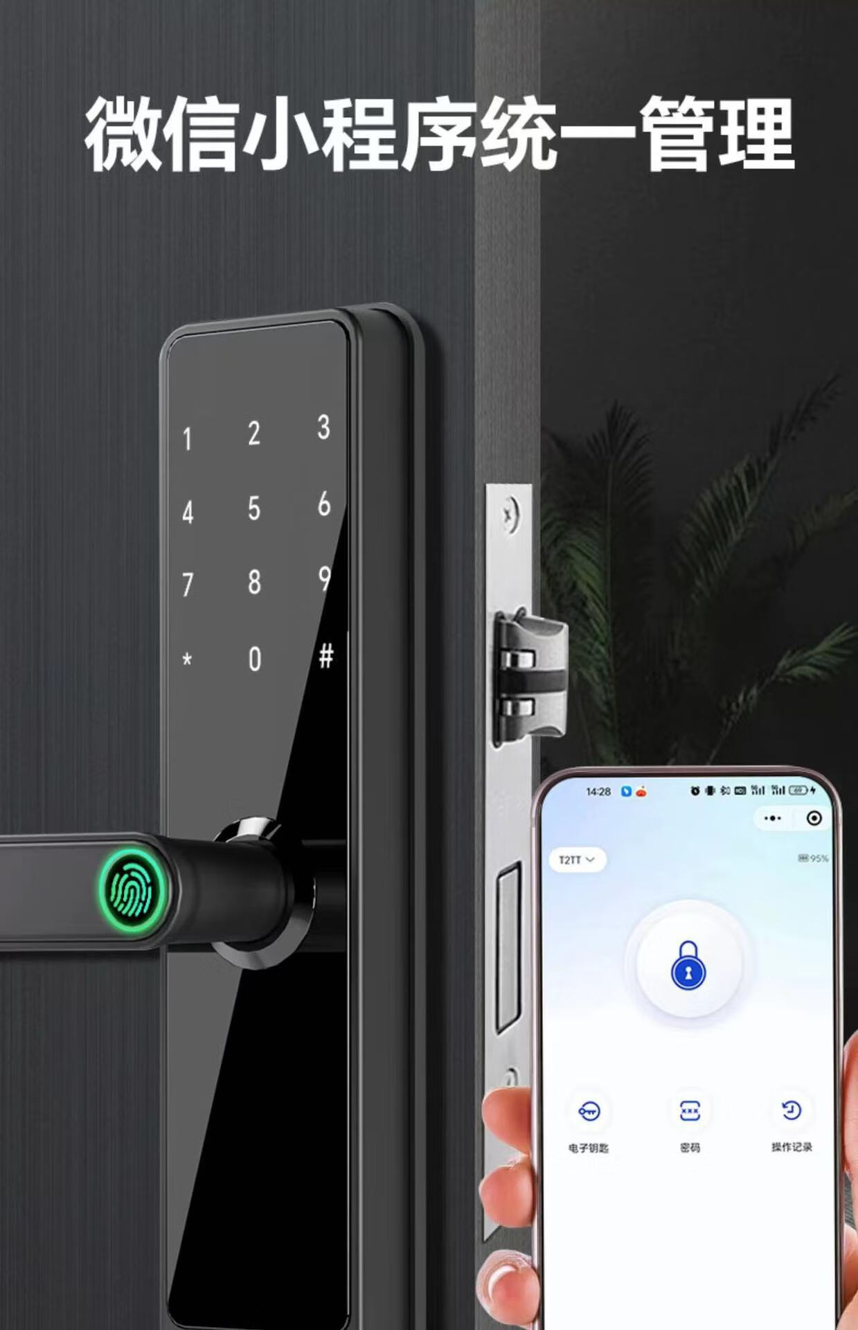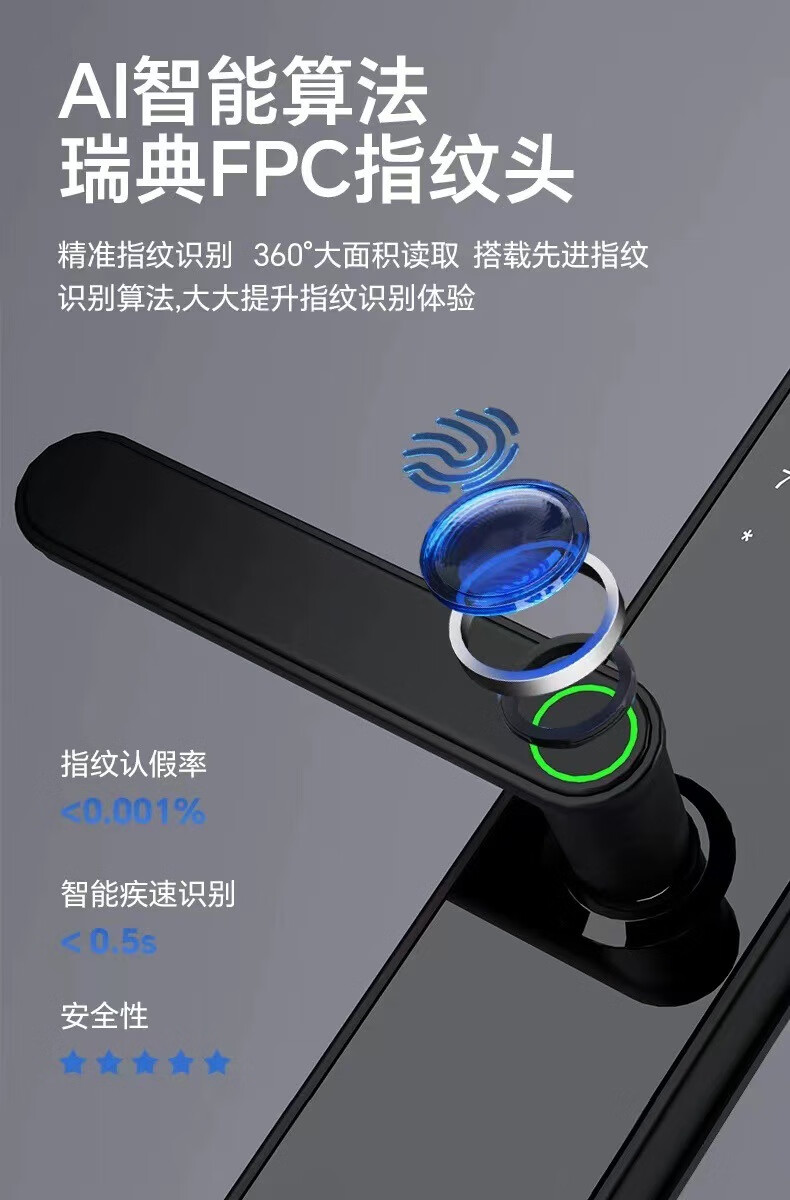 耐久木门指纹锁办公室密码锁卧室门家用智能锁公寓管理电子锁通通 S2带指纹