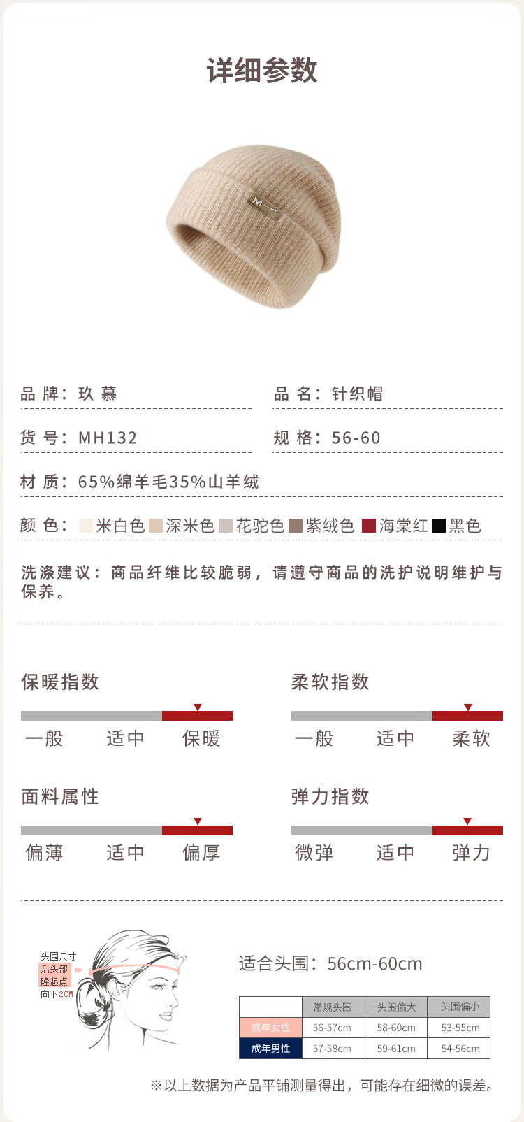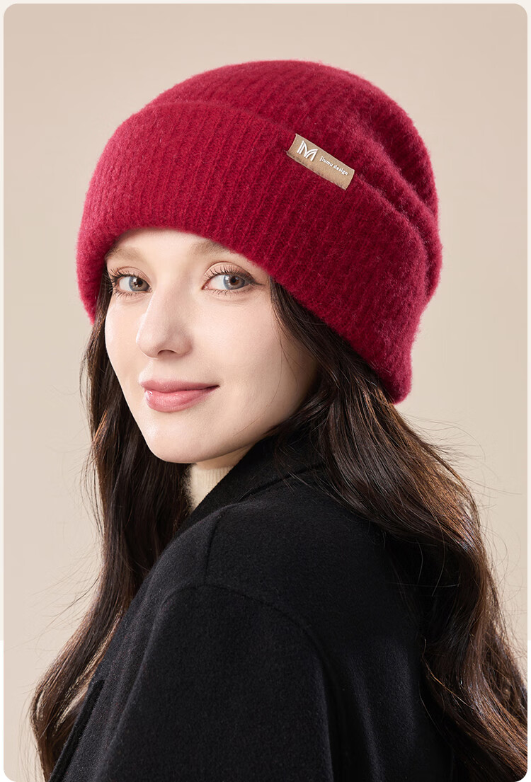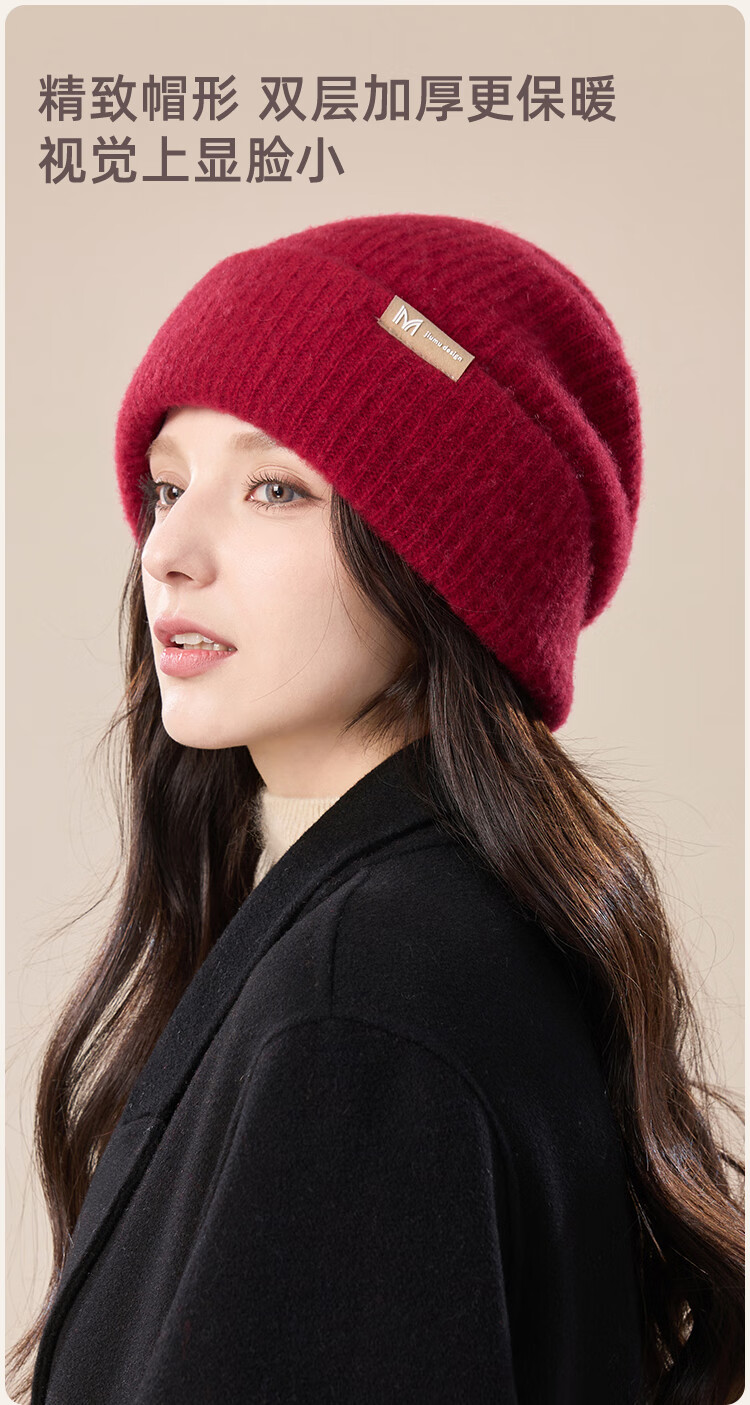 玖慕(JIUMU)山羊绒大头围保暖毛线帽秋冬羊毛针织帽冷帽冬帽堆堆帽防寒帽子女