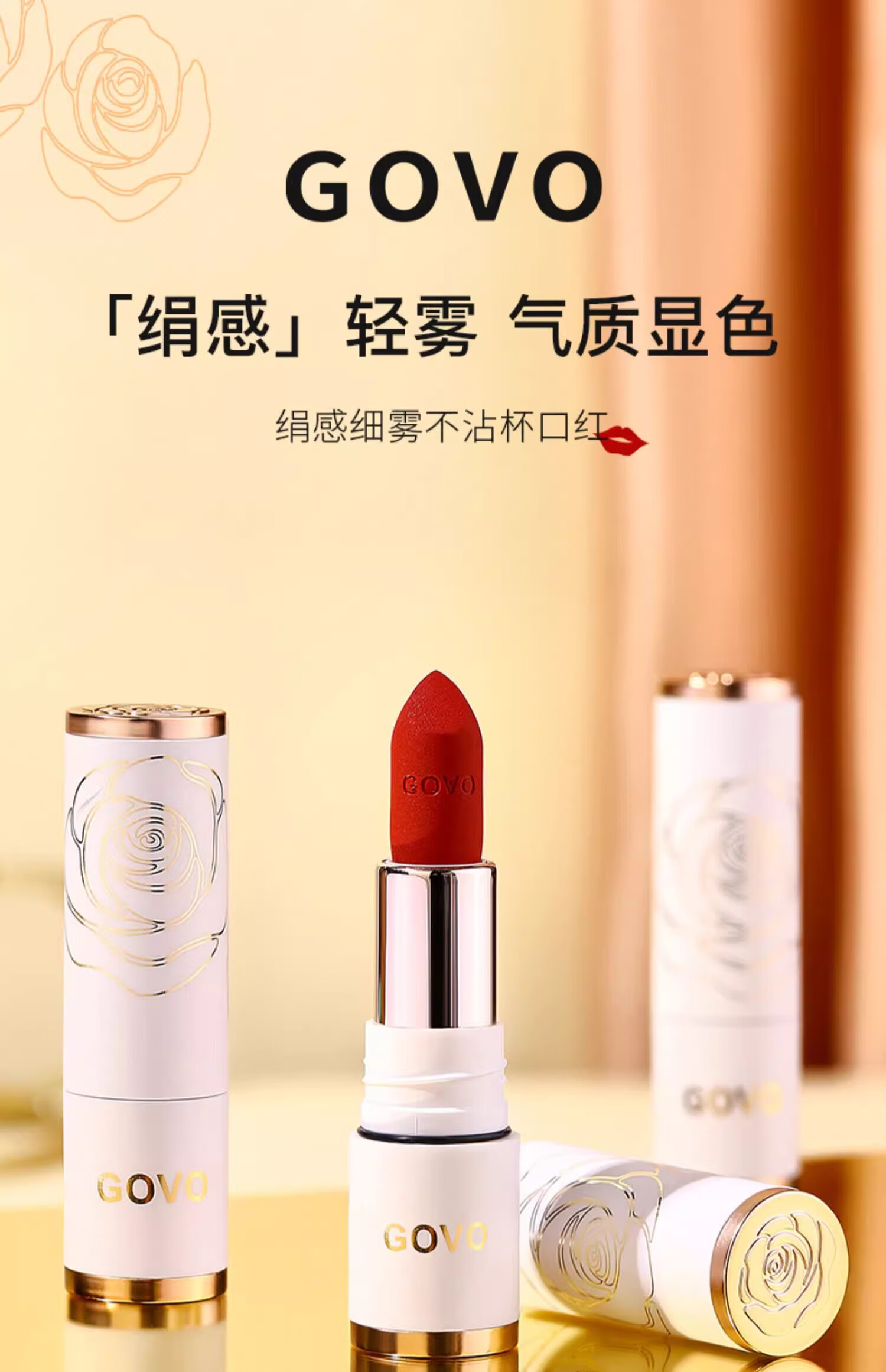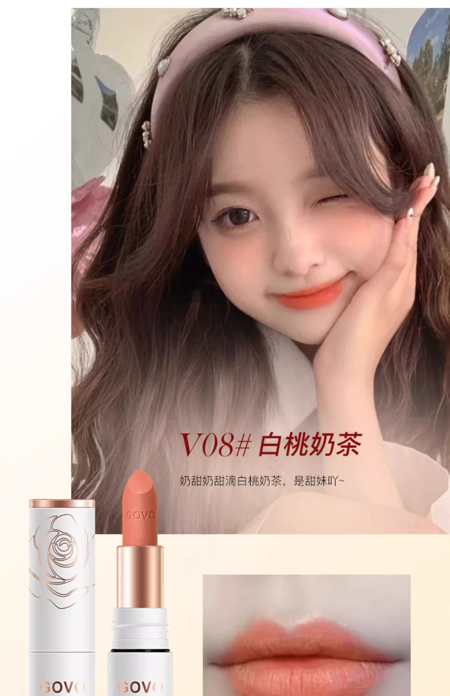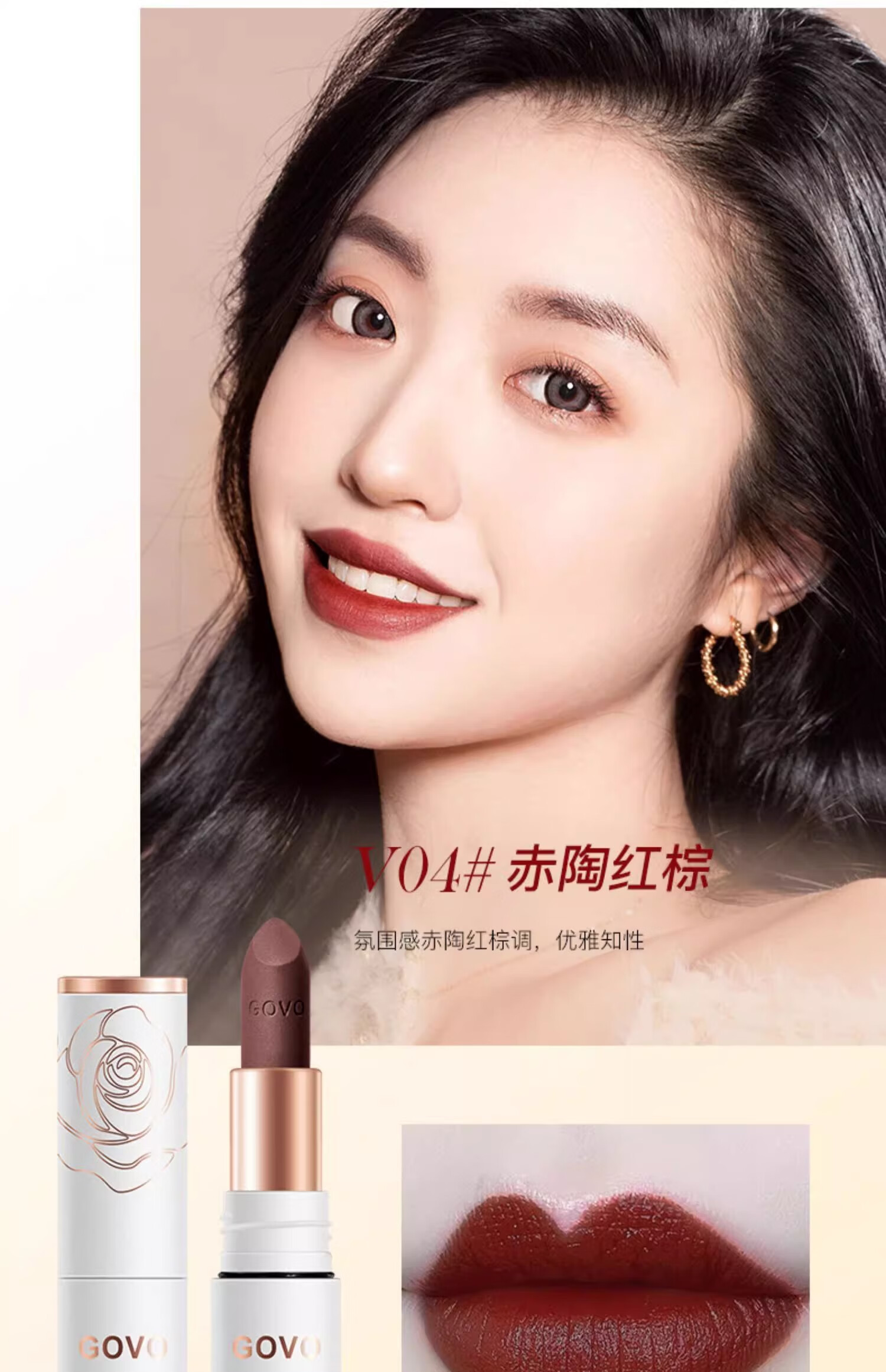 GOVO李佳琪直播正品不沾杯不掉色肉桂奶茶色口红哑光防水持久滋润大牌 V05#[杏仁豆沙]防水不掉色
