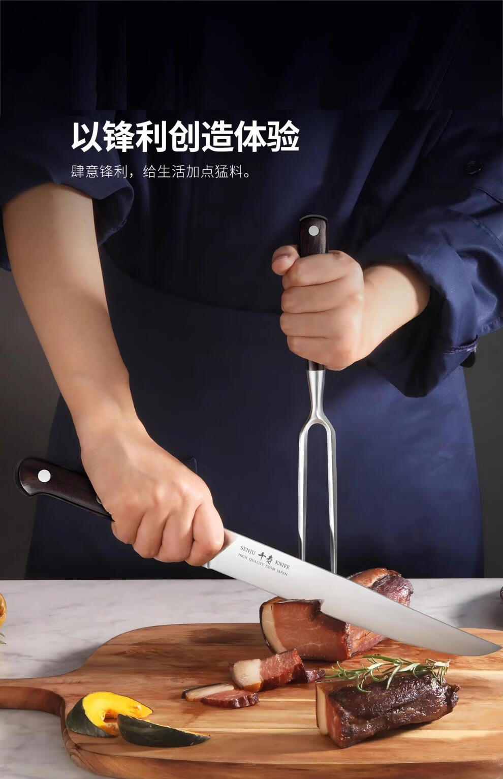 少凡德国进口品质西餐刀切牛排刀厨师铁板烧专用刀叉火腿烤肉刀战斧 黄色 60°以下_17.8cm_125mm