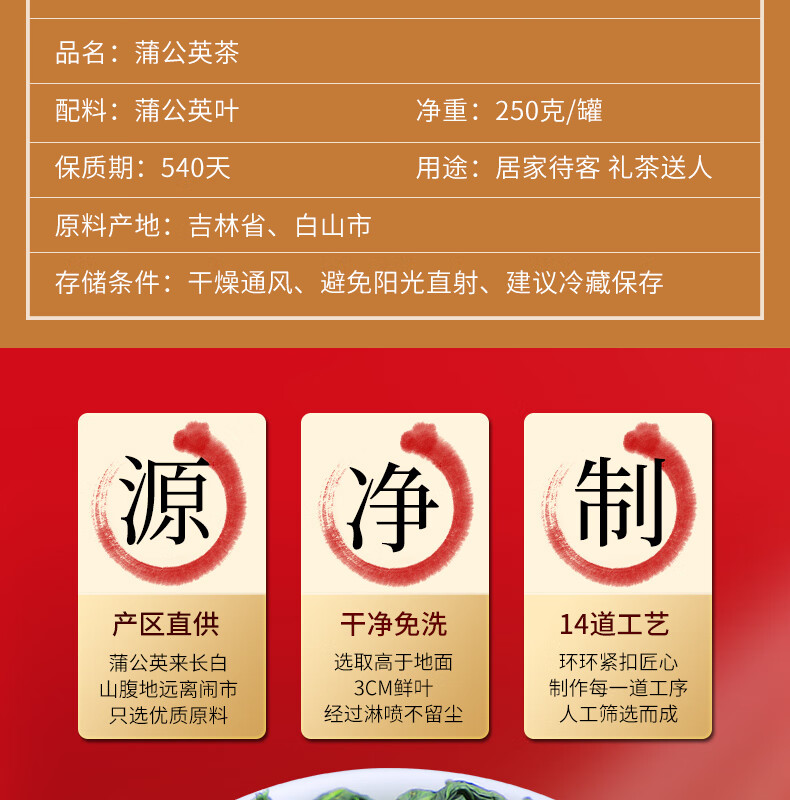 胖东来同款蒲公英茶特级野生茶三年枞采摘长白山根叶非特级野生通