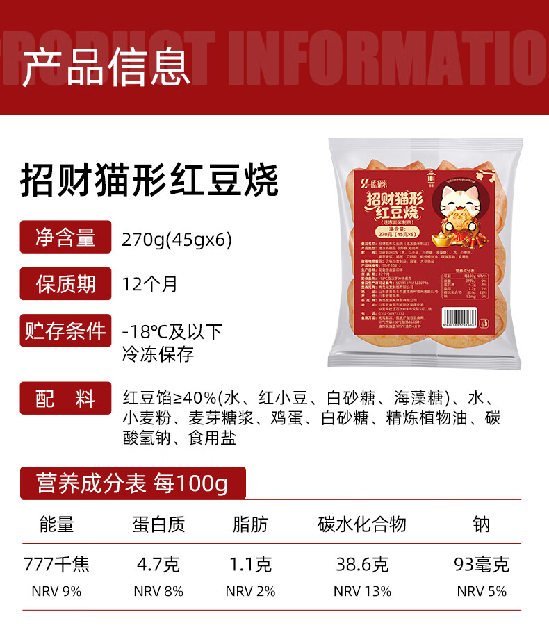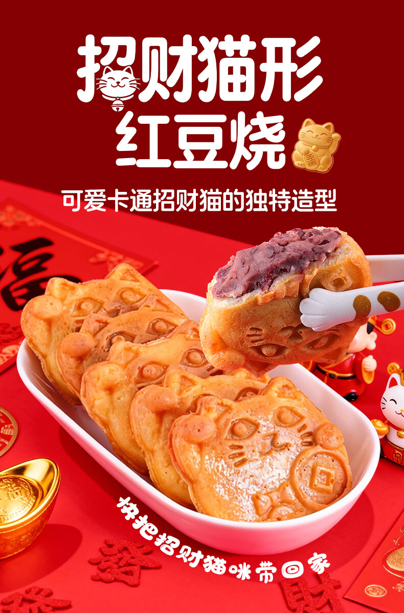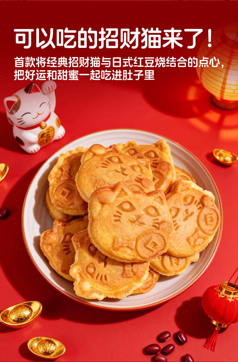 shengyuanlai招财猫形红豆烧日式鲷鱼烧卡通造型红豆饼夹心馅饼空气炸锅半成品 招财猫红豆烧270g*1