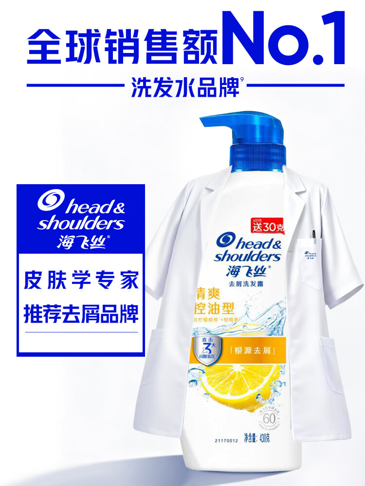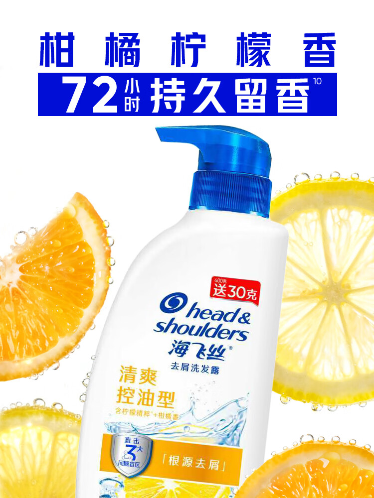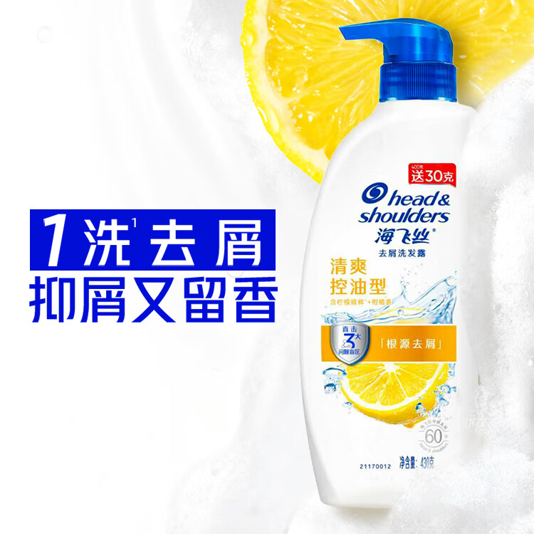 海飞丝去屑洗发水男士女士清爽去油430g洗头膏洗发露洗发液控油蓬松
