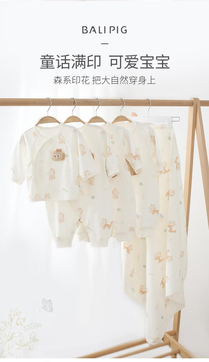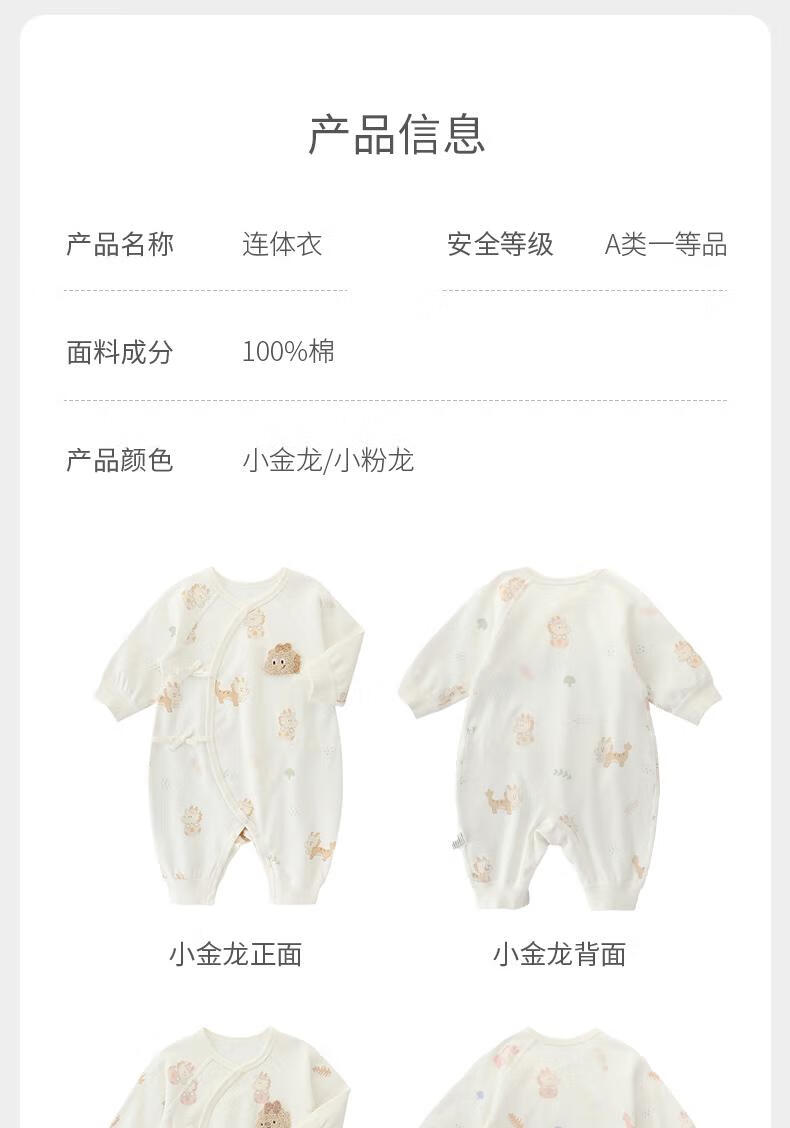 巴厘小猪(BALIPIG)【云雾棉】新生婴儿连体衣秋季纯棉哈衣绑带衣服 小金龙 52cm