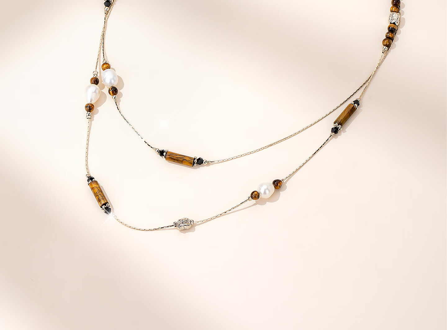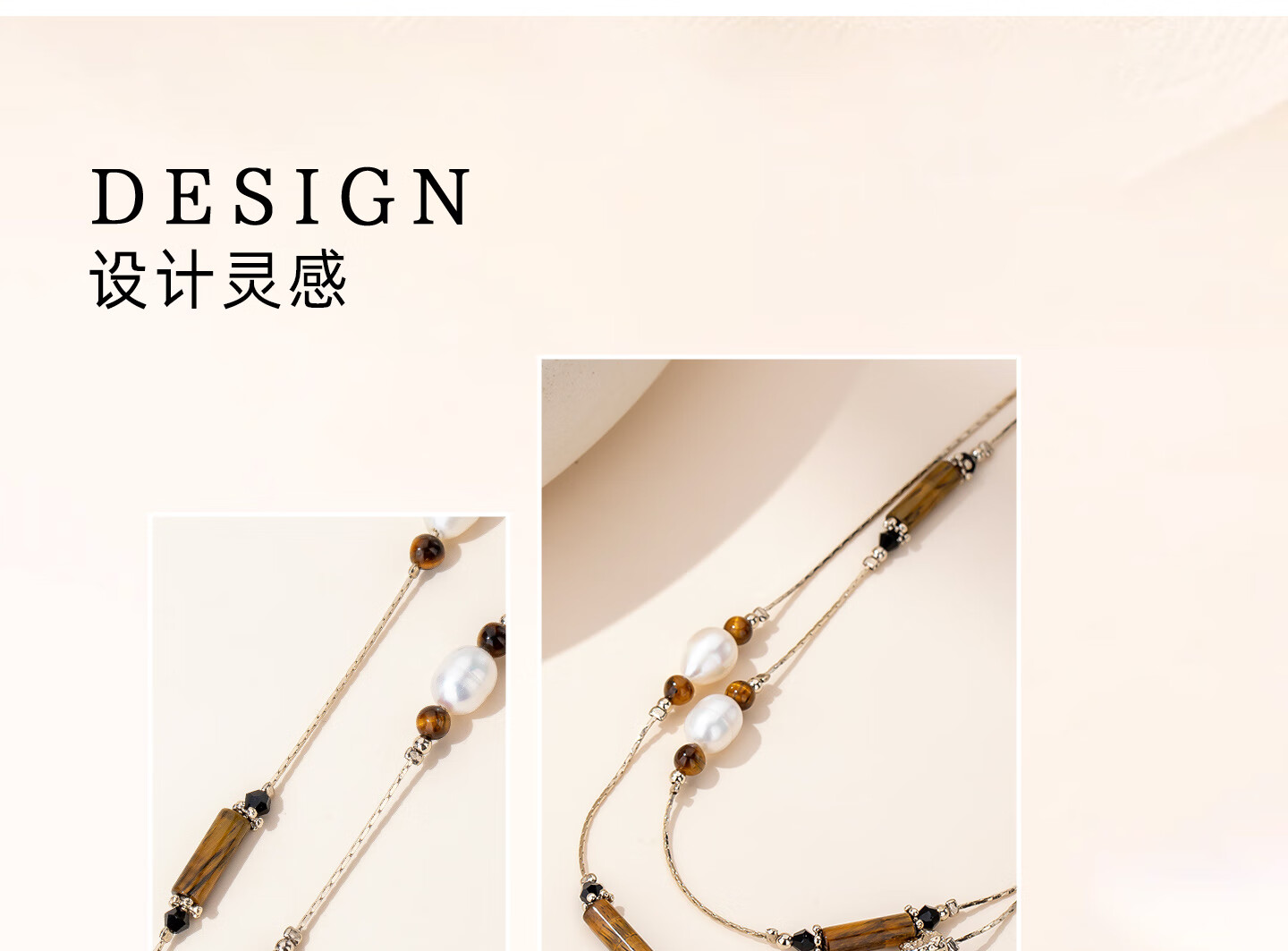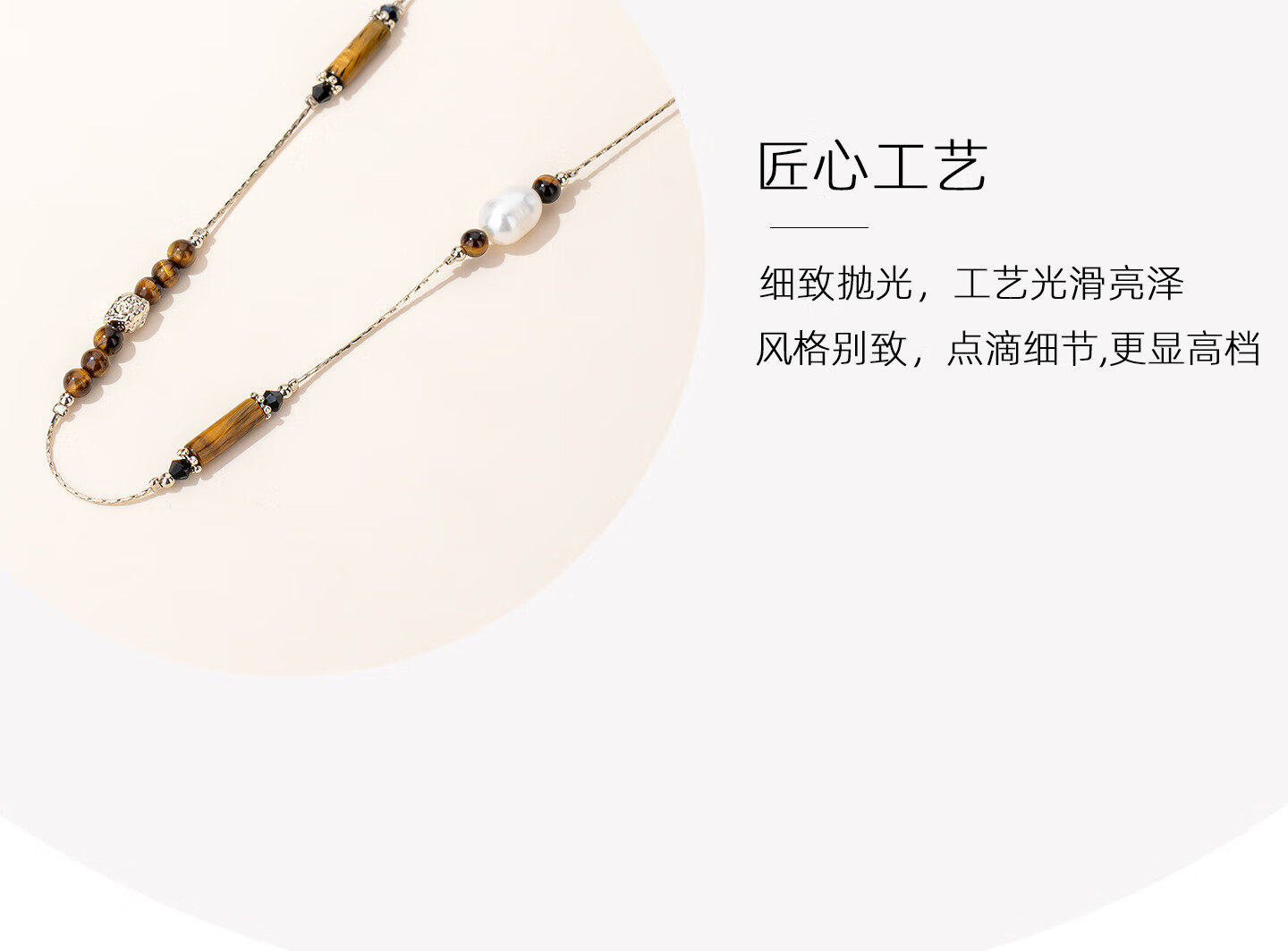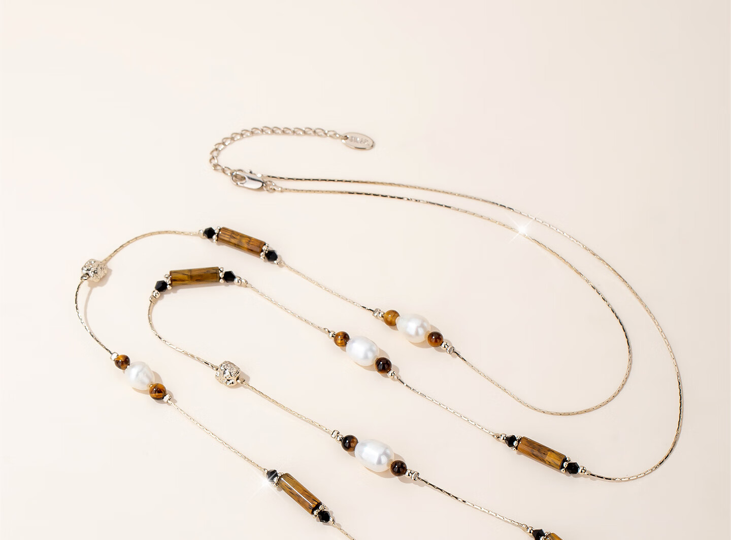 Qlady虎眼石双层珍珠项链女长款高级感轻奢小众2026新年秋冬毛衣链配饰