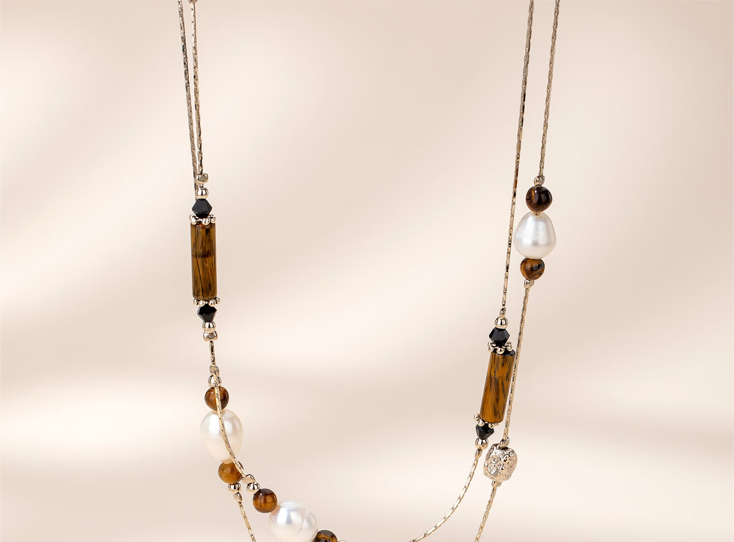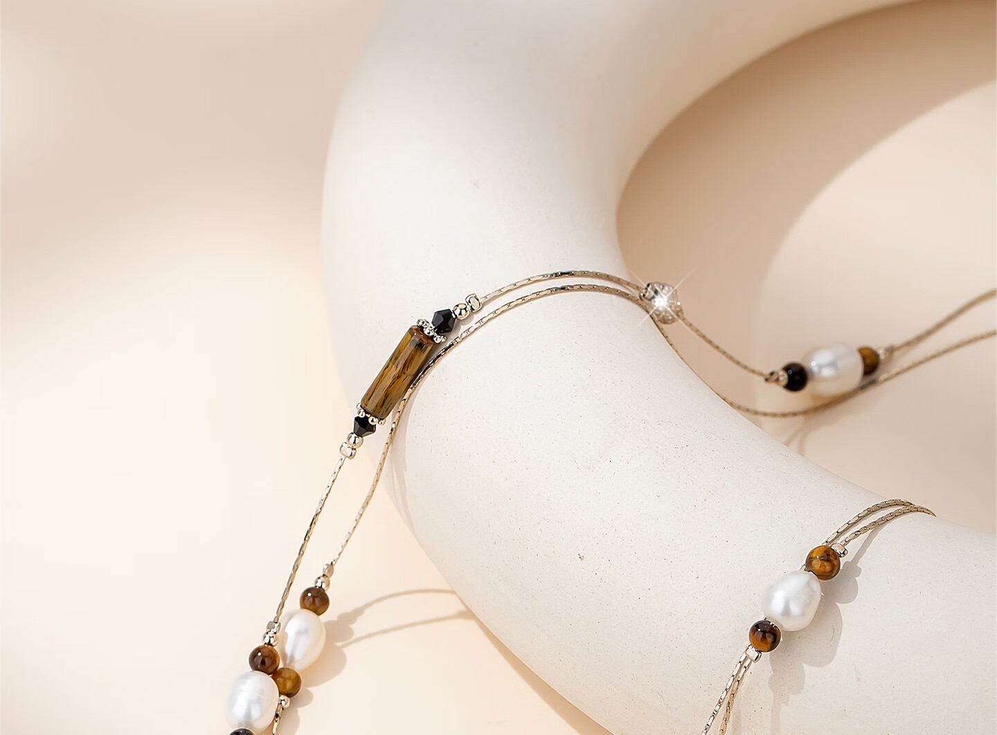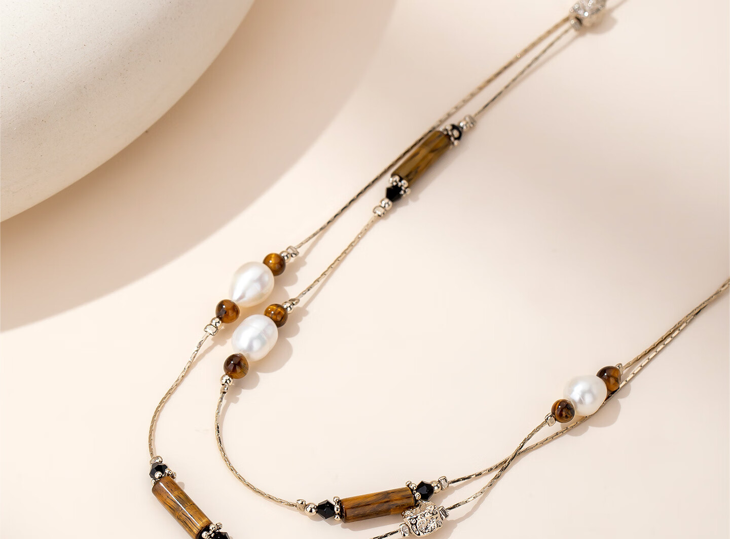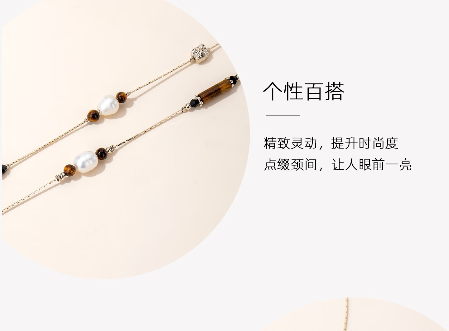 Qlady虎眼石双层珍珠项链女长款高级感轻奢小众2026新年秋冬毛衣链配饰