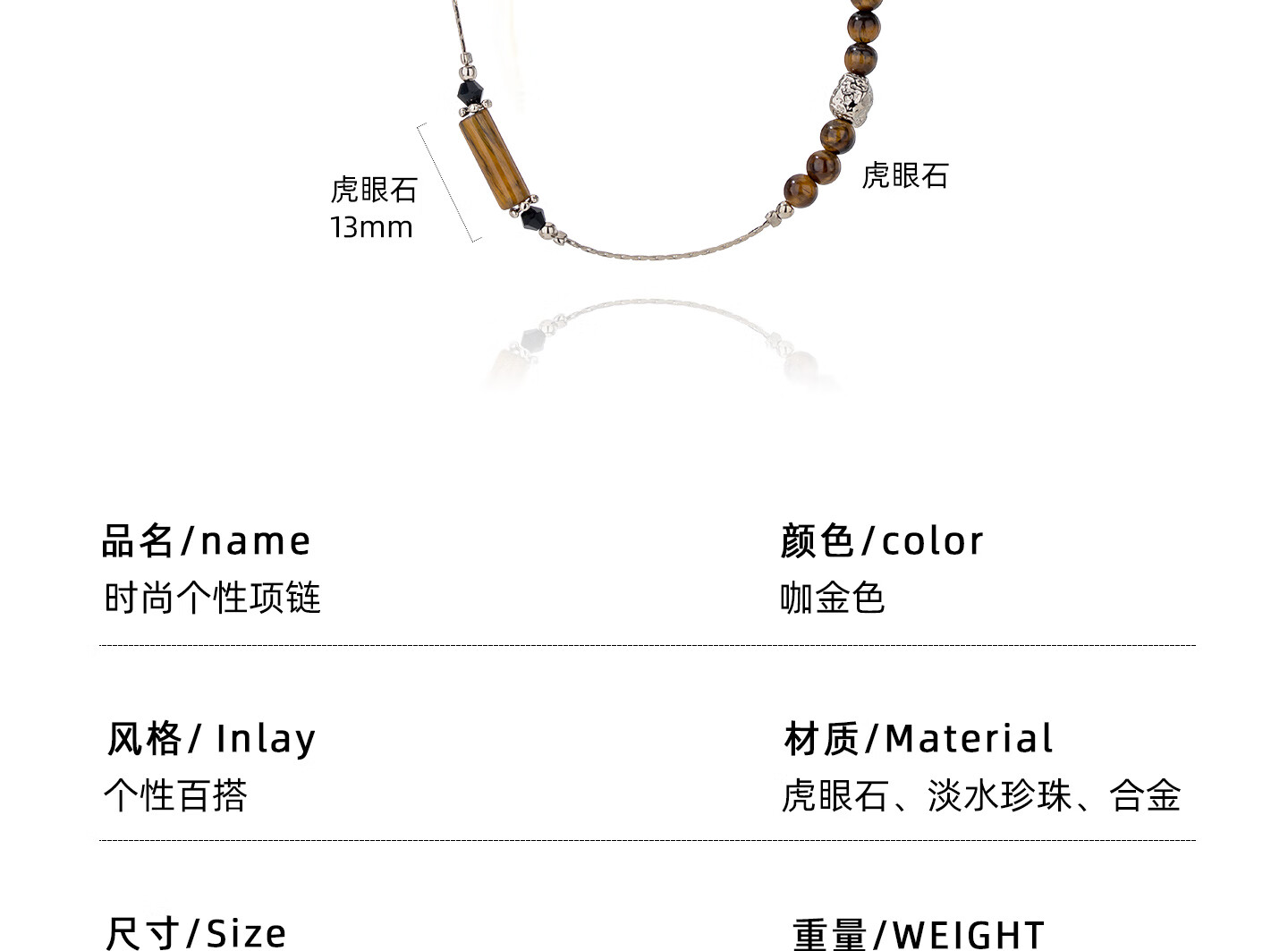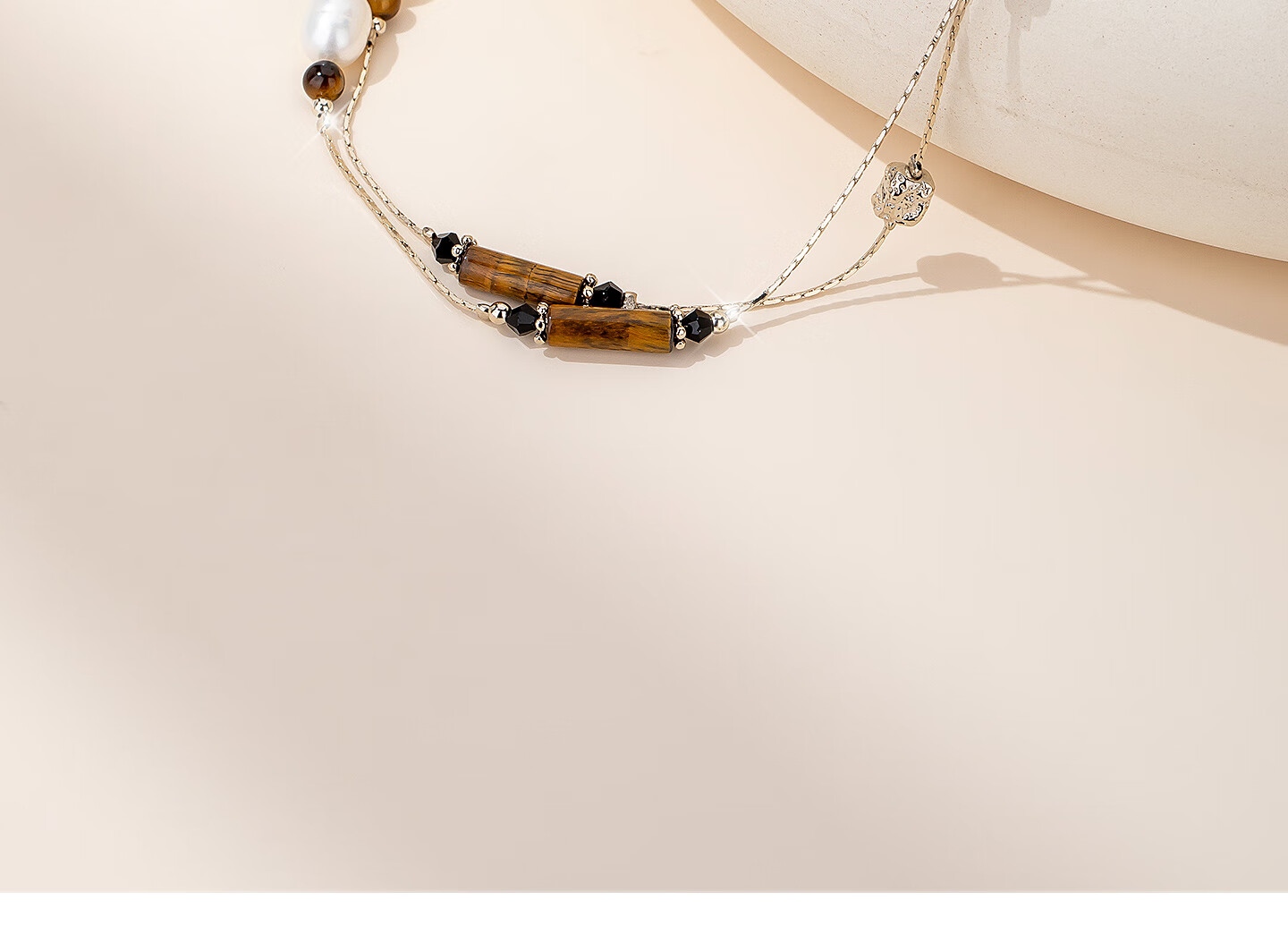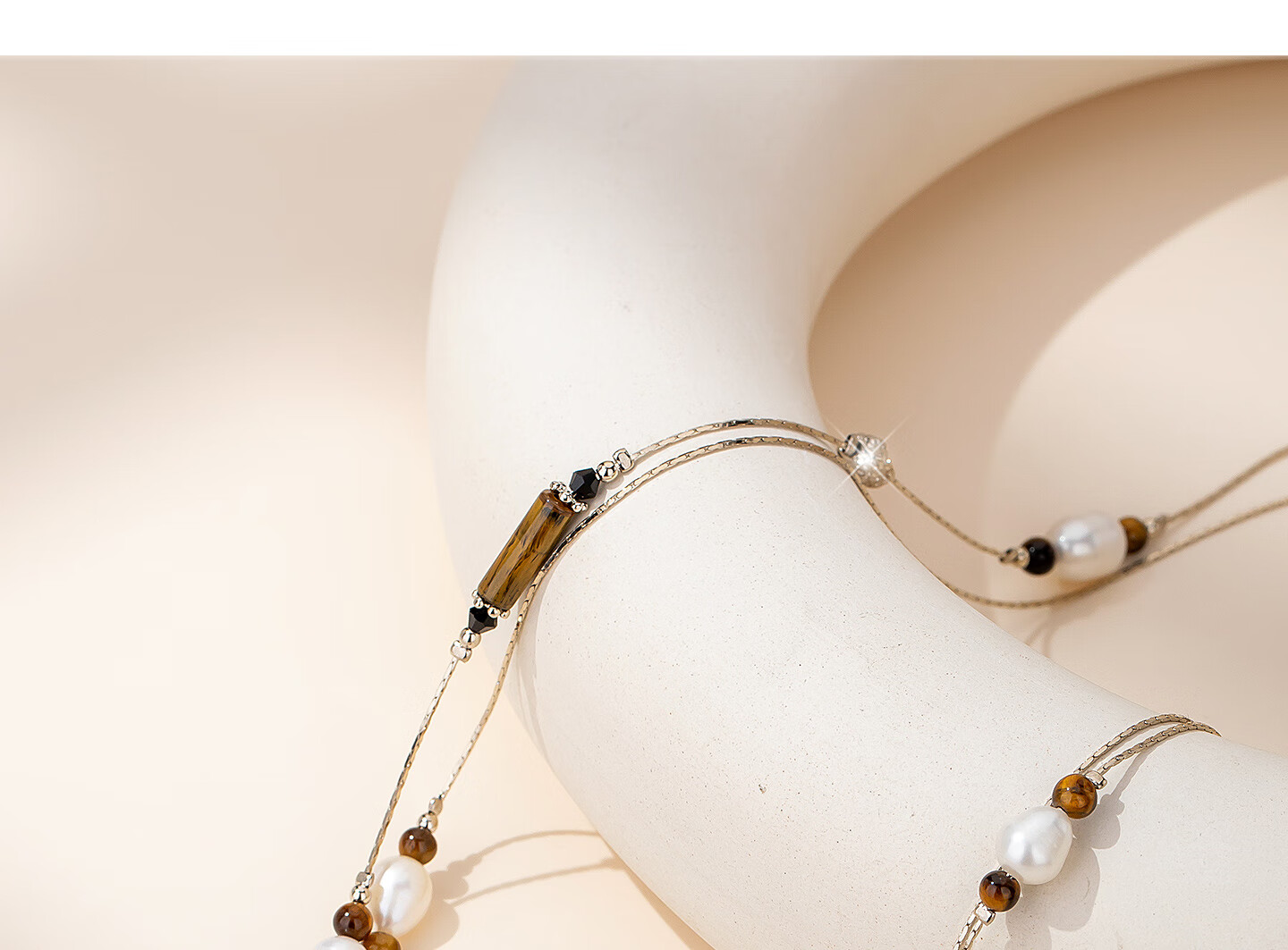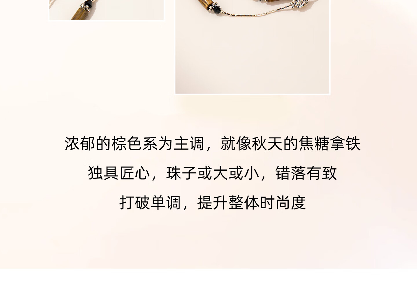 Qlady虎眼石双层珍珠项链女长款高级感轻奢小众2026新年秋冬毛衣链配饰