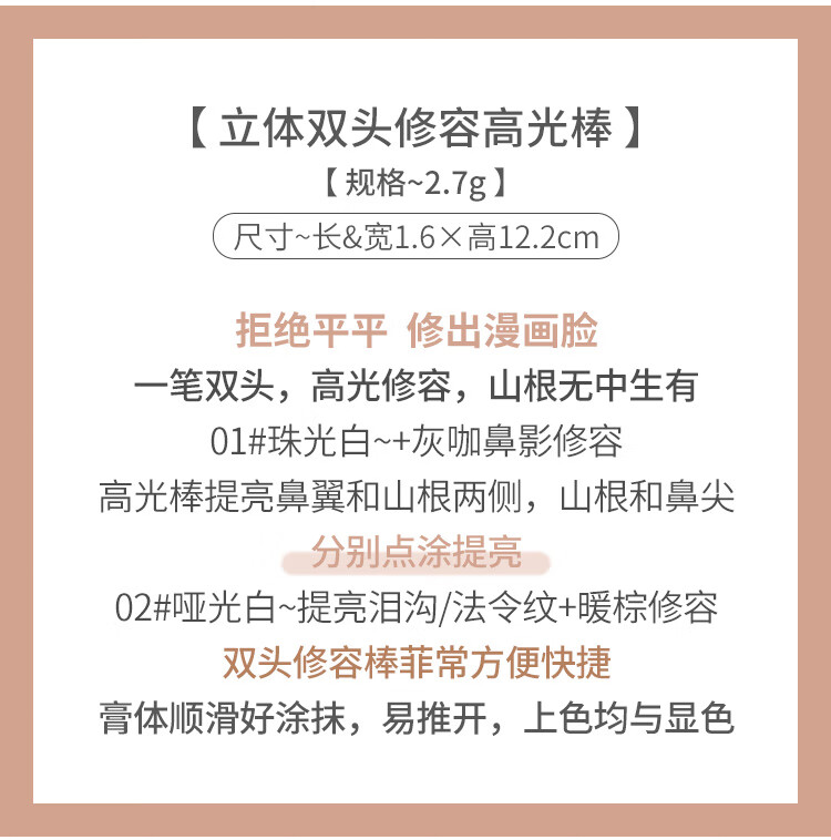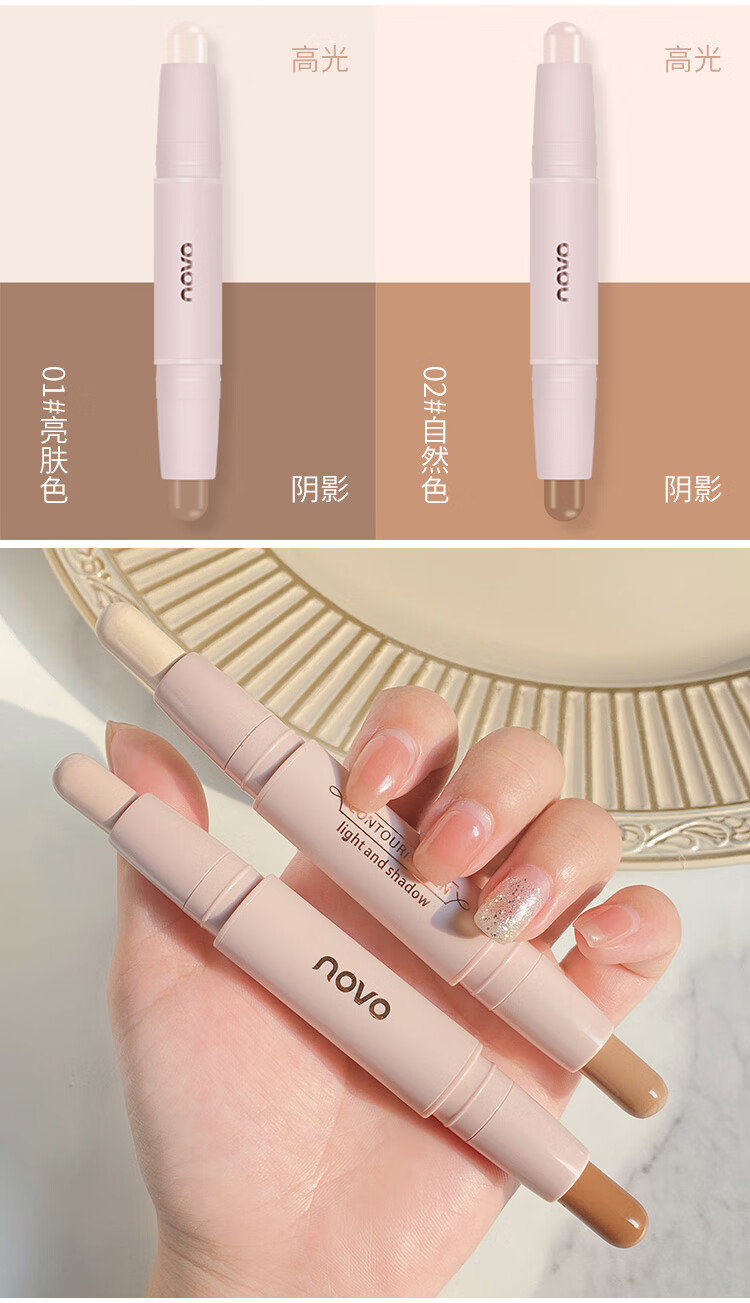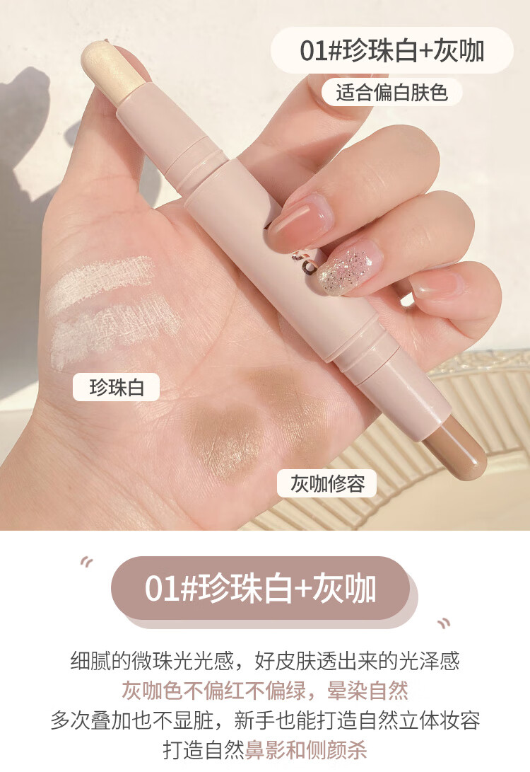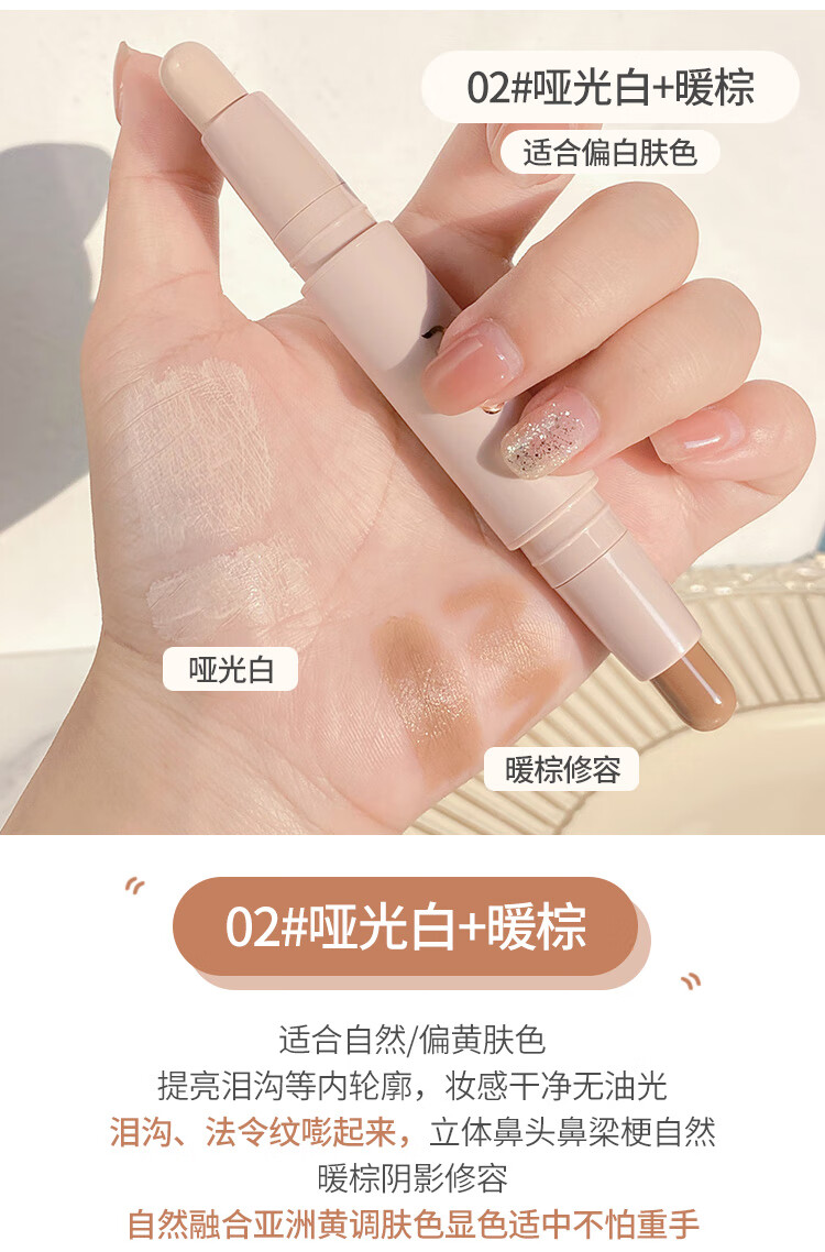 西子朵朵高光修容棒双头修容笔鼻影修容脸部提亮阴影一体防水防汗初学者女 X02-自然色【适合黄皮肤色】