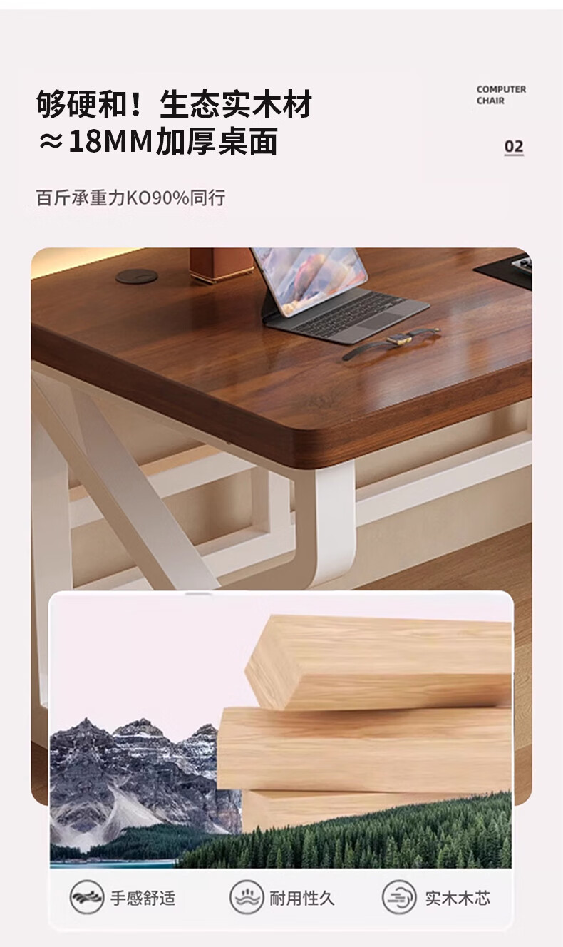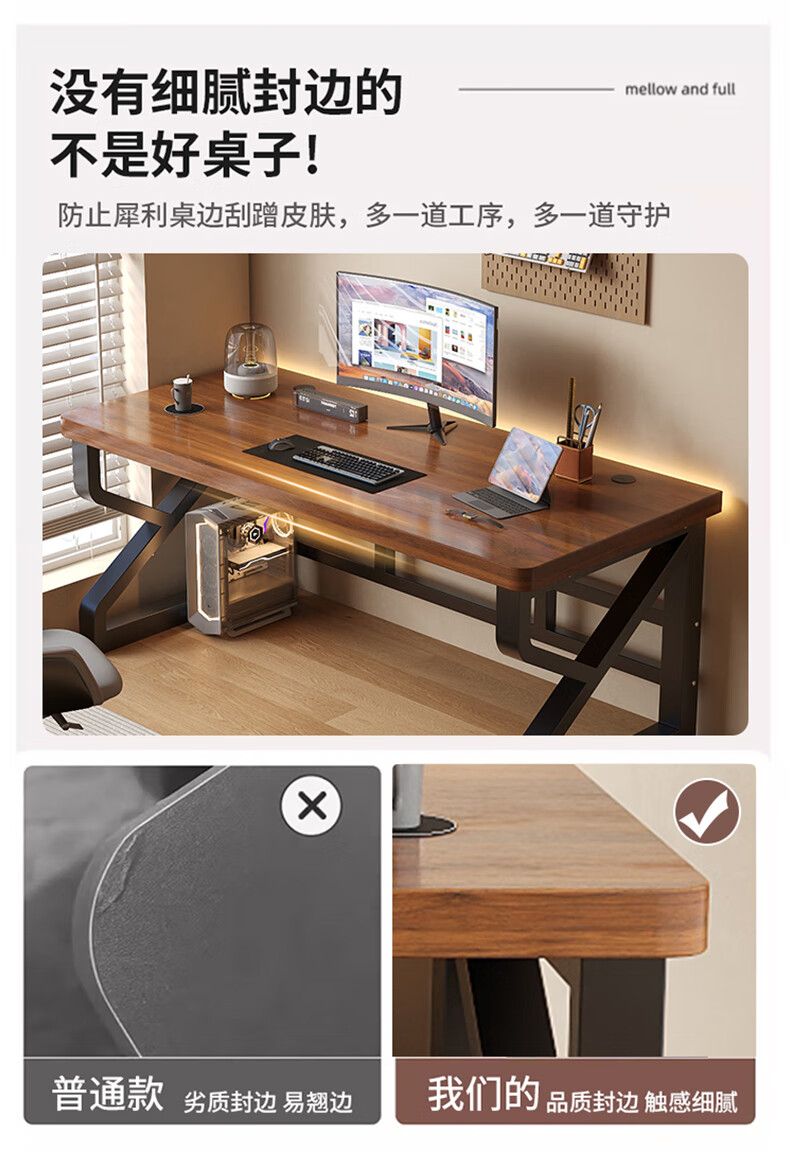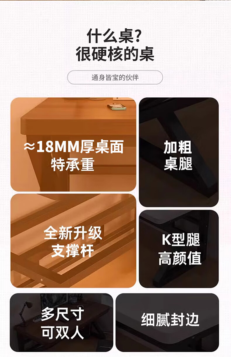 电脑桌台式家用实木桌双人游戏电竞桌办公书桌简约书房写字桌子 【18mm加厚实木芯】升级K桌120cm