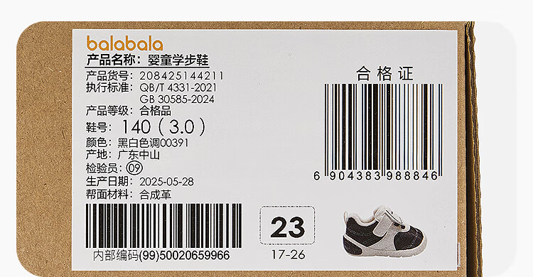 巴拉巴拉儿童学步鞋婴儿鞋子男女童宝宝鞋防滑2025秋冬运动鞋208425144211
