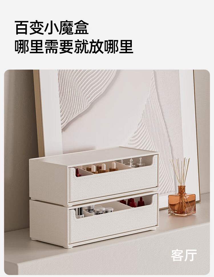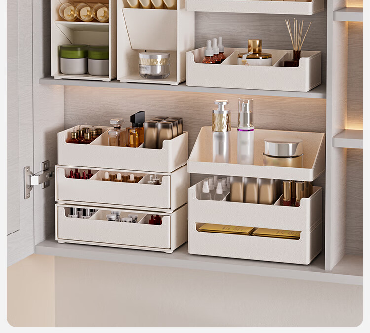 禧天龙直角镜柜收纳盒化妆品口红桌面抽屉整理盒浴室洗漱台置物架抽屉款