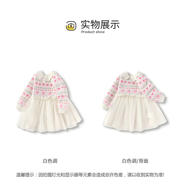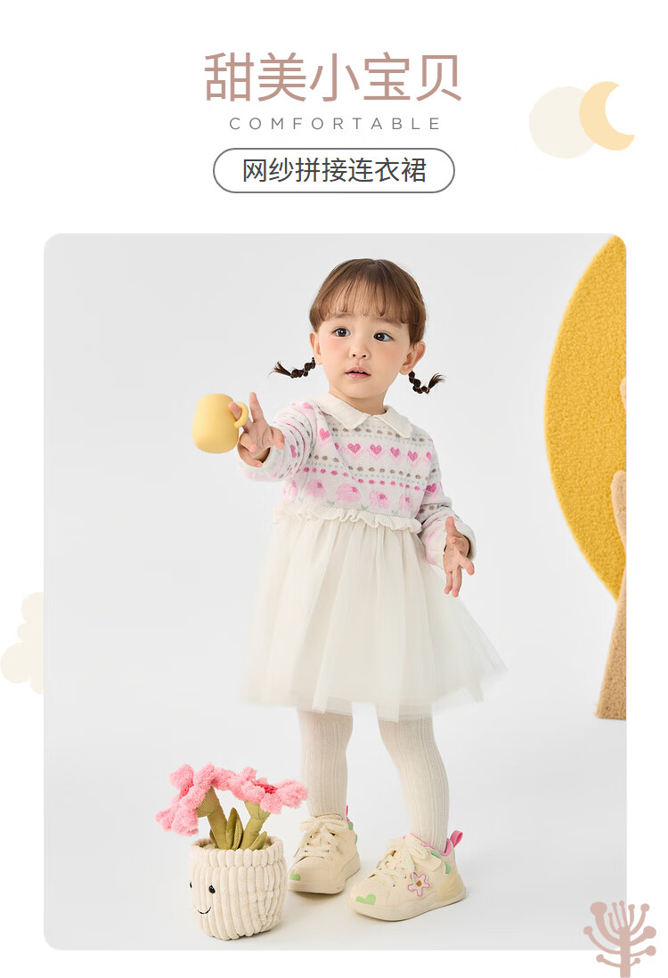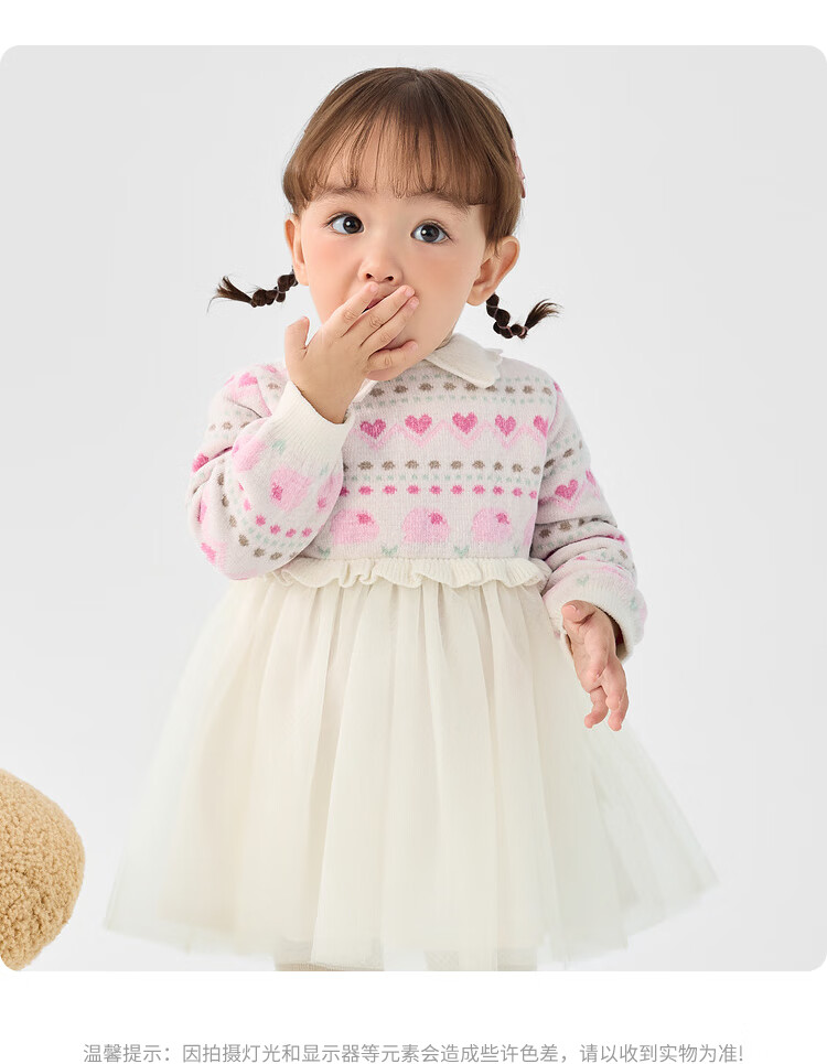 巴拉巴拉儿童裙子秋冬连衣裙女童公主裙纱裙假两件设计精致萌200424111001