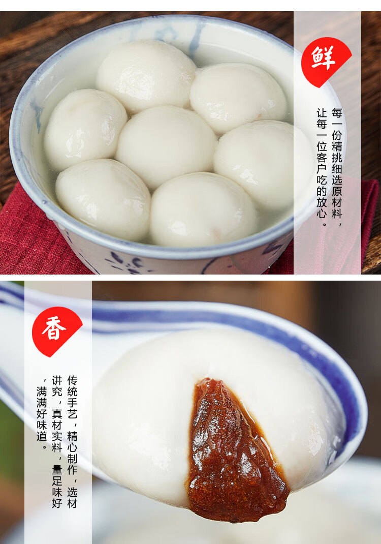 【DL商超直发】宁波红豆沙馅水磨汤圆大汤圆小汤圆芝麻馅猪肉馅元 500克宁波豆沙汤圆*1包
