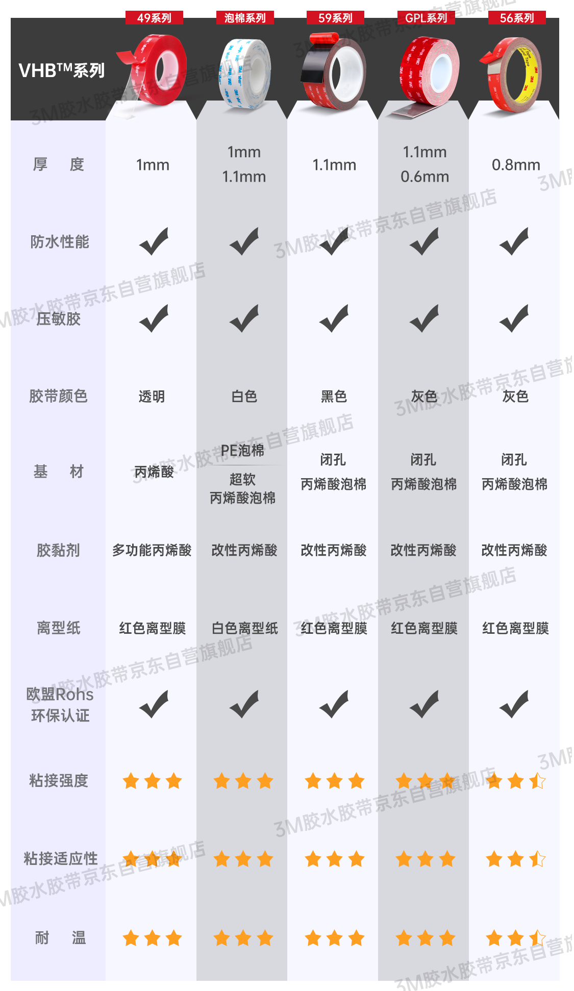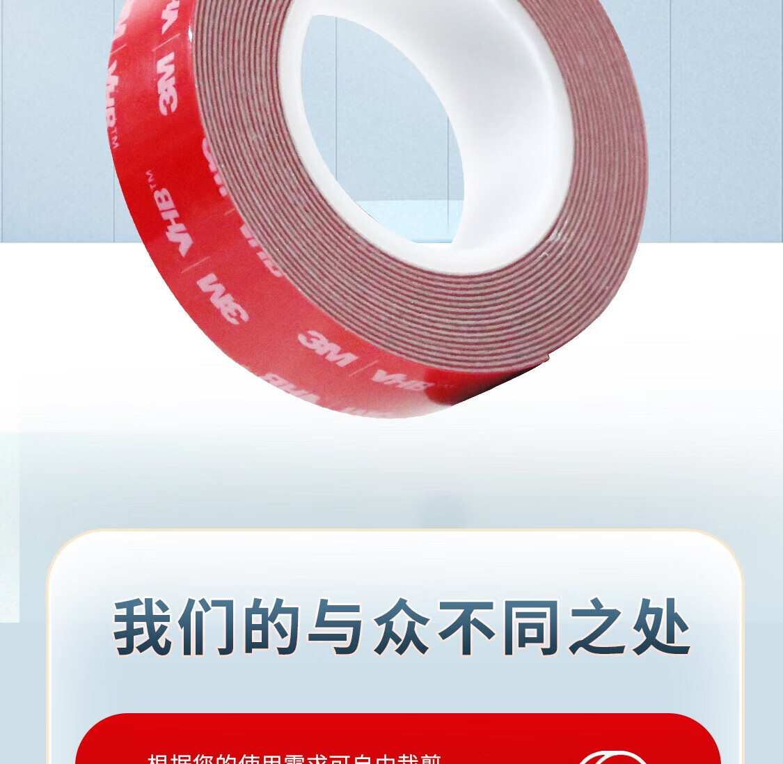 3M双面胶5952车用无痕防水耐高温高粘度加厚强力贴10mm*2m*1.1mm