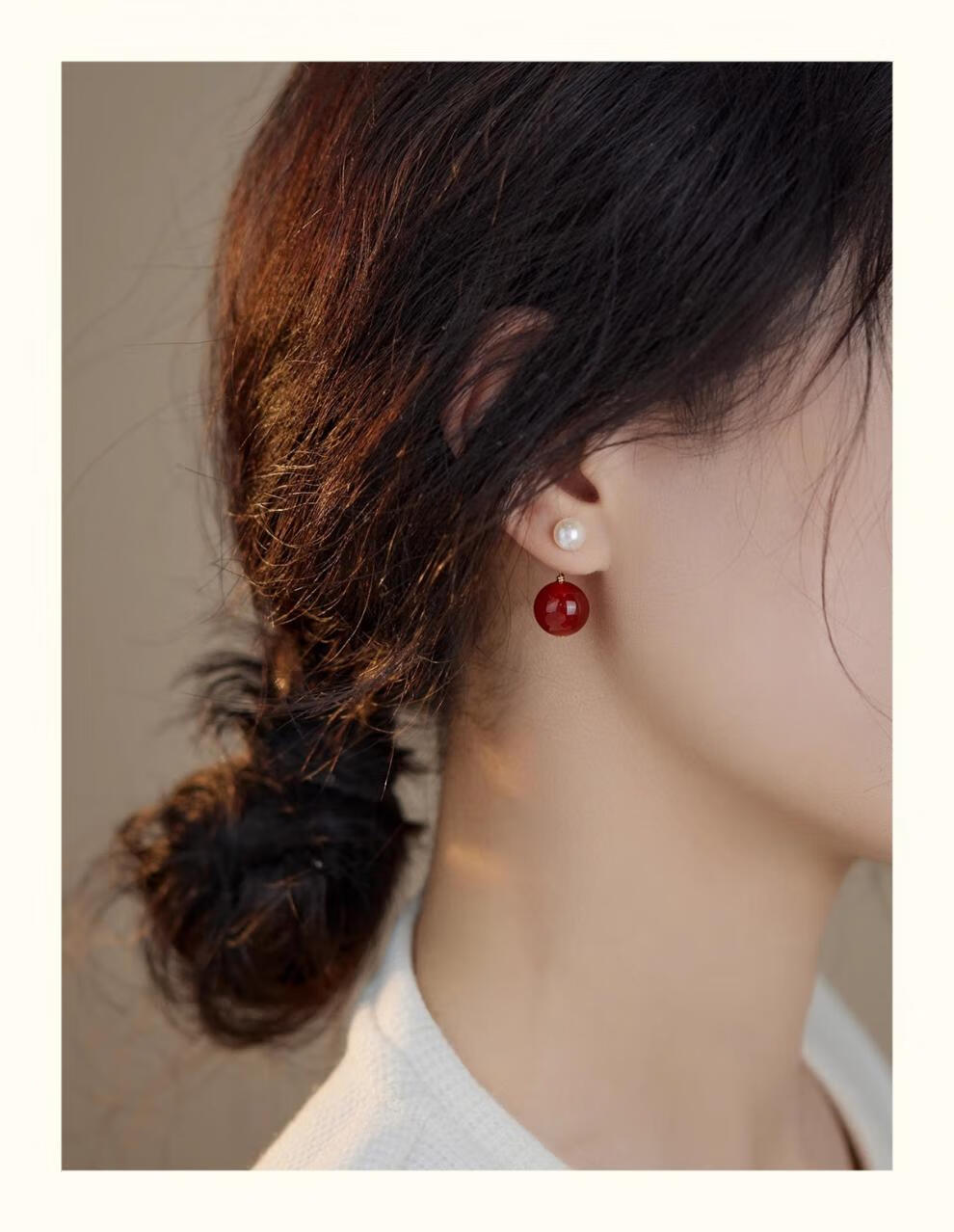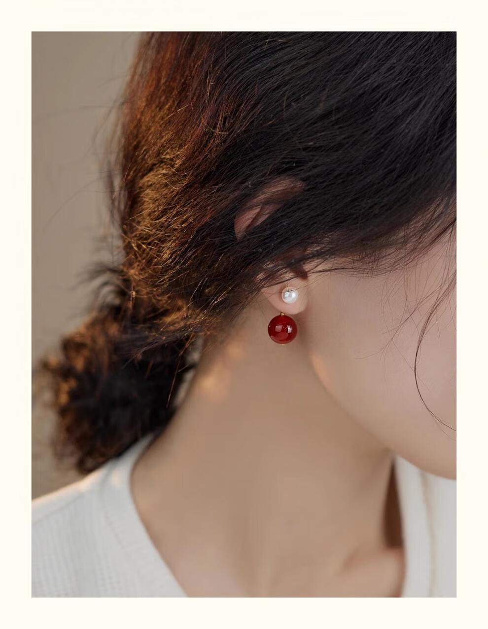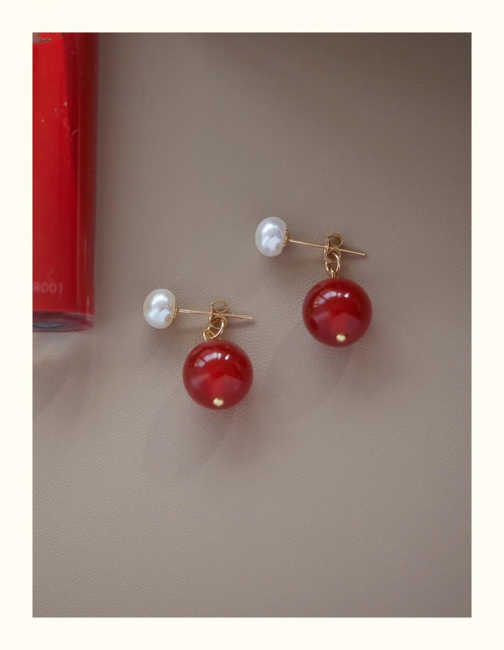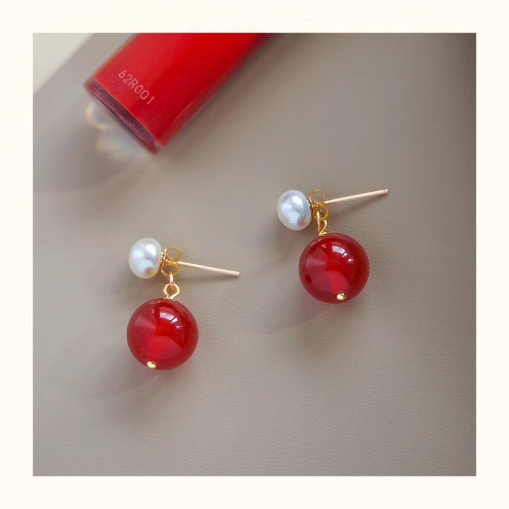 墨利亚(Meliades)复古红色玛瑙珍珠耳钉14K包金耳环耳夹法式轻奢高级气质耳坠ins 珍珠玛瑙复古红色耳钉